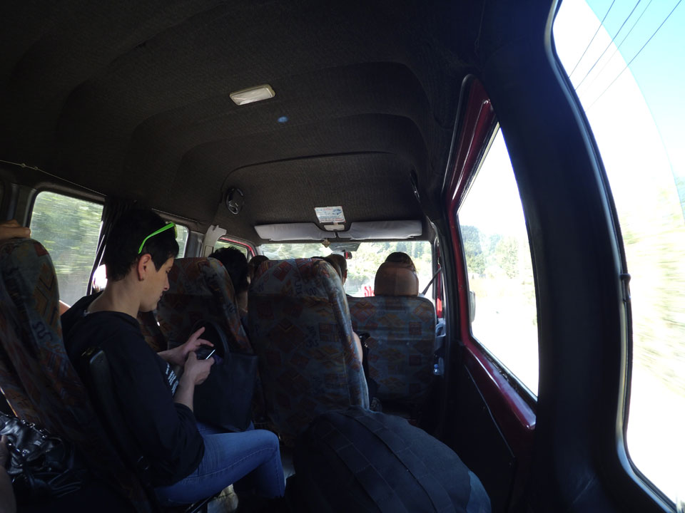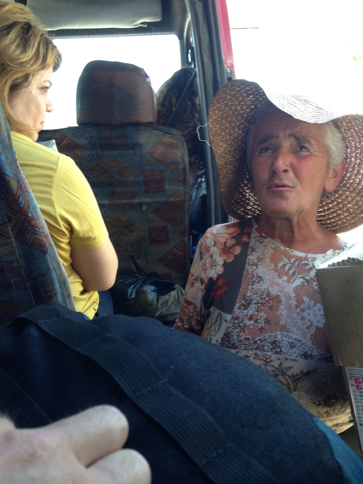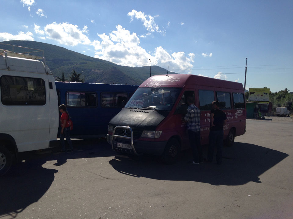 Der Minibus schließlich nach Gori kam an und nahm neben mir noch einige andere Touristen aus Deustchland auf. Ich saß mit meinen Rucksäcken ganz OK da, doch es war eng. Immer mehr Leute wollten mitfahre, es wurde immer voller und so gab’s dann noch noch Stehplätze.