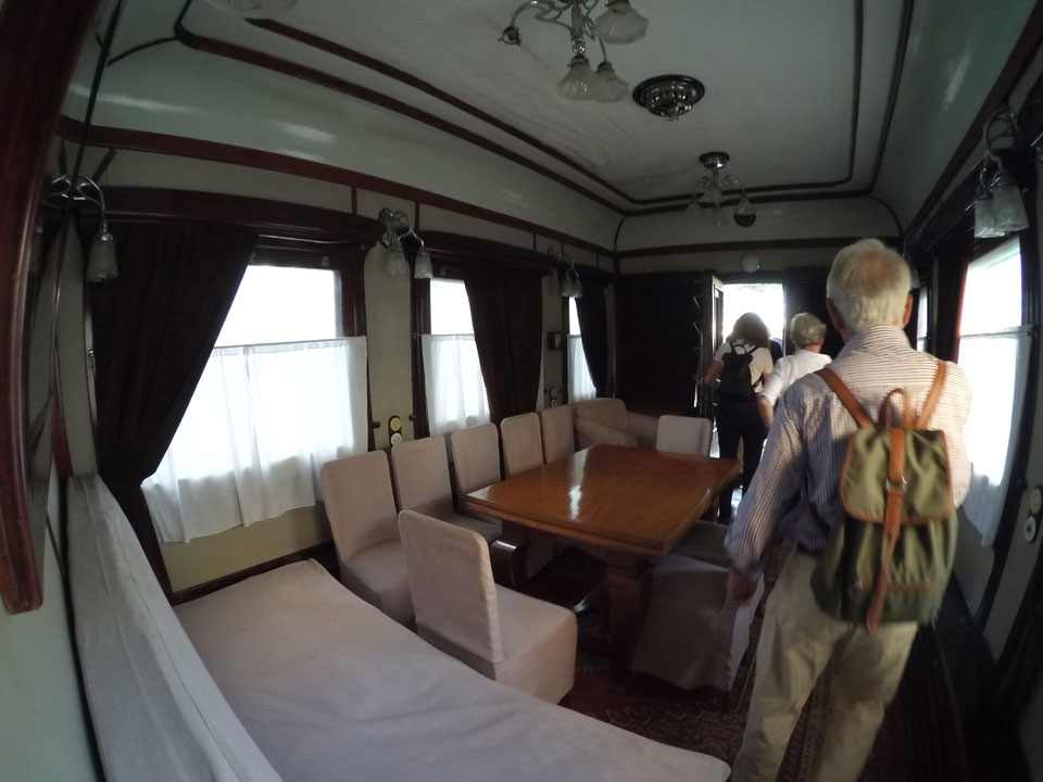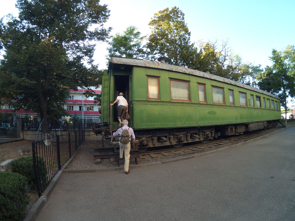 Die englischsprachige Reiseführerin machte noch eine kurze Tour durch den Bahnwagon. So sah ich das auch noch. Insgesamt war sie recht zügig unterwegs, die Gruppe hatte wohl auch ein straffes Programm. Das Geburtshaus Stalins steht da auch noch da. Der Ort lebt touristisch von Stalin. Daher erklärt sich die Kommerzialisierung hier.