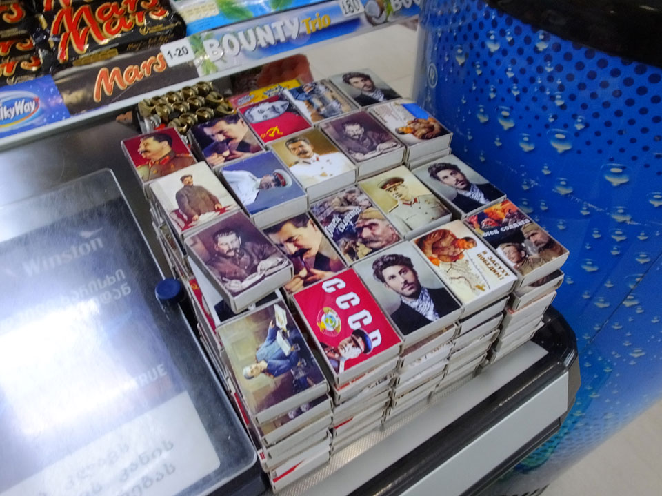 Ich ging die Stalin Avenue runter, suchte nach einem Friseur. Frauenfriseure ließen mich abblitzen. Ich machte ein paar Photos an den Kirchen und von der verfallenen Burg. Ein Essensladen hatte kein Essen und so ging ich im Supermarkt Salate einkaufen. Auch dort viele Stalin-Souvenirs.