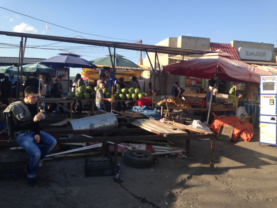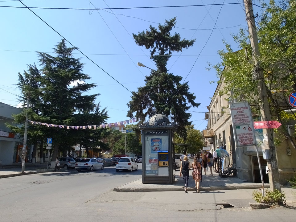 Ich freute mich auch heute weiter, dass ich nun Onkel bin. Schießlich packte ich meine Sachen und machte in meiem Programm weiter. Lässt sich halt wenig ändern. Ich wollte nach Uplistsikhe, einer alten Höhlenstadt hier in der Nähe. In der Mittagshitze machte ich mich zu Fuß auf den Weg zum Busbahnhof. Da sah ich endlich einen Herrenfriseur, der mir schnell die Haare kürze. Weniger Grau damit sichtbar und 5 Lari + 1,50.