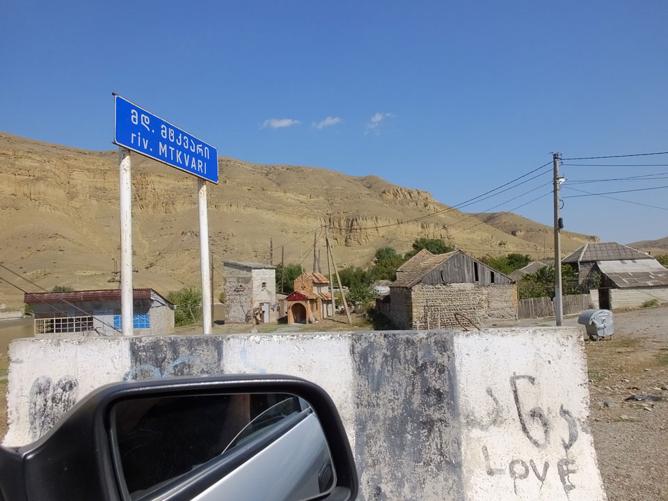 Weiter zun den Marshrutkas, holte ich Wasser und als Sonnenschutz einen Hut (3 Lari). Somit war ich gut gerüstet und fragte mich zum Minibus nach Uplistsikhe durch. Ein Taxifahrer fragte nochmal, kam mir sympatisch vor und wollte 20 Lari für hin zu den Felsen, 1h warten, zurück zum Gästehaus und schließlich wieder zum Bus. So war meine Wegeplanung. Knapp €8 ist für sowas ein guter Preis aber eben auch Standard. Er legte los, fuhr jedoch zuerst zum Gästehaus, was ich nochmal an’s Ende der Route setzen musste.
