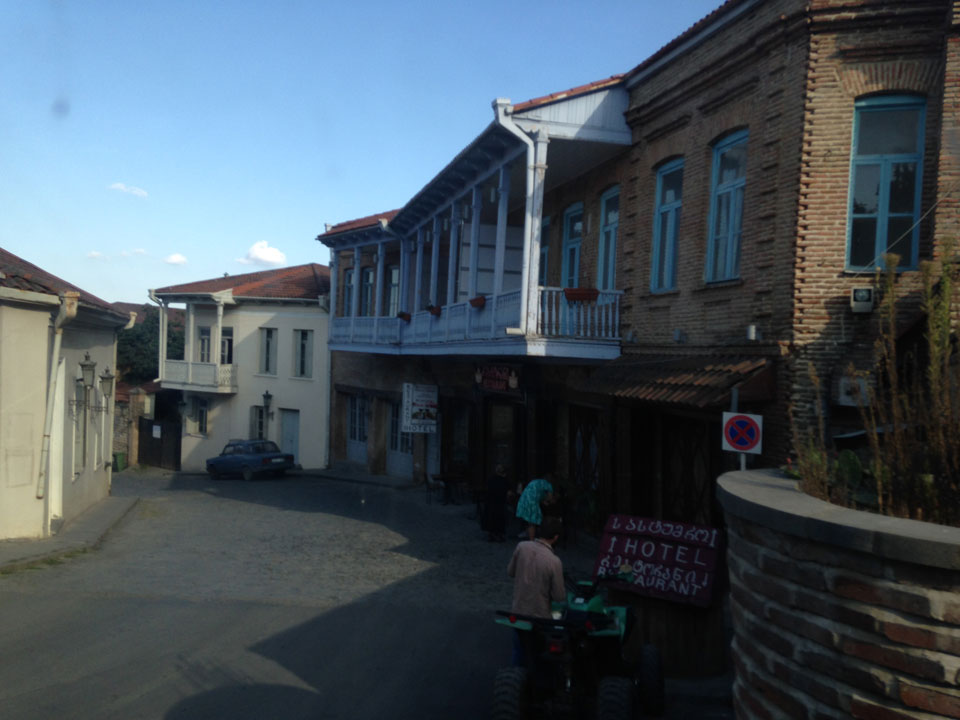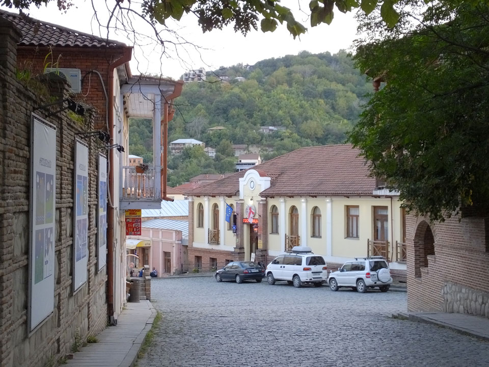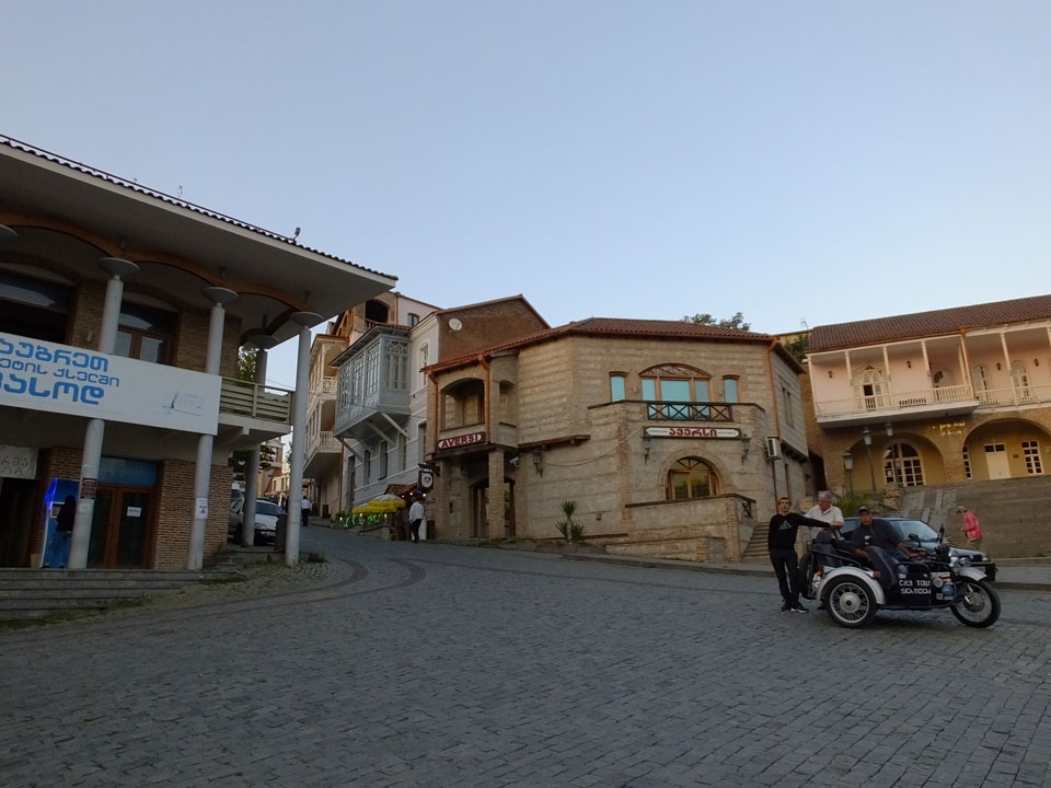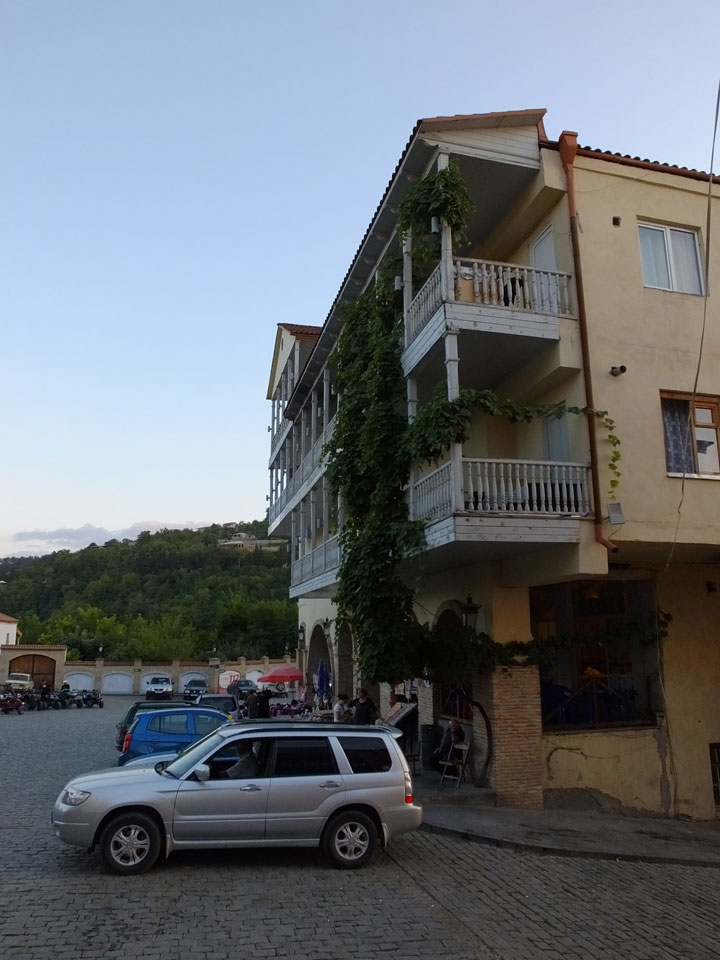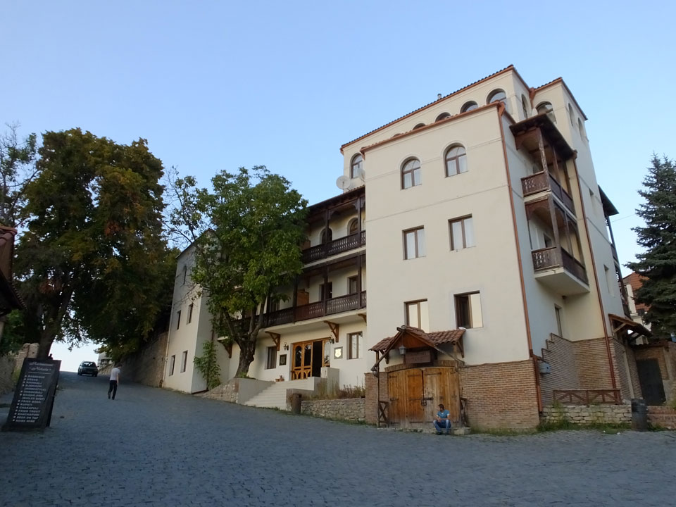 In gut 2h Fahrt waren wir schließlich in Signagi. Bei der Einfahrt sah das schon hübsch aus. Andere Reisende hatten es als „Toskana“ beschrieben. Obwohl ich noch nie in der Toskana war, sah ich das auch so. Sauber und touristisch. Ich hatte ein Gästehaus gebucht. Die GPS Koordinaten waren leider falsch. Ich drehte bepackt eine Runde und fand das Haus schließlich dank Erinnerung an ein Photo.