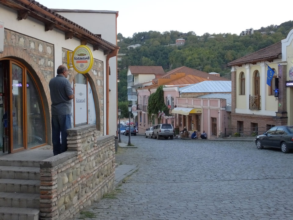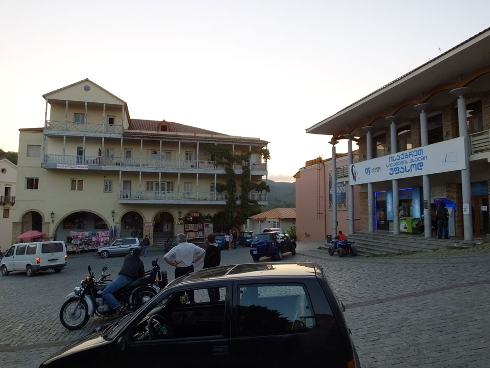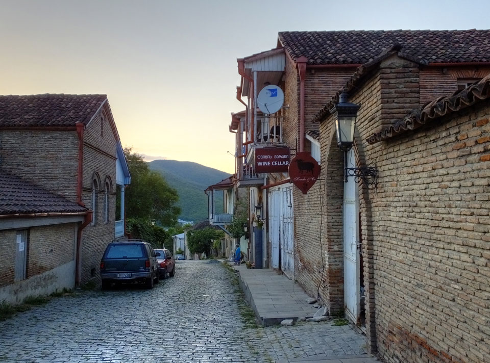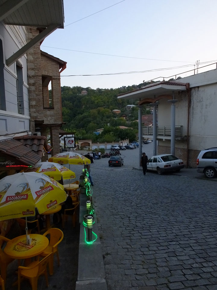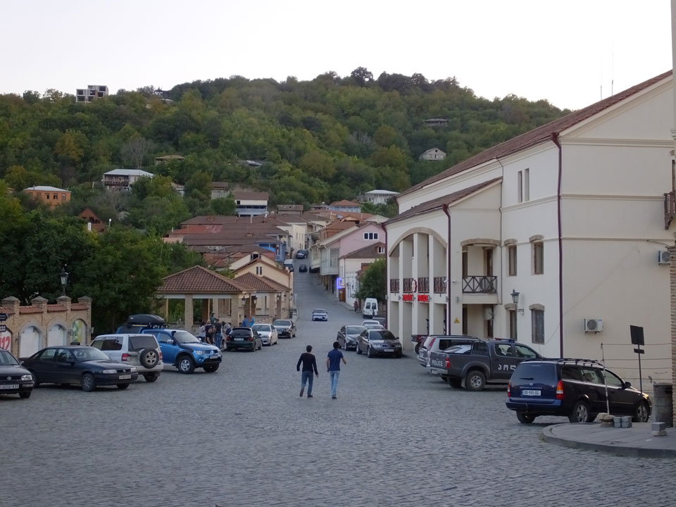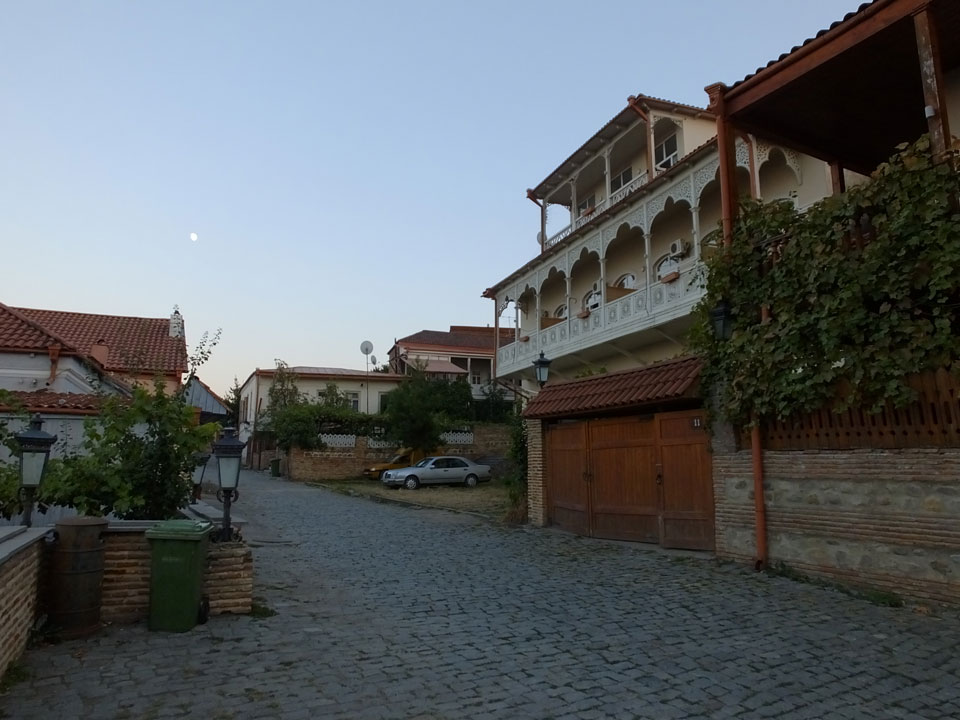 In gut 2h Fahrt waren wir schließlich in Signagi. Bei der Einfahrt sah das schon hübsch aus. Andere Reisende hatten es als „Toskana“ beschrieben. Obwohl ich noch nie in der Toskana war, sah ich das auch so. Sauber und touristisch. Ich hatte ein Gästehaus gebucht. Die GPS Koordinaten waren leider falsch. Ich drehte bepackt eine Runde und fand das Haus schließlich dank Erinnerung an ein Photo.