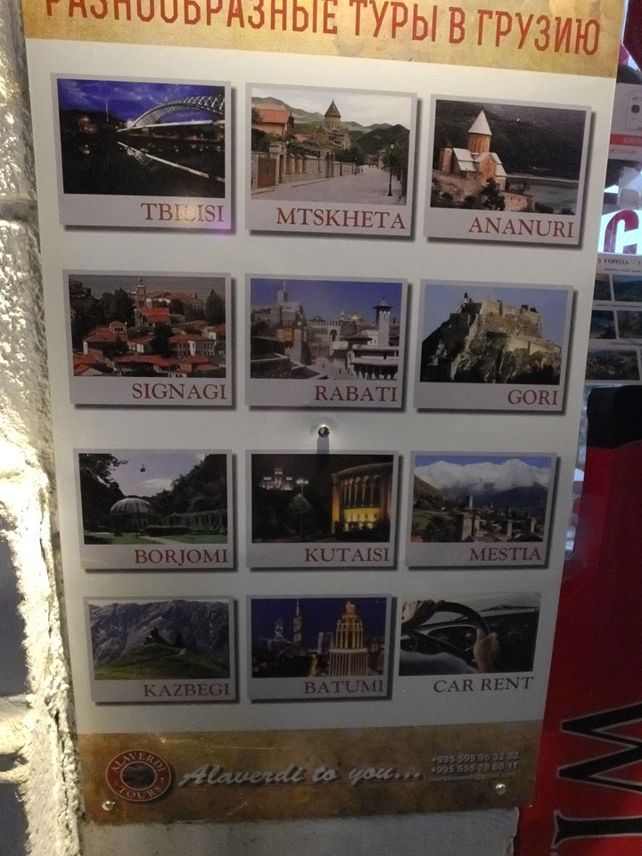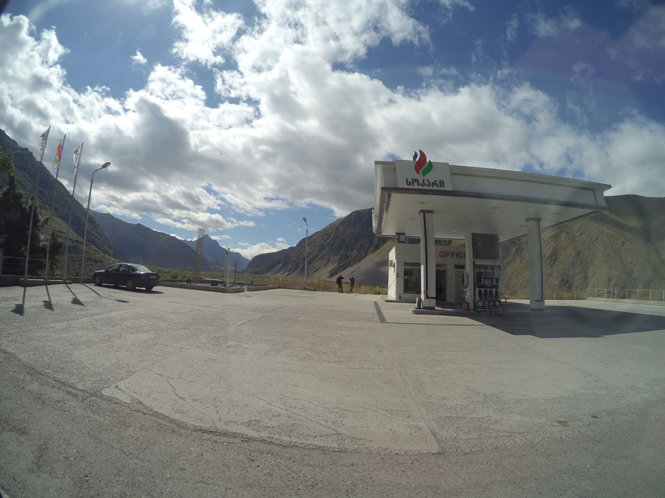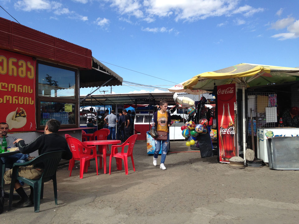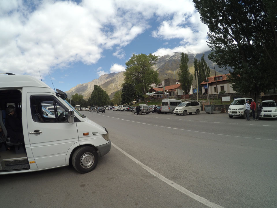 Ich holte mir einen türkischen Kaffee für 2 Lari. Etwas zu früh für die dritte Shwarma. Es wurde dann über eine Stunde Wartezeit, bis wirklich der Bus komplett voll war. Ich nutzte die Zeit für Blog tippen auf dem iPad. Etwas vor der offiziellen Abfahrtszeit um 13:30 ging’s dann endlich los. Wieder runter von den Bergen nach Tbilisi.