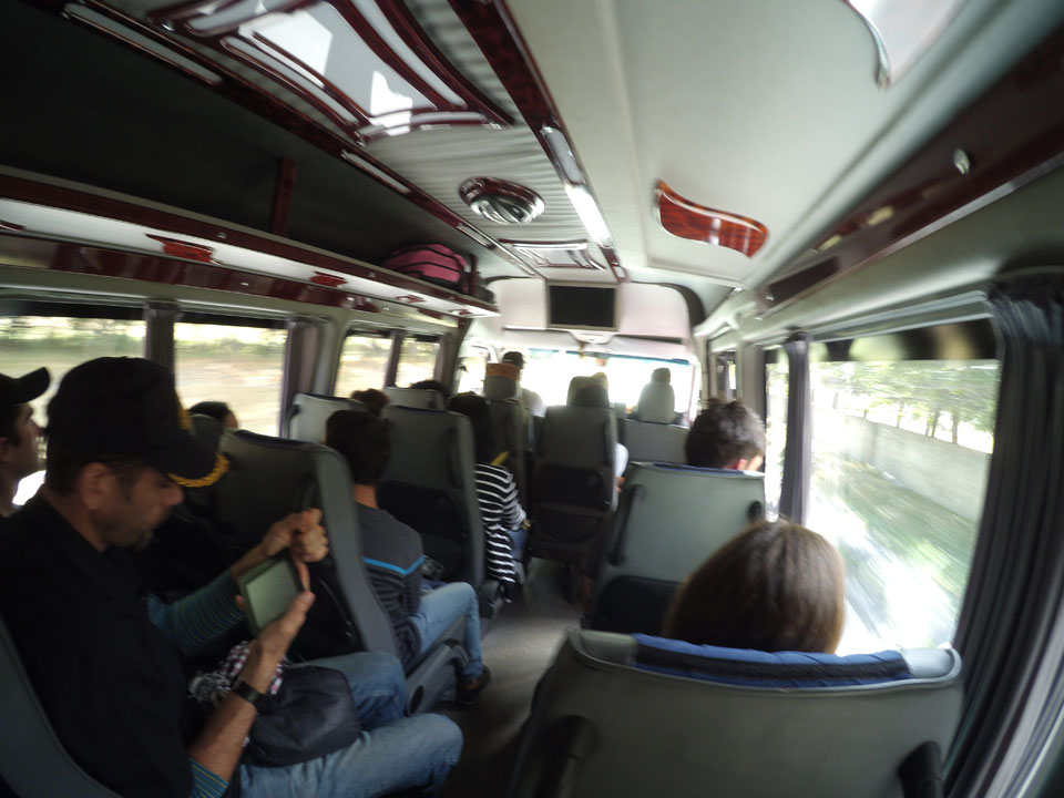 Kurz nach 12 war ich draußen, traf die Besitzerin, die sich wunderte wie ich so lange schlafen kann, mit dem Baulärm und so. War wieder etwas wenig Schlaf eigentlich doch ich musste weiter. Unten am Haltepunkt stand schon ein gut gefüllter Minibus. Es solle in 30’ los gehen, verstand und dachte ich.