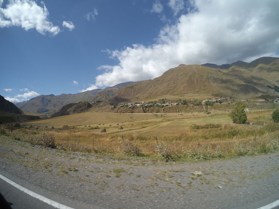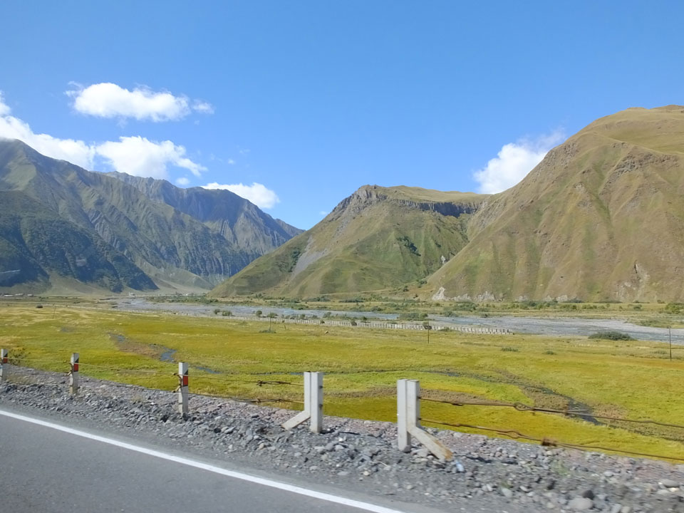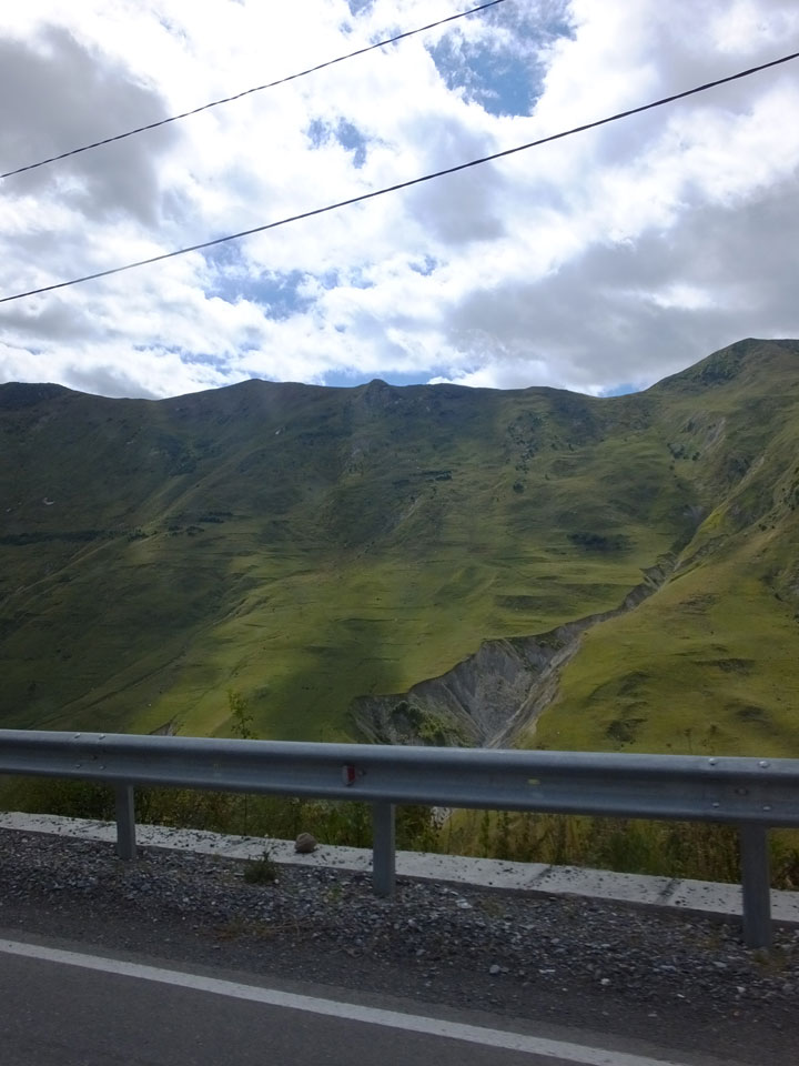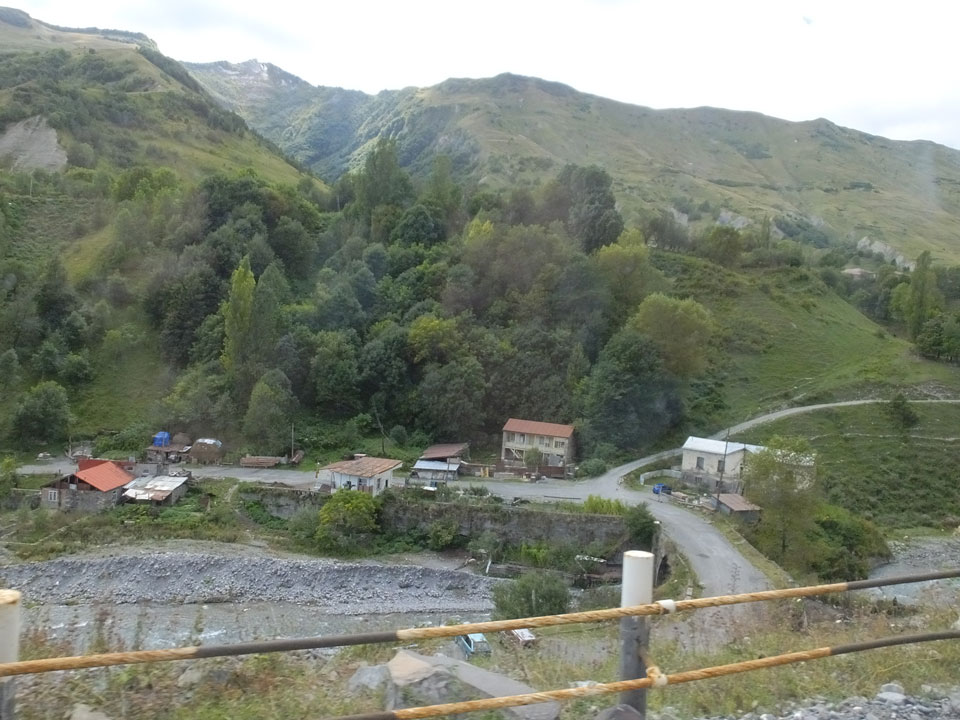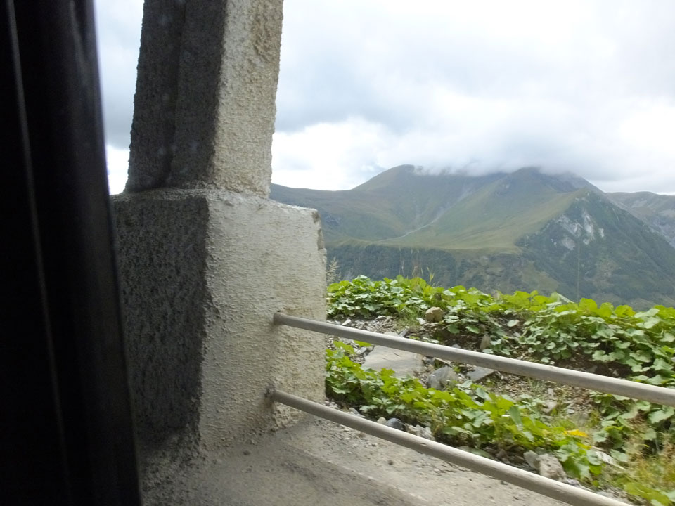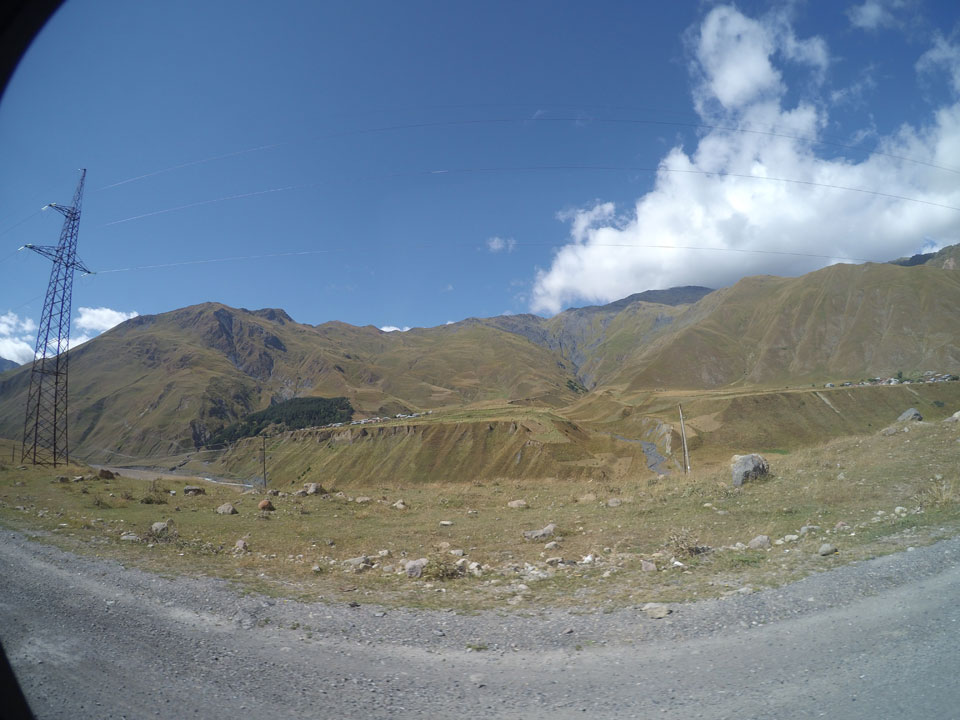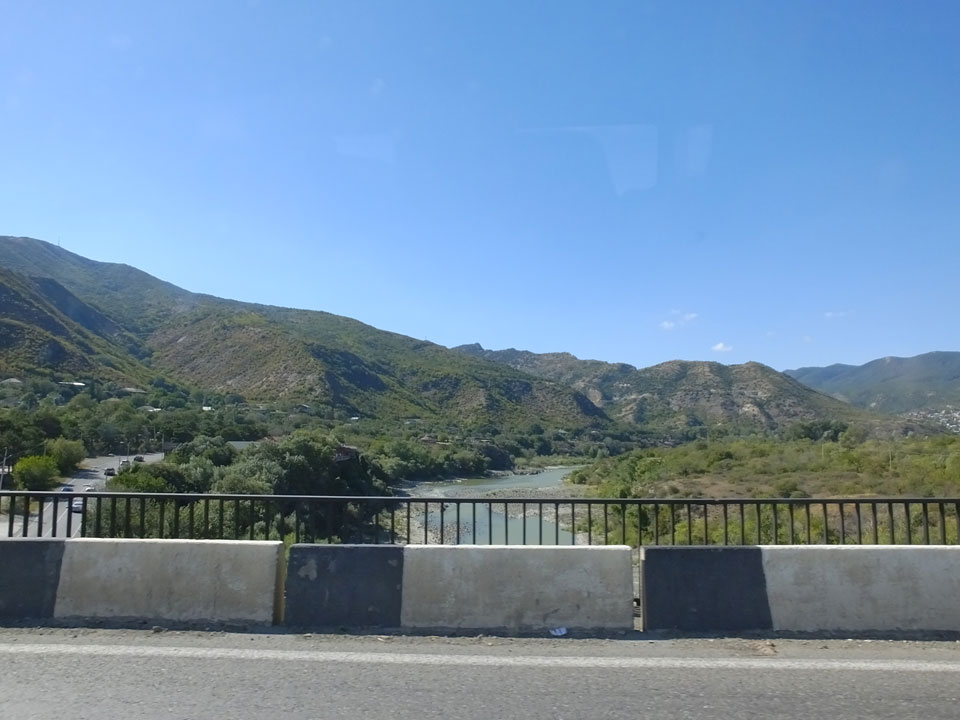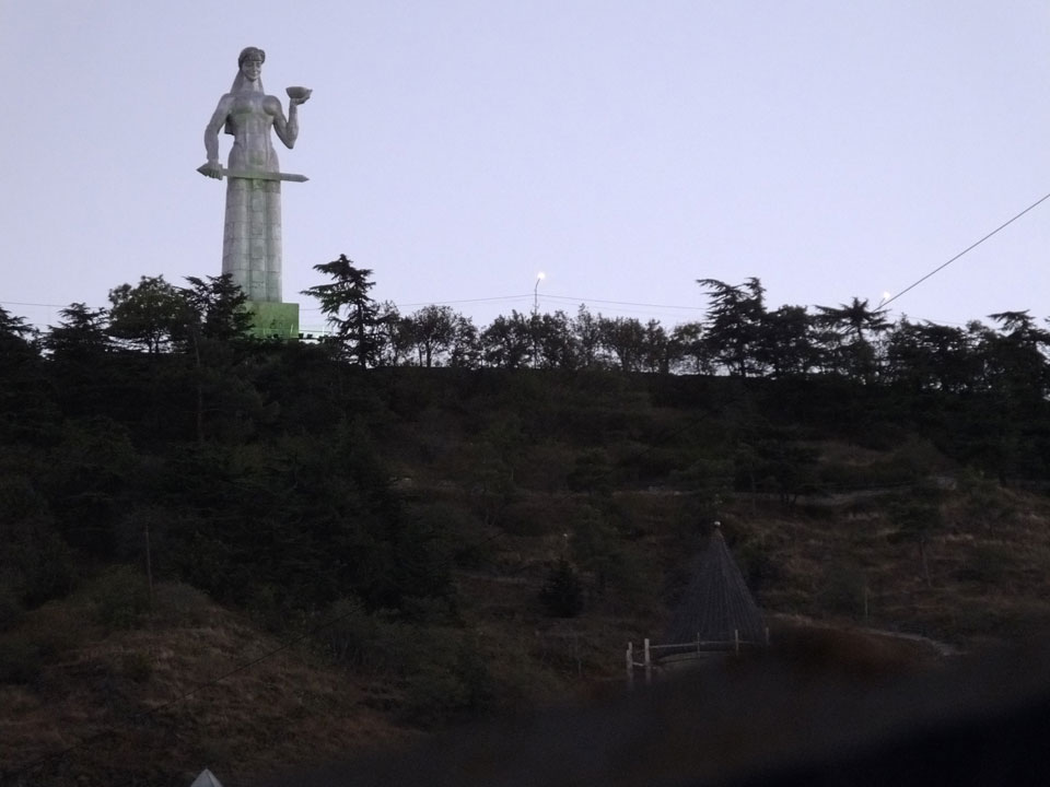 Dank klarer Scheiben hatte ich und die Camera einen ungetönten Blick auf die Landschaft. Schnell ging’s bergab, die Fahrer kennen sich halt aus. So kamen wir wieder gut an der Didube Station an. Ich holte mir erst mal was zu essen, fuhr dann mit den letzten 0,50 GEL zum Freiheitsplatz. Dann hatte ich die GPS Koordinaten meines Apartments auf dem Handy und kam zielgerichtet da an.