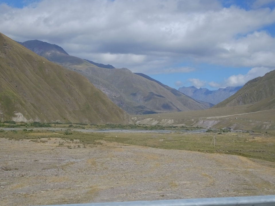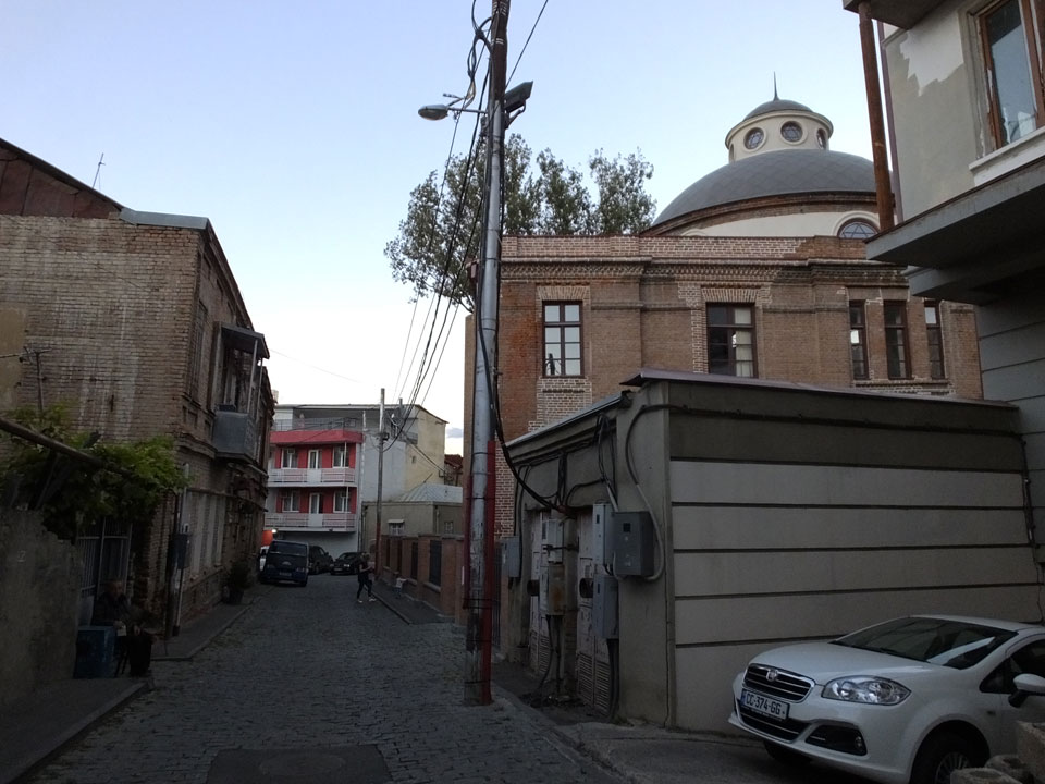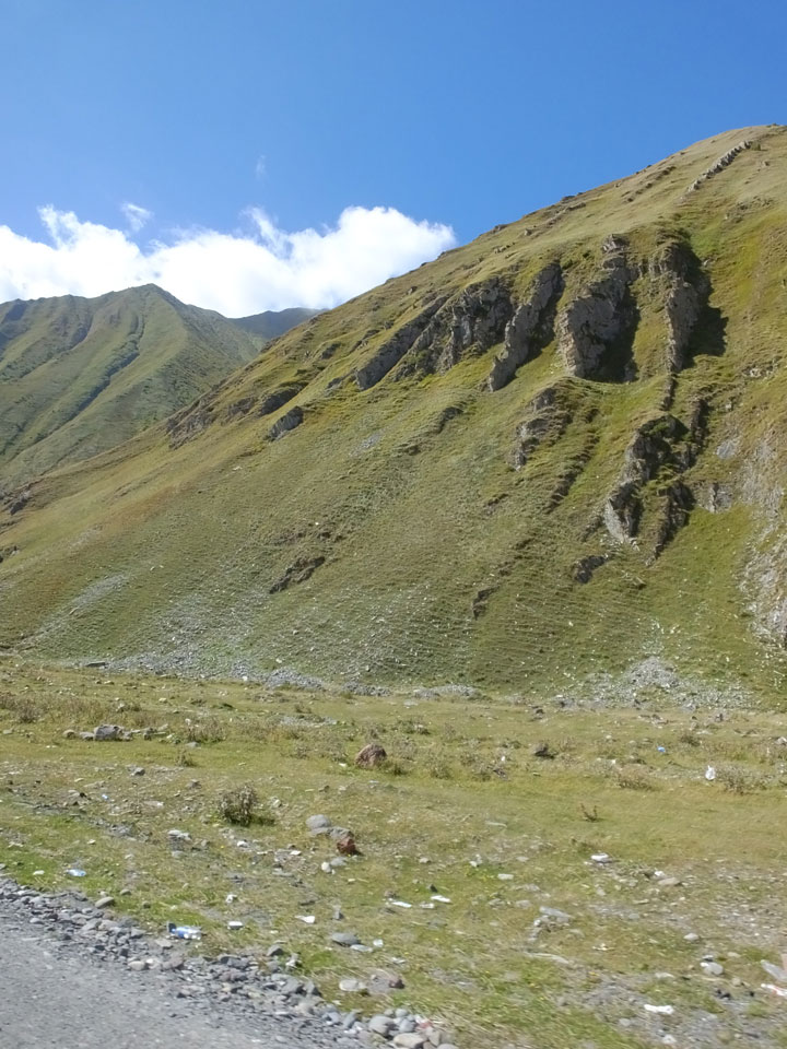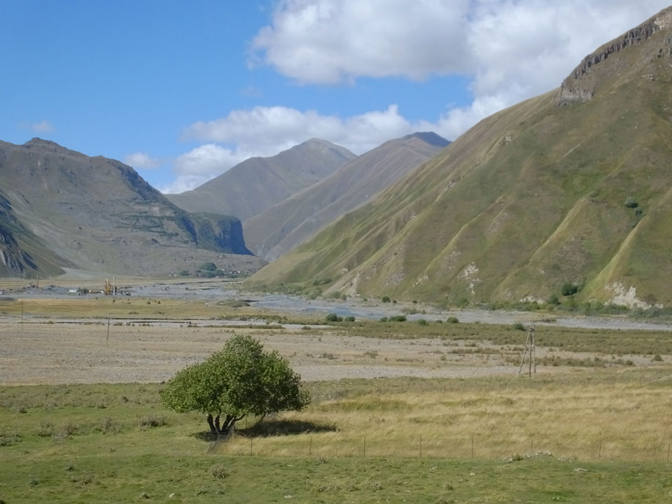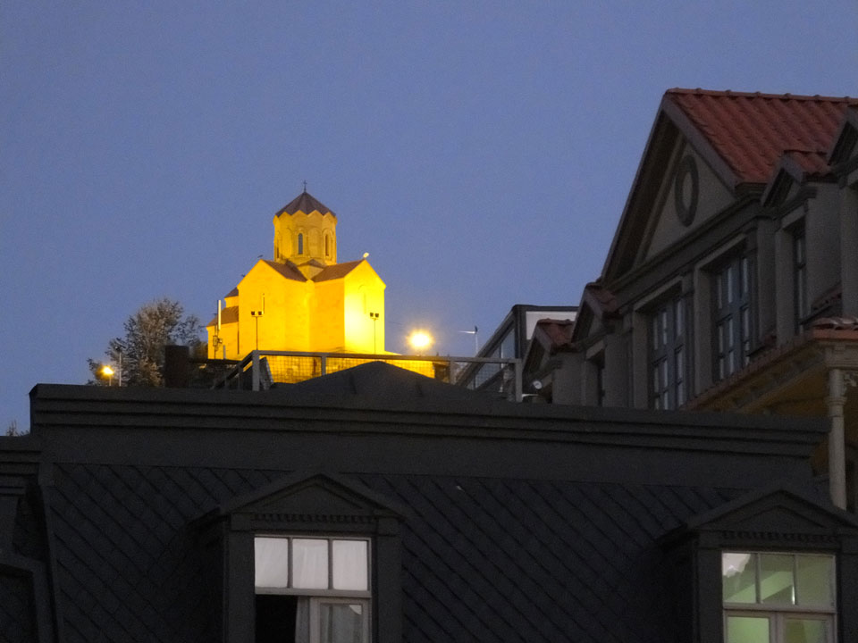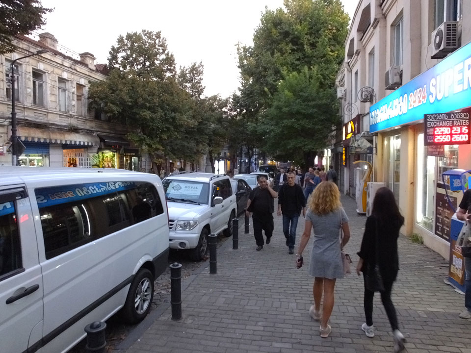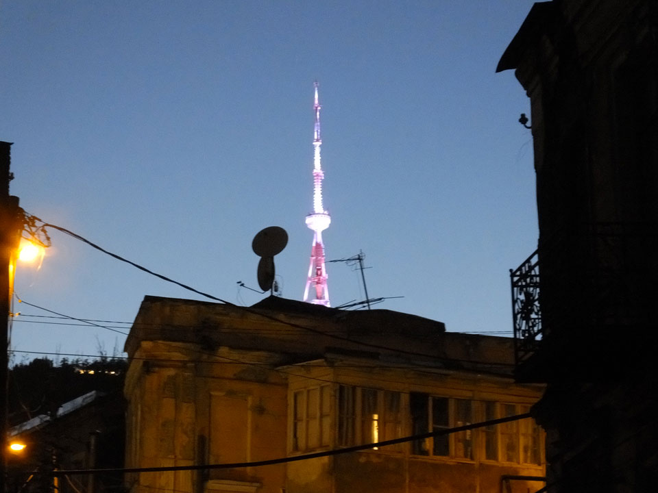 Dank klarer Scheiben hatte ich und die Camera einen ungetönten Blick auf die Landschaft. Schnell ging’s bergab, die Fahrer kennen sich halt aus. So kamen wir wieder gut an der Didube Station an. Ich holte mir erst mal was zu essen, fuhr dann mit den letzten 0,50 GEL zum Freiheitsplatz. Dann hatte ich die GPS Koordinaten meines Apartments auf dem Handy und kam zielgerichtet da an.
