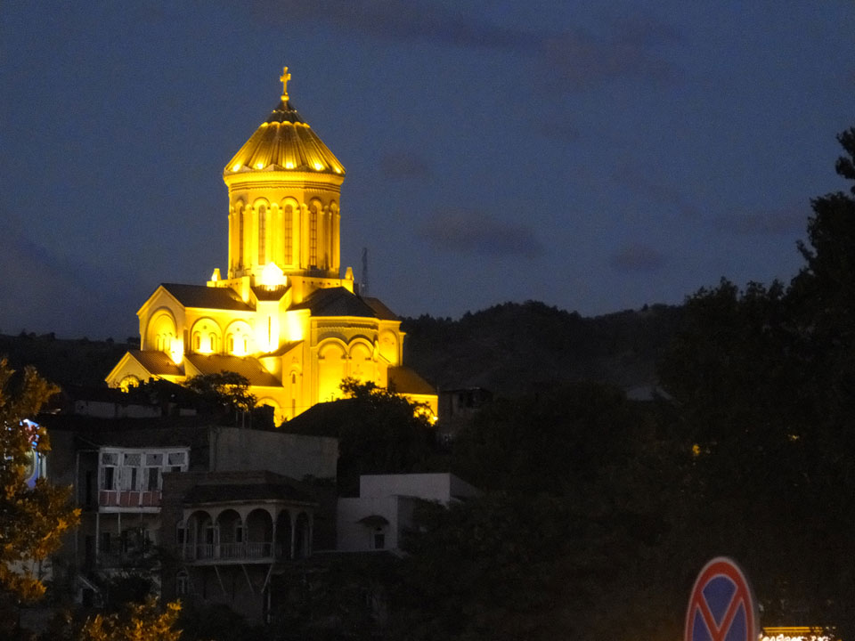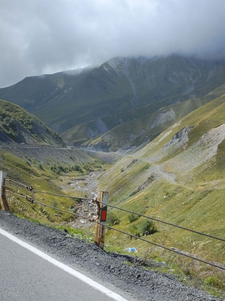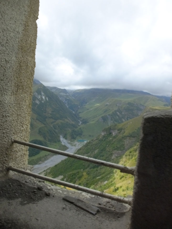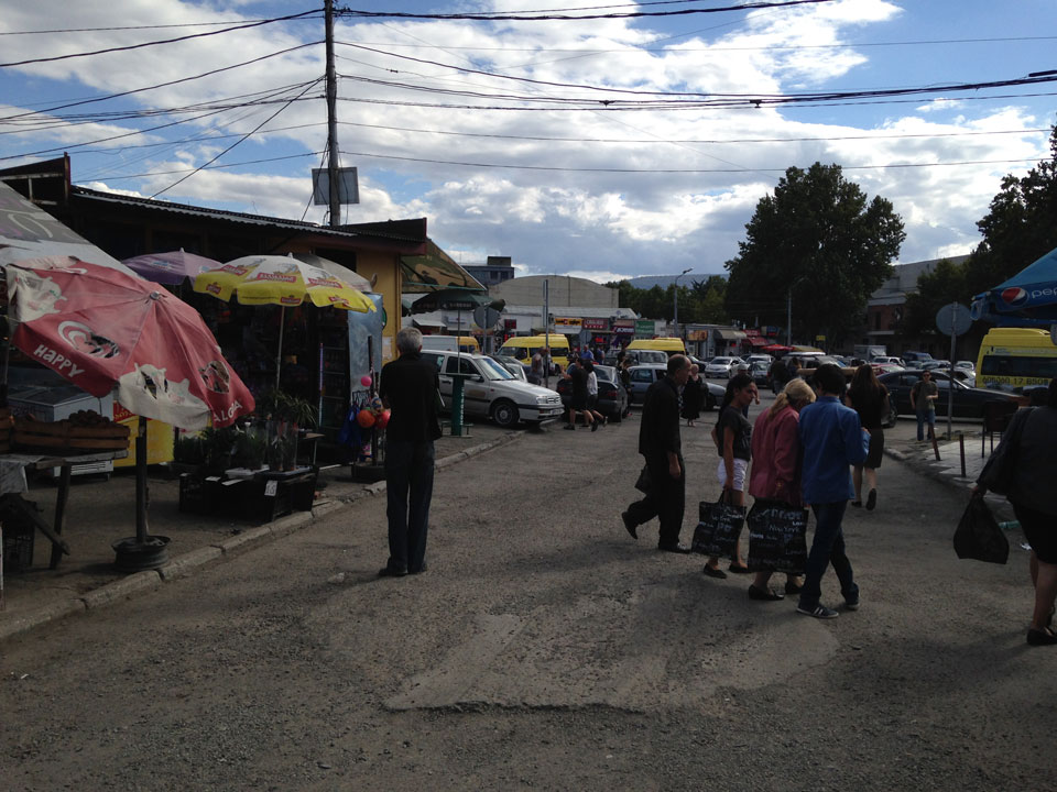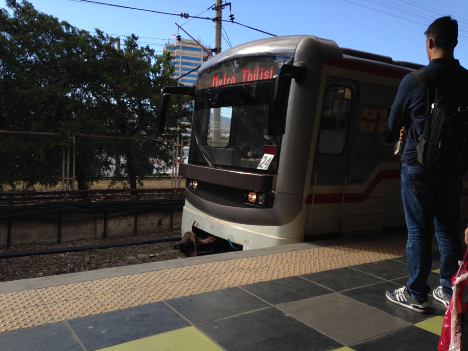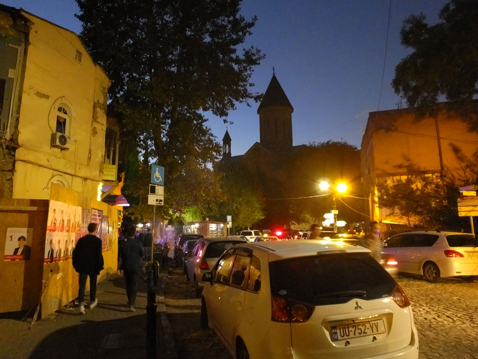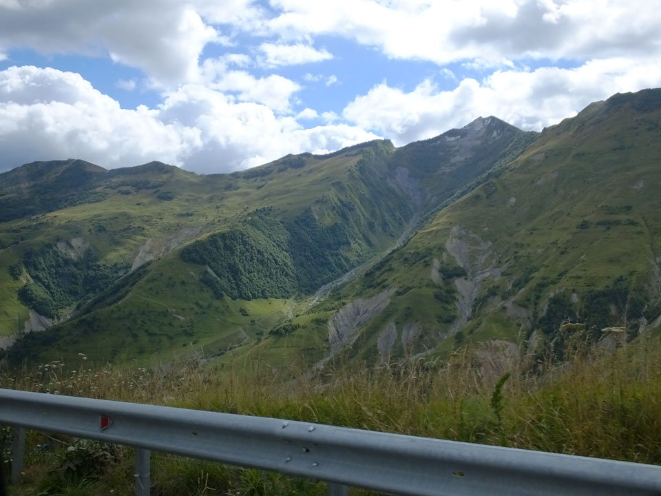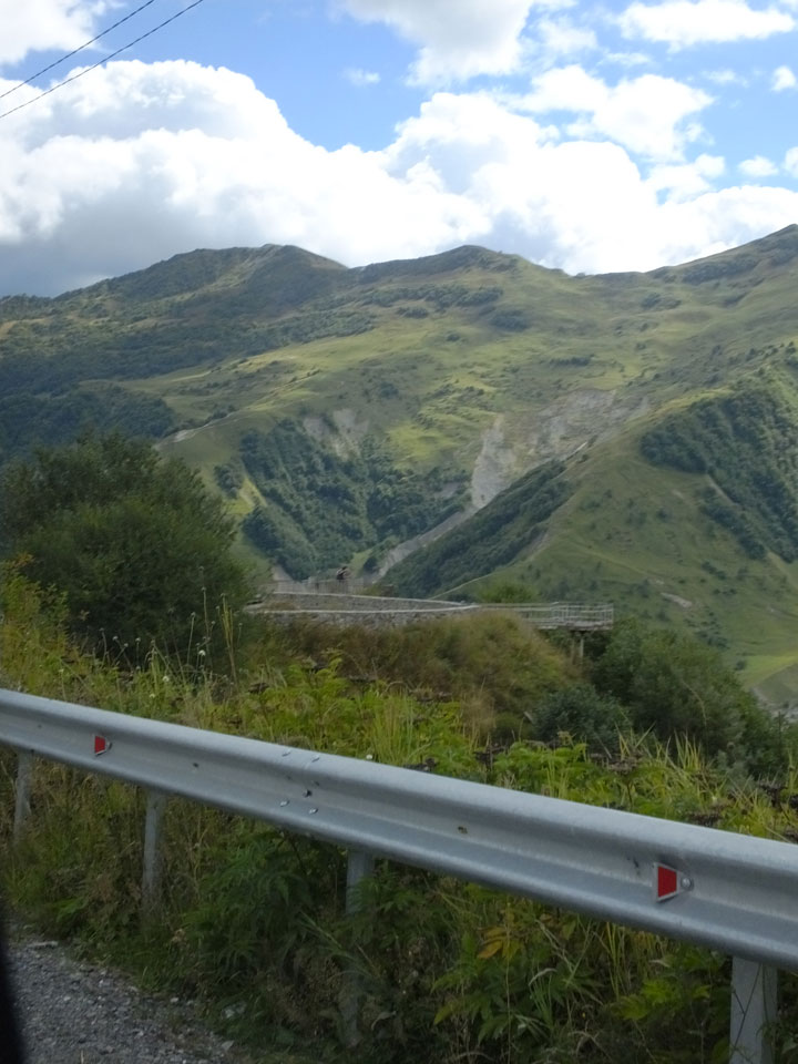 Dank klarer Scheiben hatte ich und die Camera einen ungetönten Blick auf die Landschaft. Schnell ging’s bergab, die Fahrer kennen sich halt aus. So kamen wir wieder gut an der Didube Station an. Ich holte mir erst mal was zu essen, fuhr dann mit den letzten 0,50 GEL zum Freiheitsplatz. Dann hatte ich die GPS Koordinaten meines Apartments auf dem Handy und kam zielgerichtet da an.