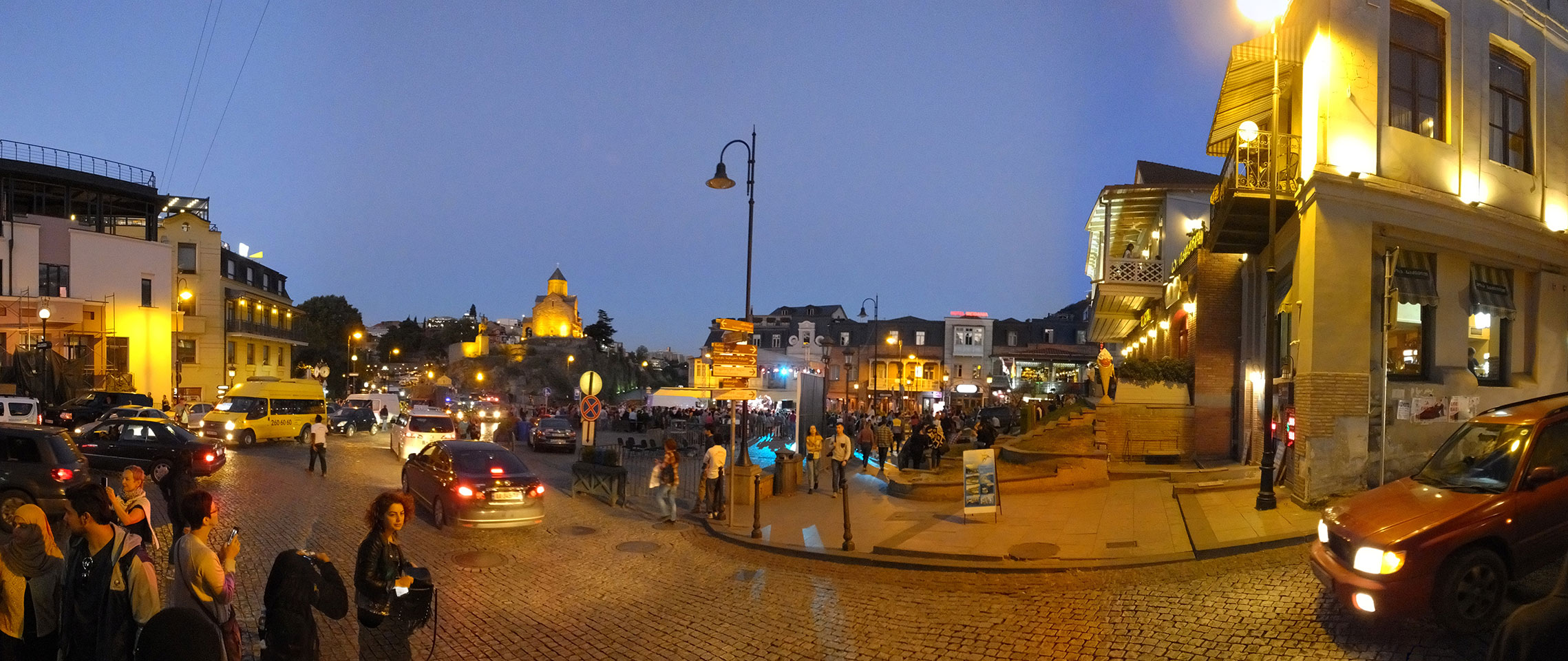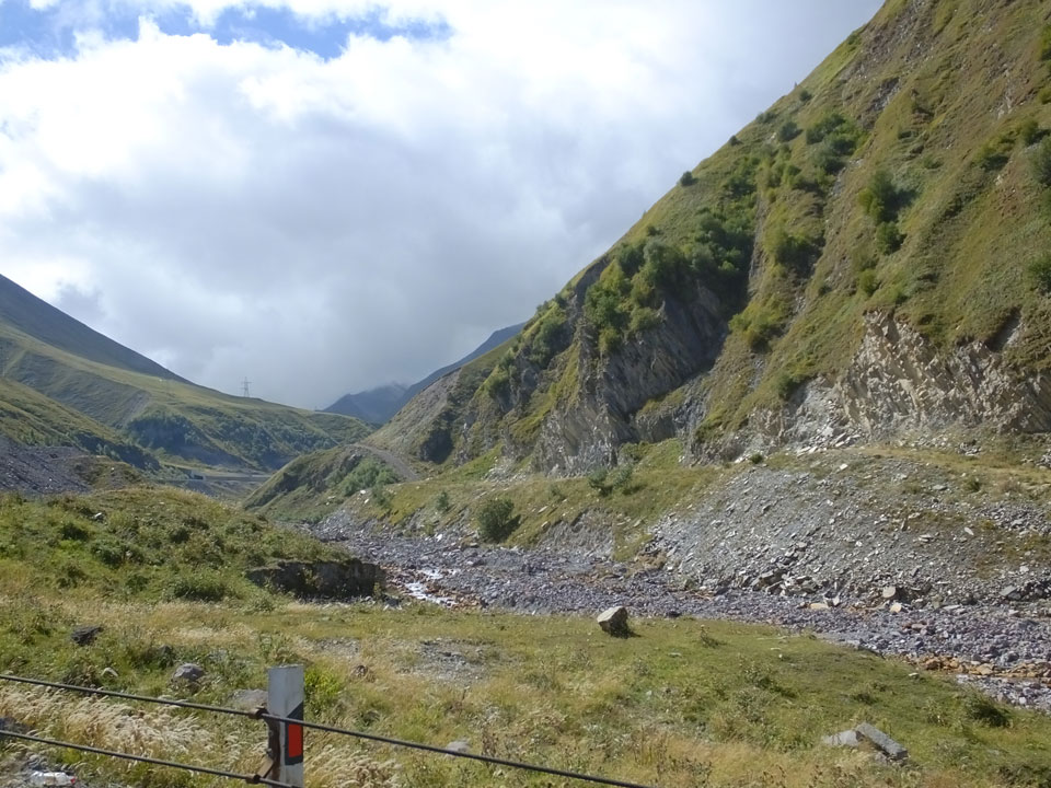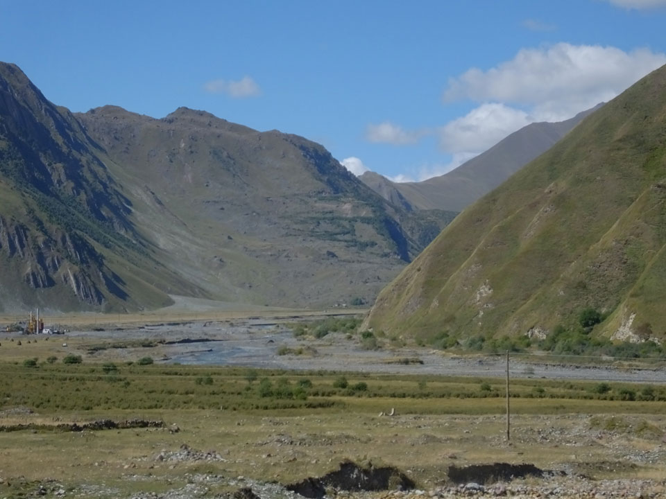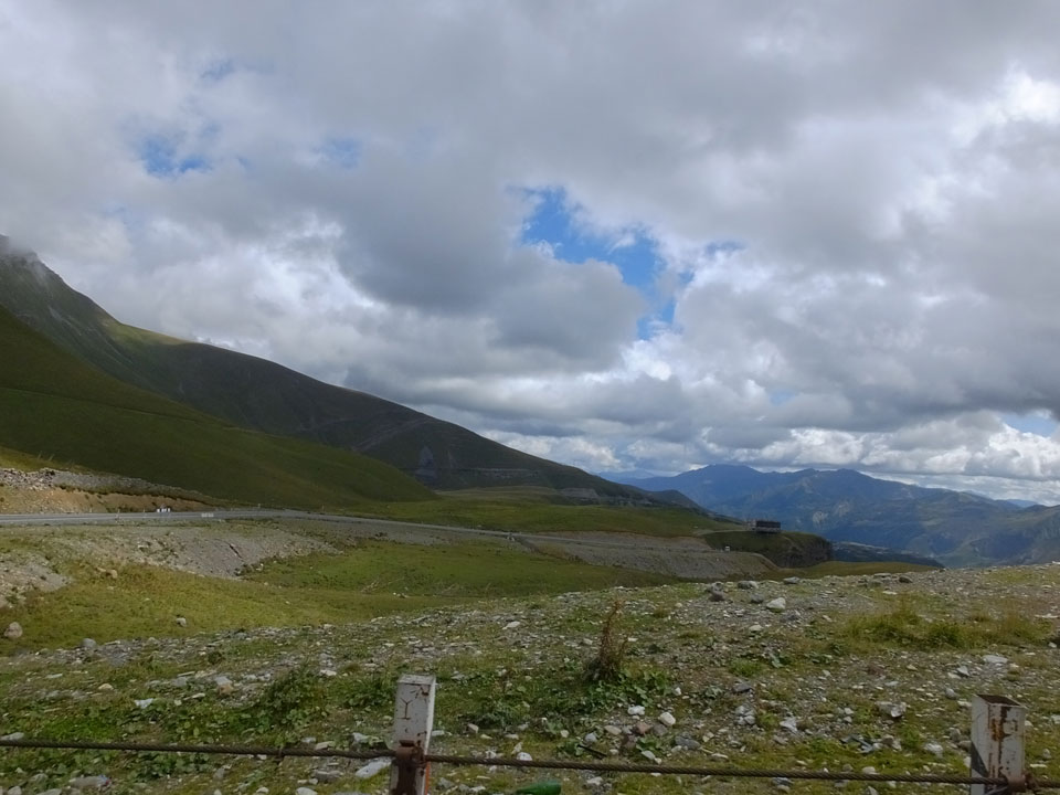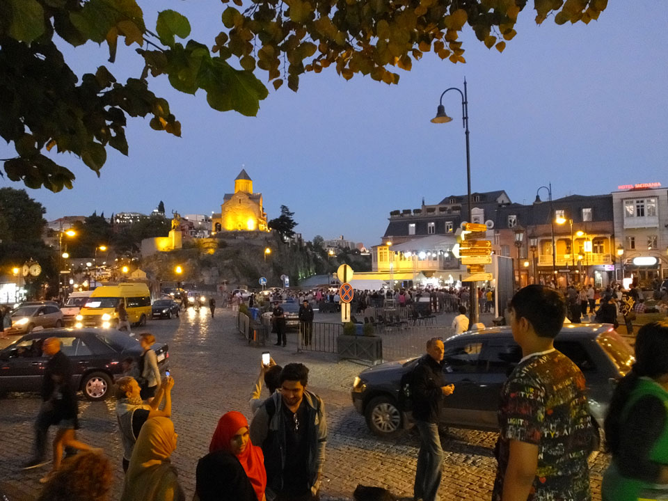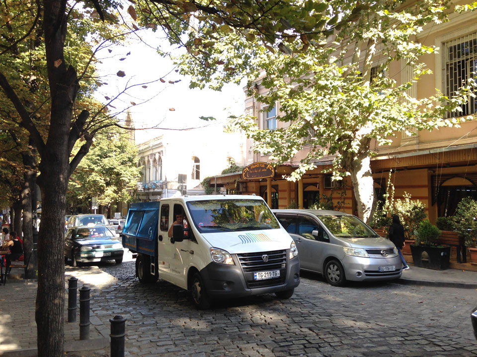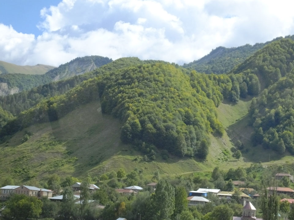 Dank klarer Scheiben hatte ich und die Camera einen ungetönten Blick auf die Landschaft. Schnell ging’s bergab, die Fahrer kennen sich halt aus. So kamen wir wieder gut an der Didube Station an. Ich holte mir erst mal was zu essen, fuhr dann mit den letzten 0,50 GEL zum Freiheitsplatz. Dann hatte ich die GPS Koordinaten meines Apartments auf dem Handy und kam zielgerichtet da an.