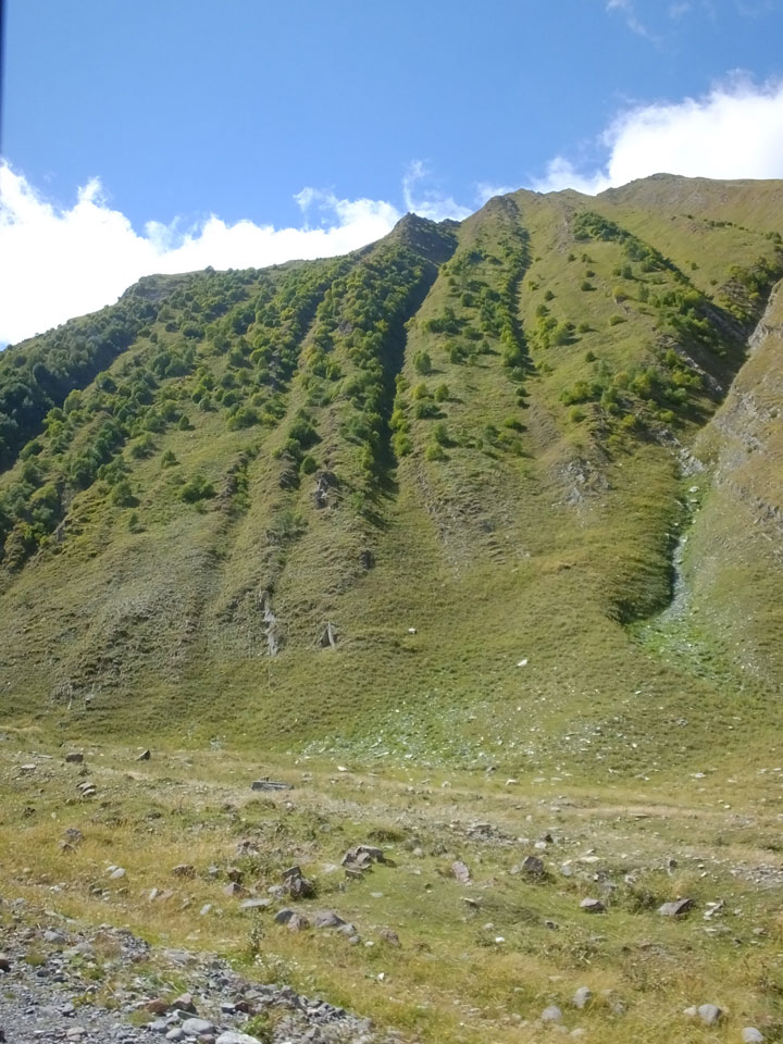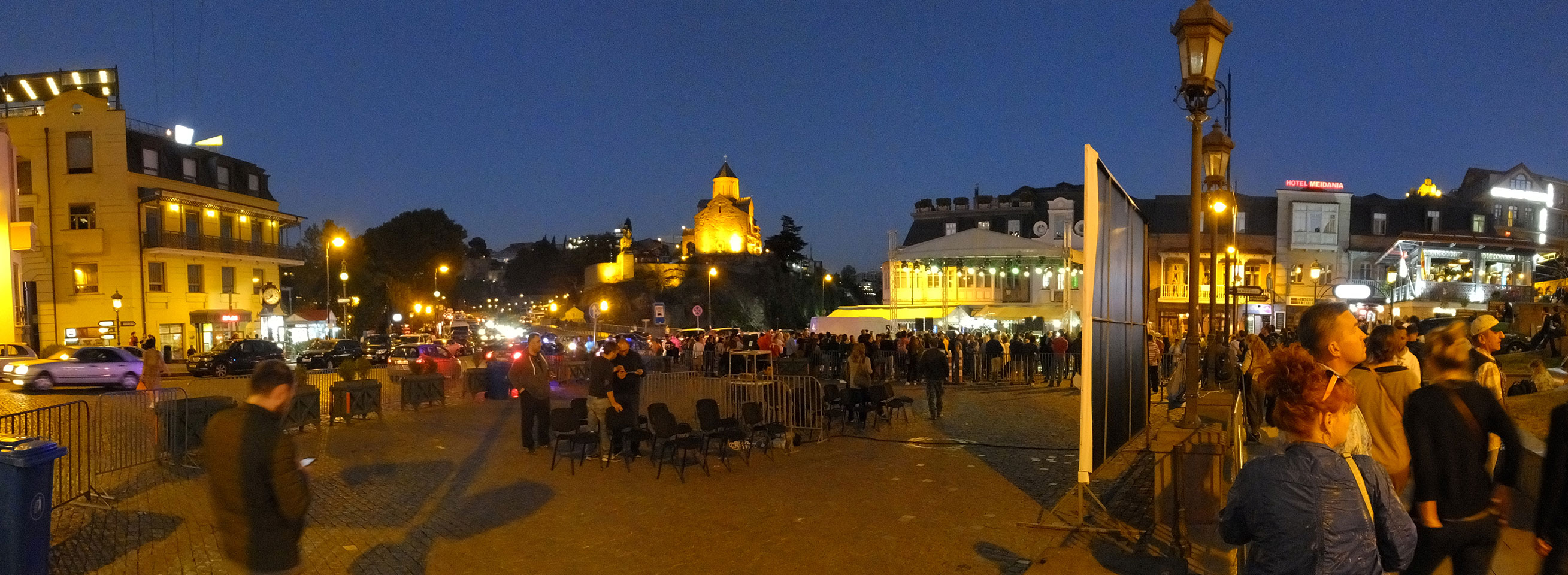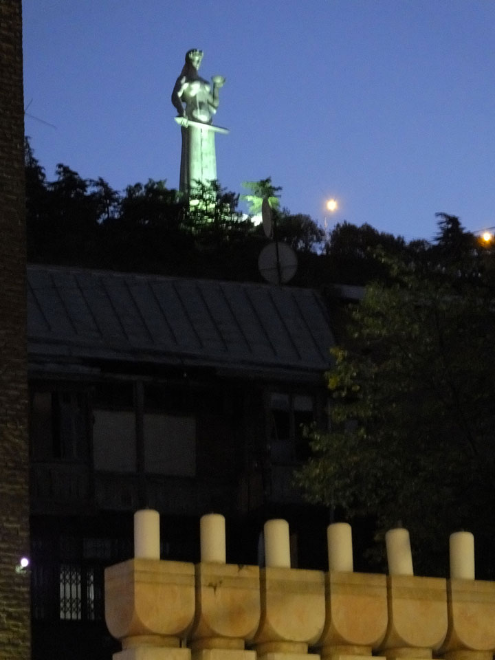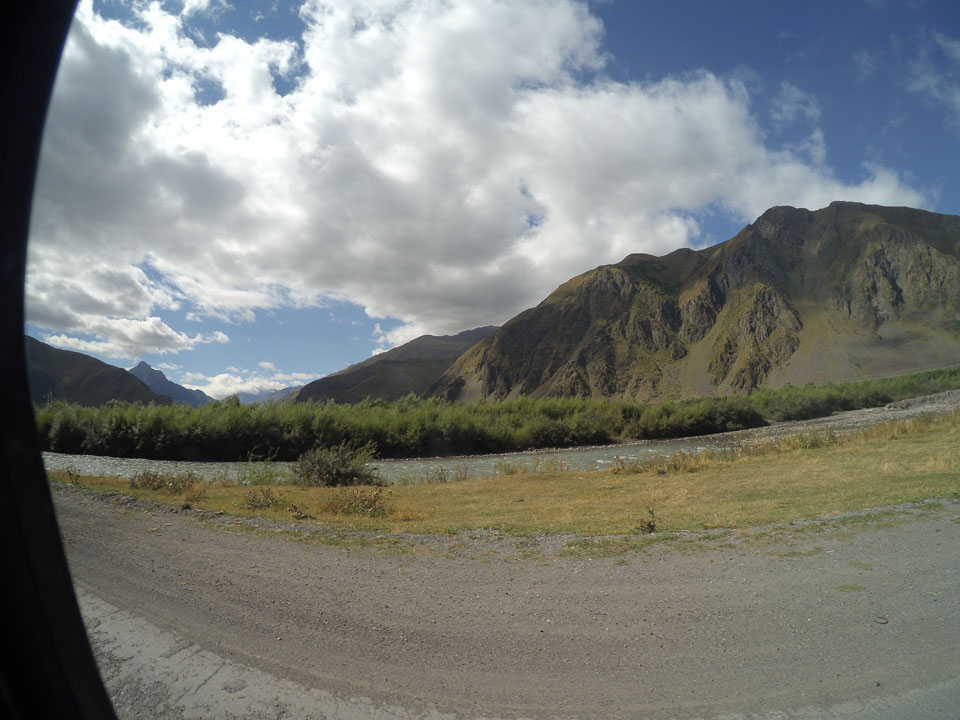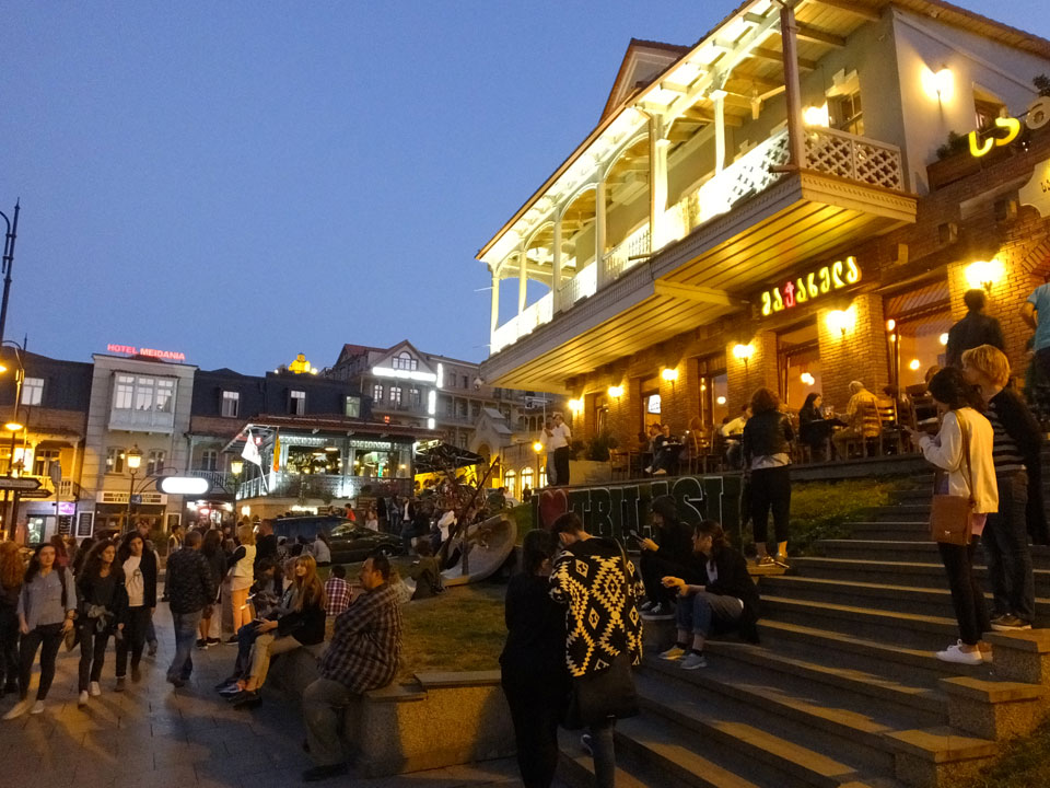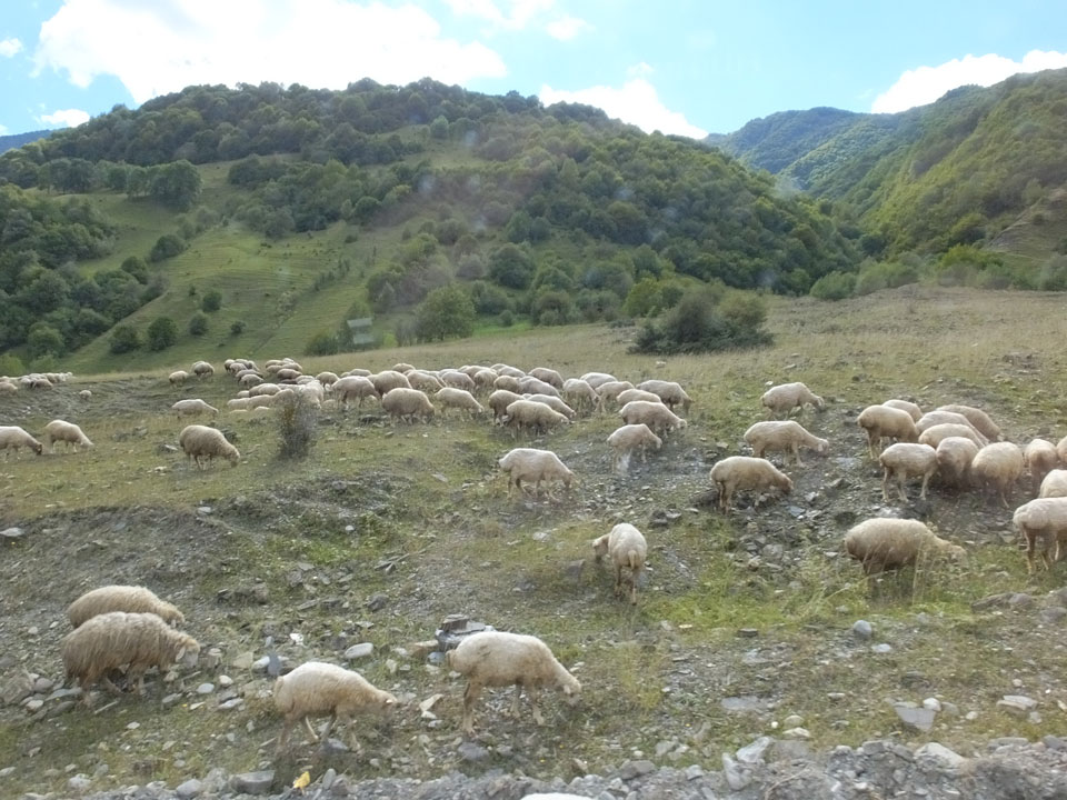 Dank klarer Scheiben hatte ich und die Camera einen ungetönten Blick auf die Landschaft. Schnell ging’s bergab, die Fahrer kennen sich halt aus. So kamen wir wieder gut an der Didube Station an. Ich holte mir erst mal was zu essen, fuhr dann mit den letzten 0,50 GEL zum Freiheitsplatz. Dann hatte ich die GPS Koordinaten meines Apartments auf dem Handy und kam zielgerichtet da an.