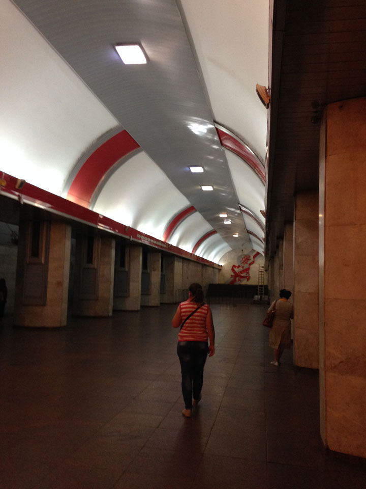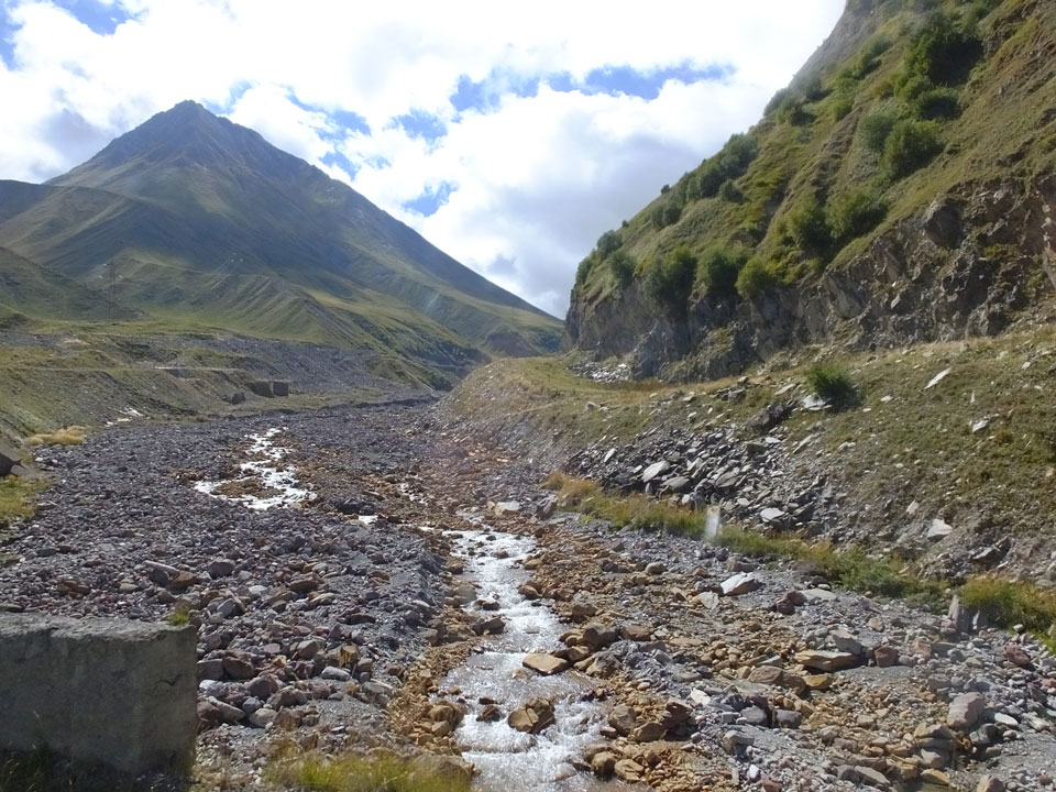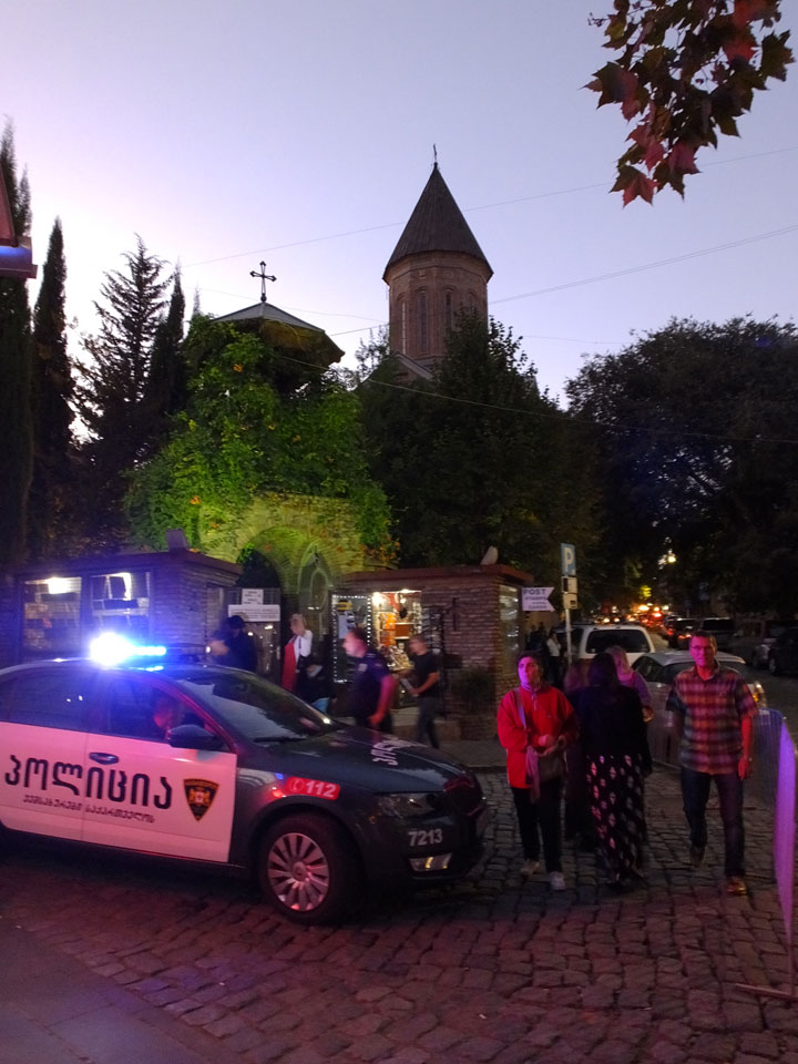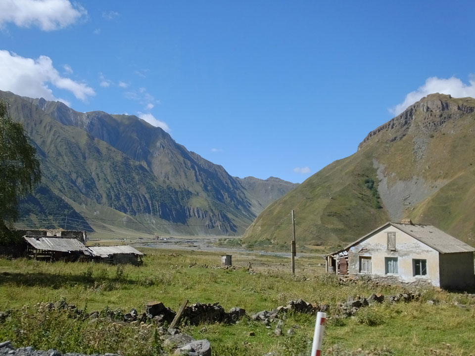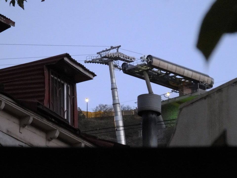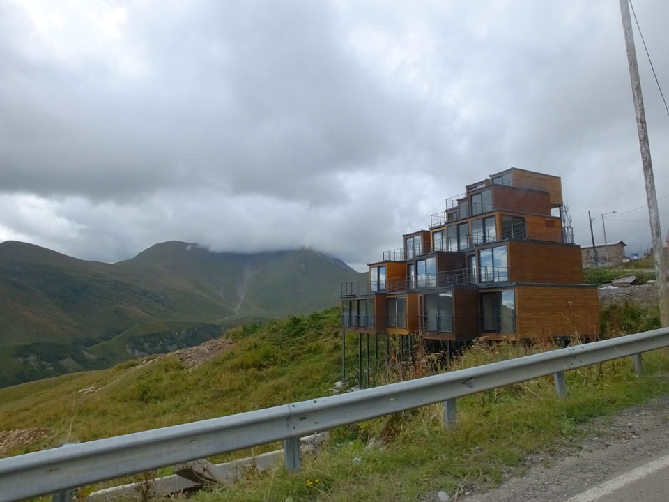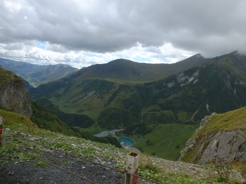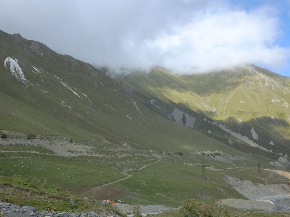 Dank klarer Scheiben hatte ich und die Camera einen ungetönten Blick auf die Landschaft. Schnell ging’s bergab, die Fahrer kennen sich halt aus. So kamen wir wieder gut an der Didube Station an. Ich holte mir erst mal was zu essen, fuhr dann mit den letzten 0,50 GEL zum Freiheitsplatz. Dann hatte ich die GPS Koordinaten meines Apartments auf dem Handy und kam zielgerichtet da an.