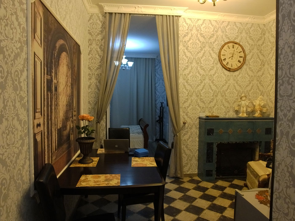 Eine Frau schließlich leitete mich zu einer neuen Tür, eine andere später fragte auch und organisierte schließlich einen Anruf. Ich sollte warten, “5 Minuten”, dann kommt jemand. Es dauerte natürlich länger aber endlich kam doch jemand. Großer Audio mit russischem Nummernschild. Ein ca. 50 jähriger Russe öftnete. Kein Wort der Entschuldigung aber das Apartment war echt gut und ich nun auch happy. Ich hatte eine Frau am Aparat und klärte den Rest. Der Preis war 90 Lari, ich hatte nur 80 in Cash und hier war das eben kein richtiges Hotel ohne VISA Terminal. Ich musste also zur nächsten ATM, zog 100 Lari und zahlte schließlich.