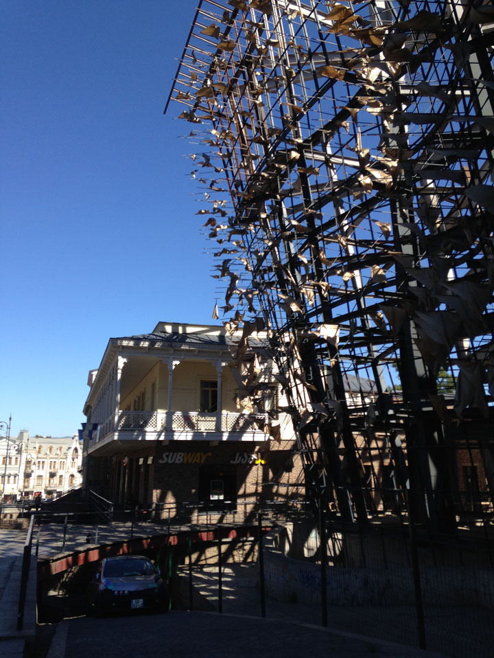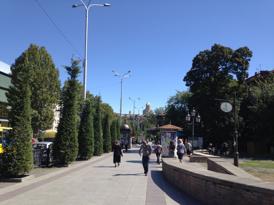Los ging’s Richtung Freiheitsplatz. Dort sollten auch Busse nach Ortachala abfahren – 71 und 80 hatte ich im Netz gefunden. An der Metro doch gab ich meine Karte zurück. Die 2 GEL (€0,80) sind auch Geld. Da musste ich meinen Pass geben, sie füllte ein Formular aus, was ich unterschreiben musste Ja, so schnell ging das nicht doch ich hatte jetzt wieder 2 GEL + Minimünzen dabei + die 30 GEL für die Busfahrt.