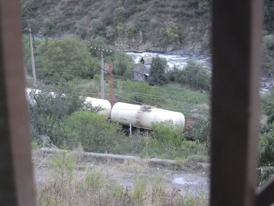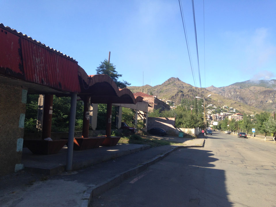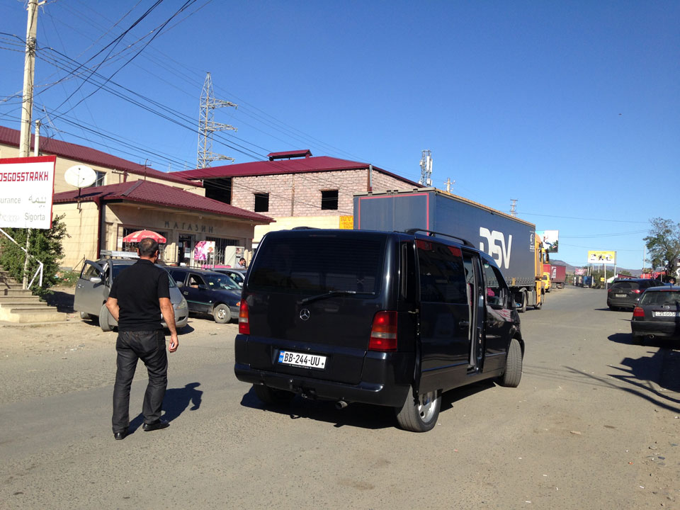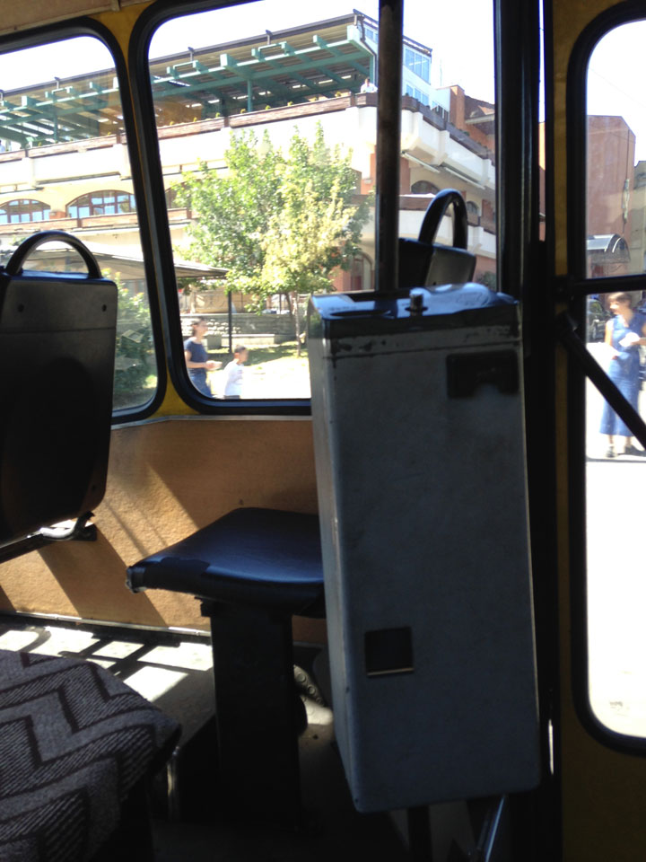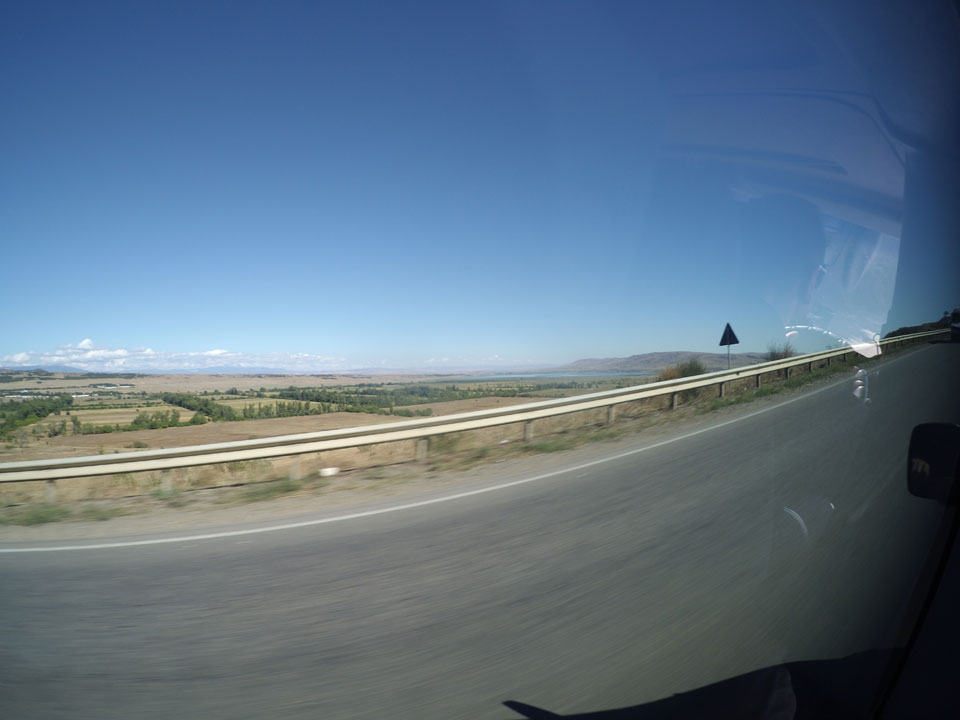 Die Buss dort Am Platz fuhren in die falsche Richtung. Ich schleppte mich wieder runter in die Altstadt und fand schließlich einen. Ticket ging auch mit nur 0,50 GEL. Nach Ortachala viellecht in 15′, dort dann wurde ich gleich zu einem Taxi Richtung Armenien geleitet. Sollte bal los gehen, nur 2-3 Leute noch.