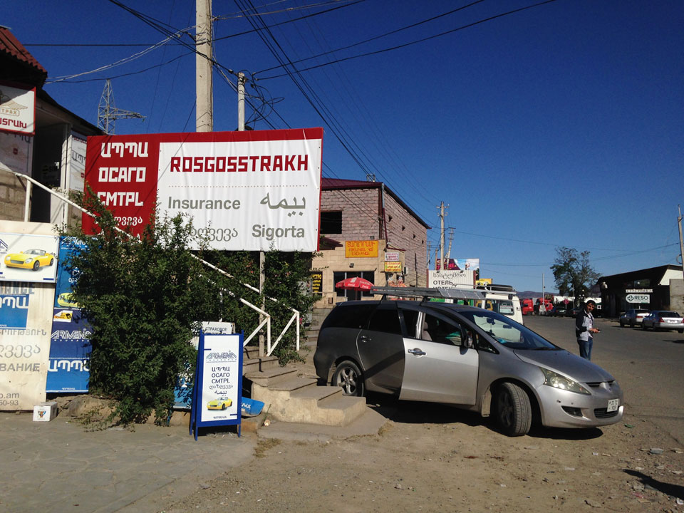 Der Minibus war halb voll und fuhr damit noch schneller. Bis zur Grenze war’s nicht weit – um die 60km vielleicht. Erst aus Georgien raus, dann in Armenien rein: „Welcome!“. Armenien sah gleich an der Grenze etwas schmuddeliger aus aber was soll’s.