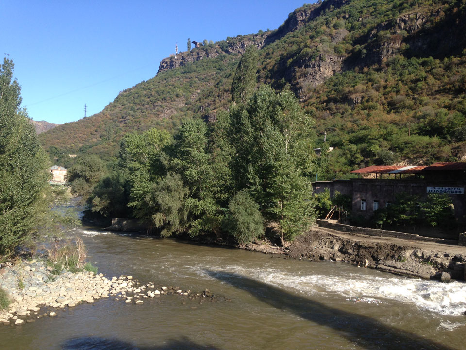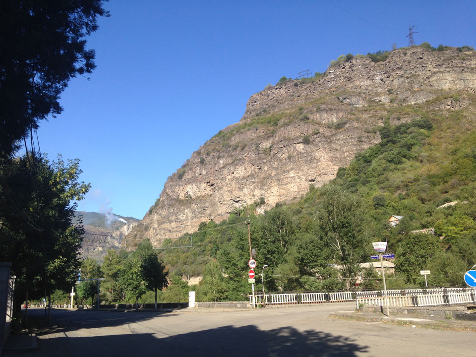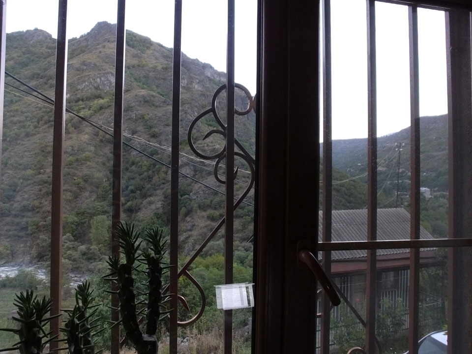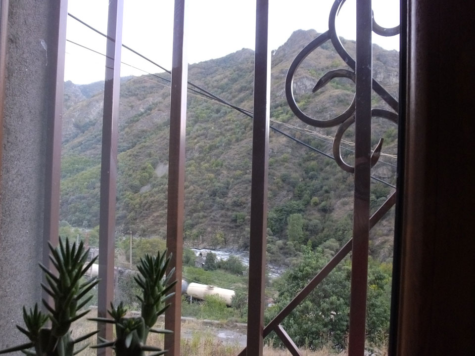 Ich war der Einzige, der in Alaverdi raus wollte. Wo das Zentrum sei – immer runter die Straße. Die Straße lief ich und die war lang. Ein Supermarkt, dann noch einer. Etwas Cash geholt und dann ein Taxi gesehen. Der Fahrer wusste von einem Hotel/Gästehaus – Iris. Kam mir irgendwie bekannt vor von der booking.com Recherche. Dort hatte man ein Zimmer, musste nur gerade geputzt werden. Ich wurde ja nicht erwartet. Man sprach gut Englisch und nach ’nem Kaffee ging’s mir auch wieder gut. Der Mann zeigte mir stolz die Gästebücher. Angefangen von 2010, wo ein Deutscher auf Armenisch den ersten Eintrag verfasste.