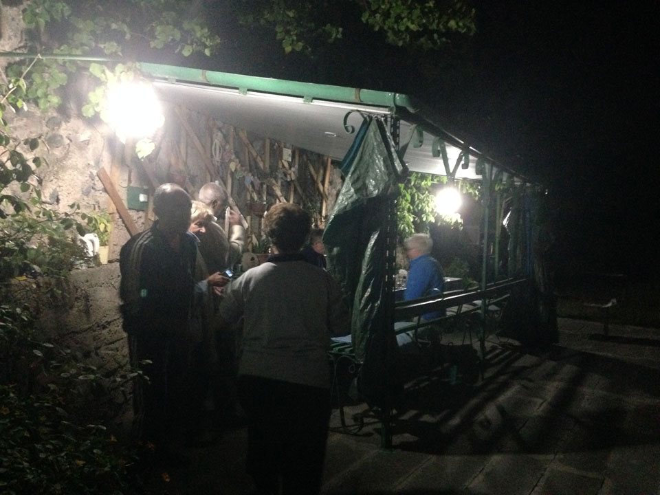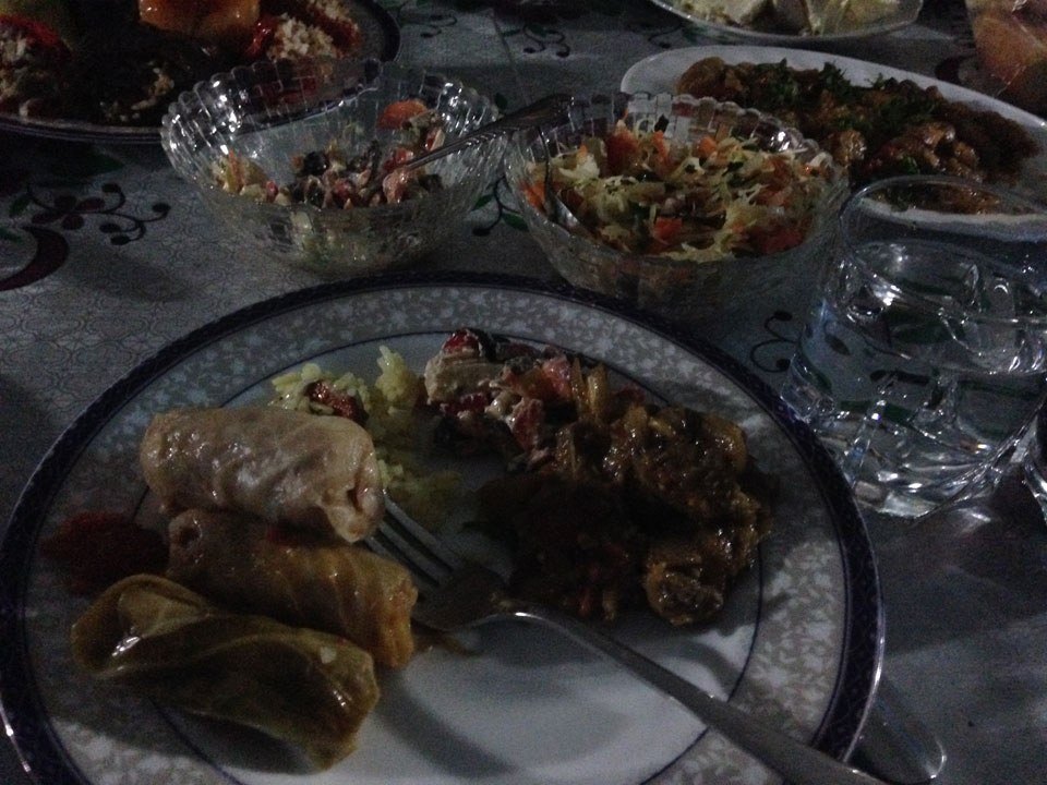 Im Zimmer dann hatte ich zu tun mit dem 4K 360° Theta Video und dann gab’s auch schon Abendessen. Recht teuer (4000) aber dann auch gut. Es war draußen im Garten und viele weitere Leute tauchten auf. Das Gästehaus hat wohl noch ein Gebäude nur für die Gäste. Da war ein französisches Paar, Holländer und zwei junge Deutsche Studenten. Wir redeten, aßen leckere Sachen. Der Mann des Gästehauses war Nukleartechniker und sprach exzellentes Englisch. Jetzt ist er quasi Kellner. Bei so vielen Gästen, muss es der Familie finanziell ganz gut gehen.