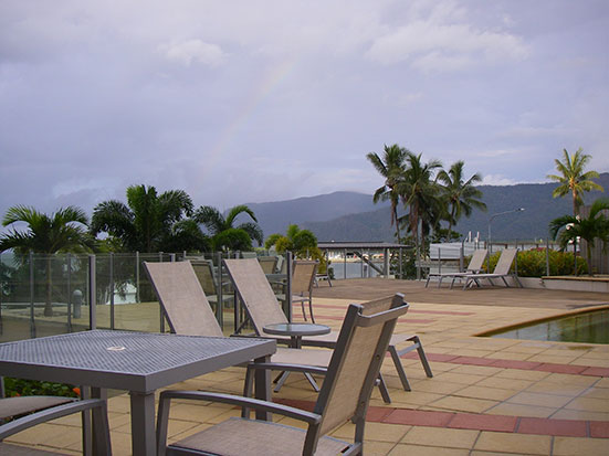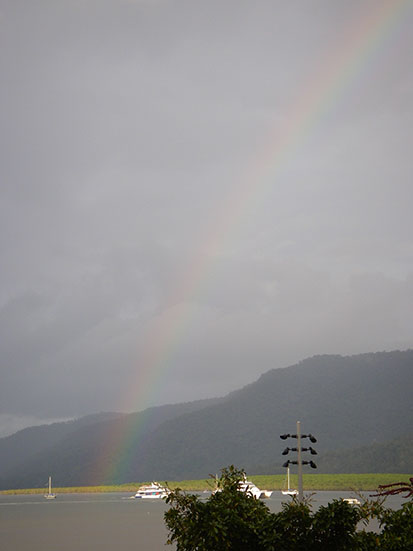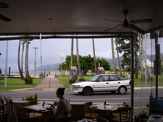 Wieder zurück im Apartment lief wieder Kill Bill 2, dann Kill Bill 1. Netter Film, habe ich inzwischen oft gesehen. Nachmittags und schon fast abend wieder los. Draußen zeigte sich ein schöner Regenbogen im Licht des Sonnenuntergangs. Ein Eis bei Baskin Robbins.