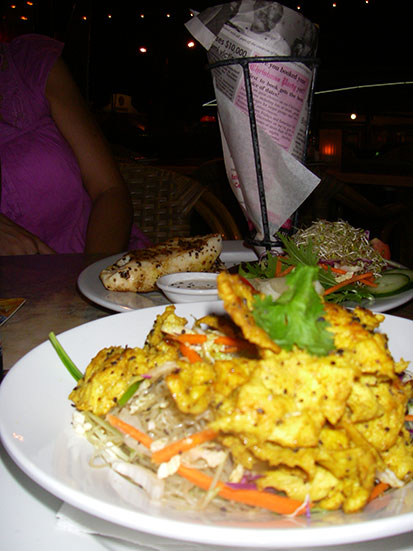 Wieder weiter spazierten wir in der Gegend herum, um etwas Hunger zu bekommen. Wieder gingen wir in die Apres Beach. Das zweite Mal hier. Ich hatte Crocodil-Fillets auf vietnamesischem Nudelsalat. Etwas kalt das Ganze. Musste wohl so sein und schmeckte auch gut. Das Restaurant serviert auch eine Menge Biere. Eins aus jamaika und Dos Eques aus Mexico schmeckten ganz gut. Später trafen wir den Amerikaner – das Portugiesische Bier war aus und wir dann auch davon.