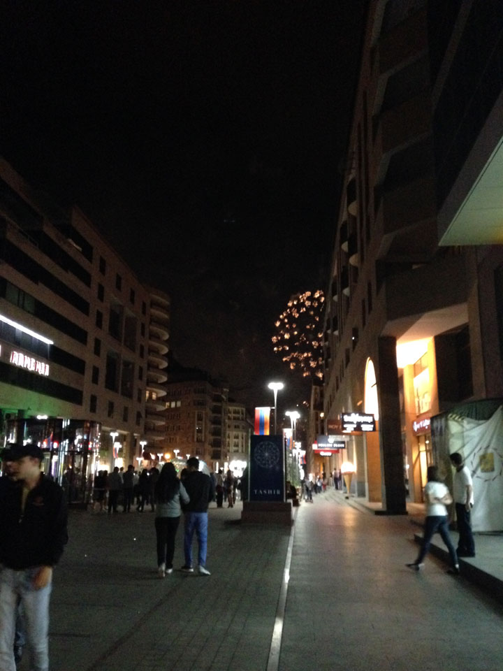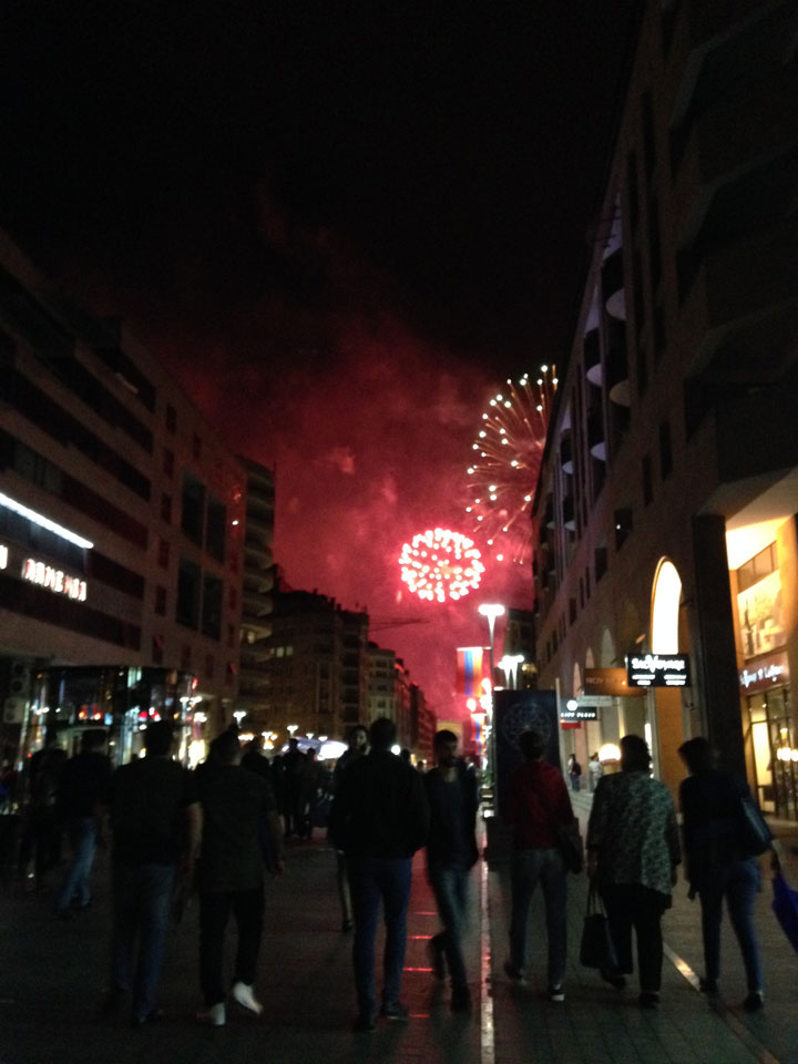 Abends dann ging ich was essen. Etwas regnerisch ab und zu. Es gab wieder mal Shwarma, heute mit scharfem Tomatensaft. Das Ding kostete 1100 und ich ließ 900 in Münzen liegen. Ganz schön heftiges Trinkgeld – fast €2. Naja, draußen war Feuerwerk und ich sah noch den Rest aus der Ferne.