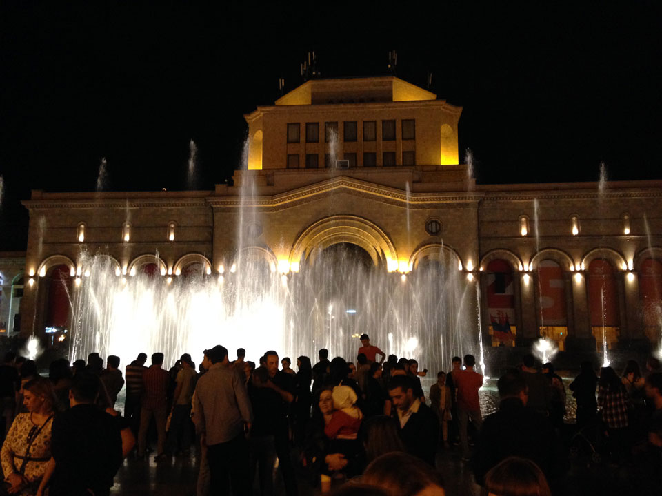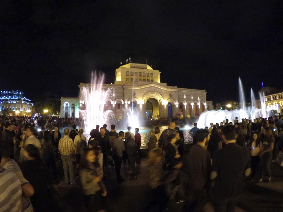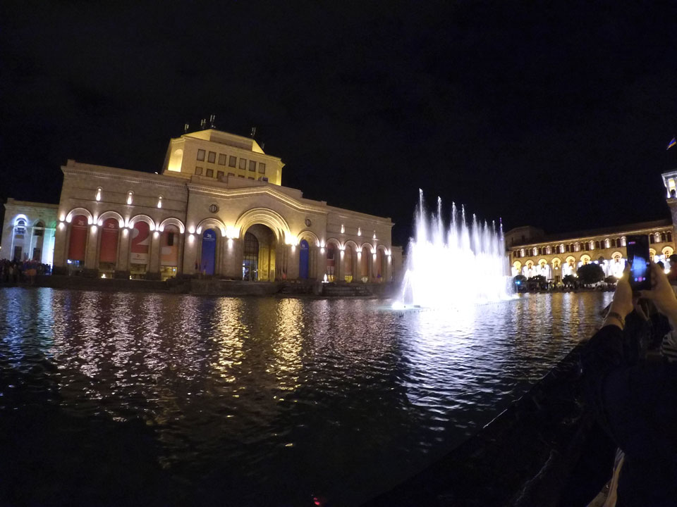 Runter zum Platz an so vielen Leuten vorbei. Nach Tbilisi sah ich ja keine richtige Stadt mehr. Ich holte mir ein Eis, knipste und war zufrieden. Der Brunnen am Platz spielte Fontainen zur Musik. Noch ein Eis und schließlich zurück in’s Hostel. Es gäbe einiges an Nightlife doch heute war ich etwas zu müde.