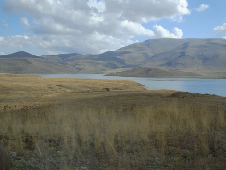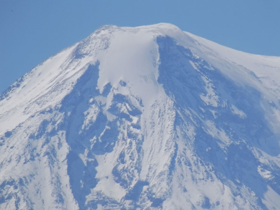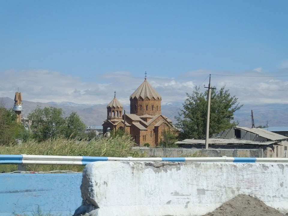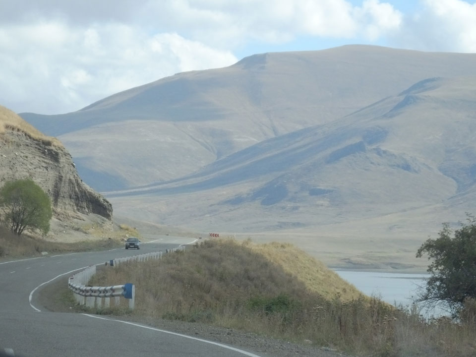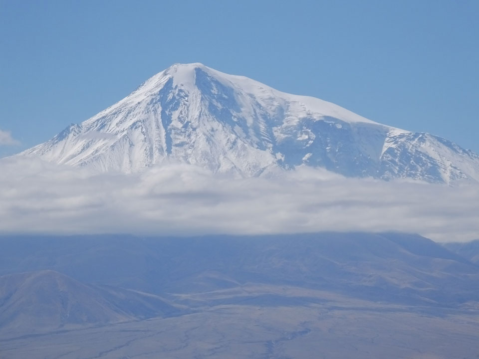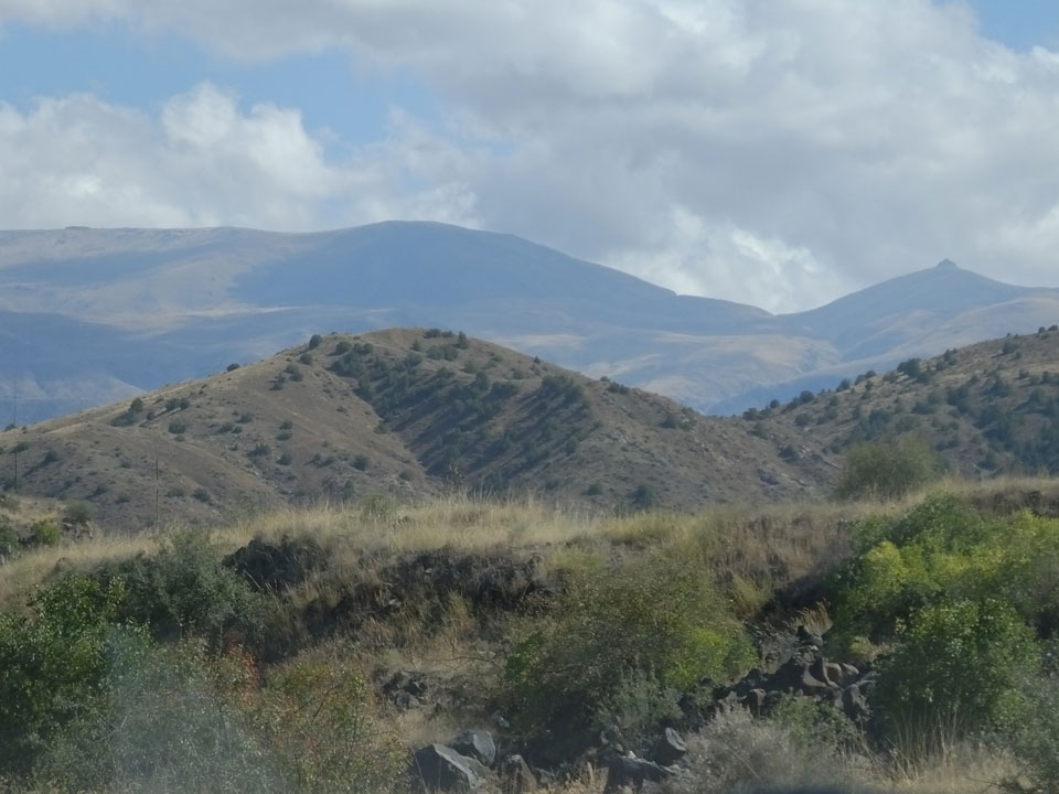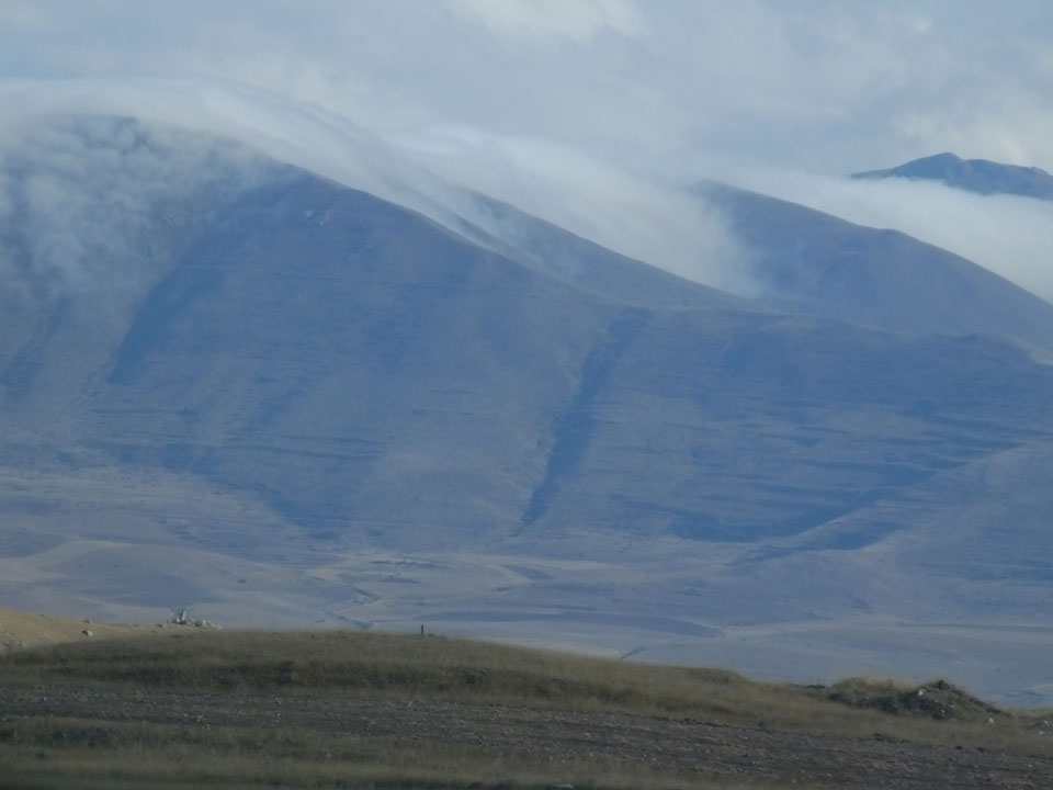 Wir holten weitere Leute ab, dann ging’s raus aus Yerevan Richtung Osten. Links neben mir das Mädel, recht eine Frau mit Kind. Bei einer Tankpause sah ich Mt. Ararat in voller Schönheit. Ein imposanter Vulkan da drüben in der Türkei.