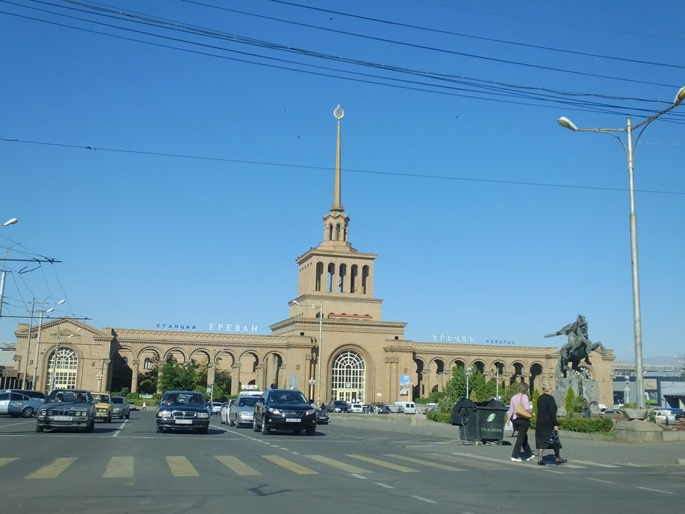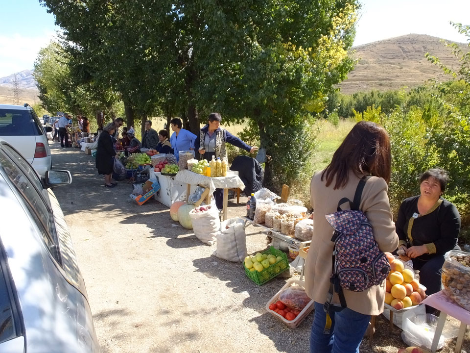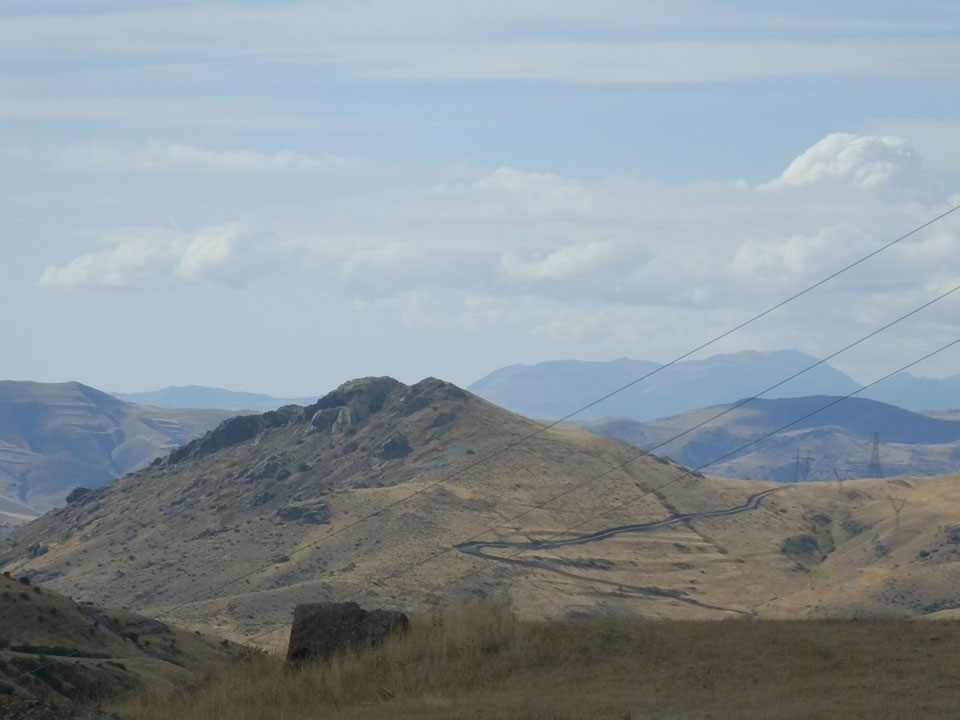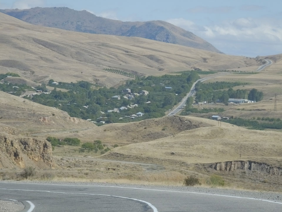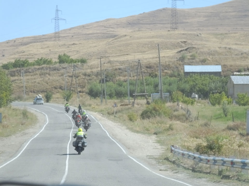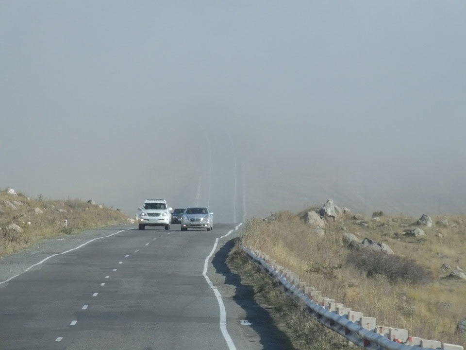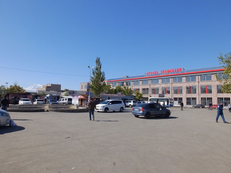 Der Taxtifahrer fuhr uns hin und für 1000 (900+100) war es das auch wert gegenüber Bus. Dort an der Gai Station wusste man nur nicht von Goris. Es wurde diskutiert. Ein anderes Taxi fuhr los und brachte uns wohl zu Rossiya Station. Das Herumkurven dauerte, sodass es dann 2000 wurden. Da waren wir nun und ein Shared Taxi stand auch da. Ein Minivan für um die 7 Leute. Es kam nur niemand und somit wurde schließlich der Rucksack auf das Dach eines Kombis geschnallt. Da auch weiter warten – nichts tat sich. Ein weiteres Mal wechselten wir das Gefährt. Jetzt ein normales Auto und es ging los. Inzwischen ca. 11:30, wieder um die 1:30h Wartezeit. Für mich normal.