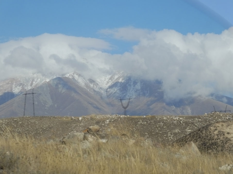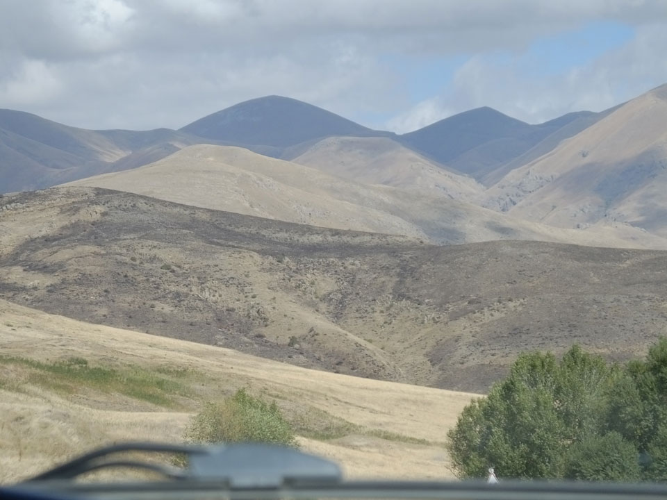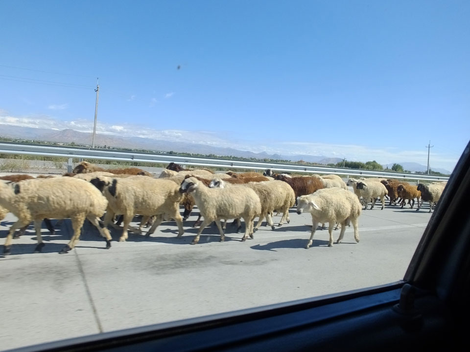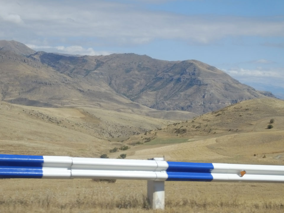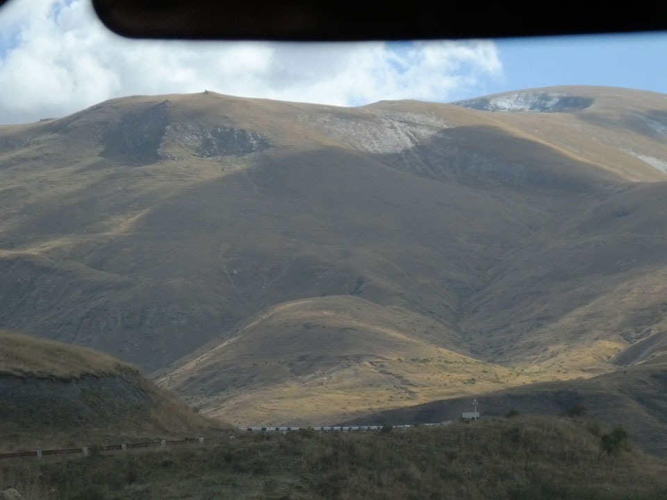 Die Fahrt war lang aber auch nicht so lang. Durch den Mittelplatz konnte ich ein paar Photos durch die Frontscheibe versuchen. Auf den Hügeln, auf schlängelnden Bergstraßen, sah man die tolle Lanschaft von oben. Halbwüste, Kühe, Schafe und schließlich noch mehr Berge.