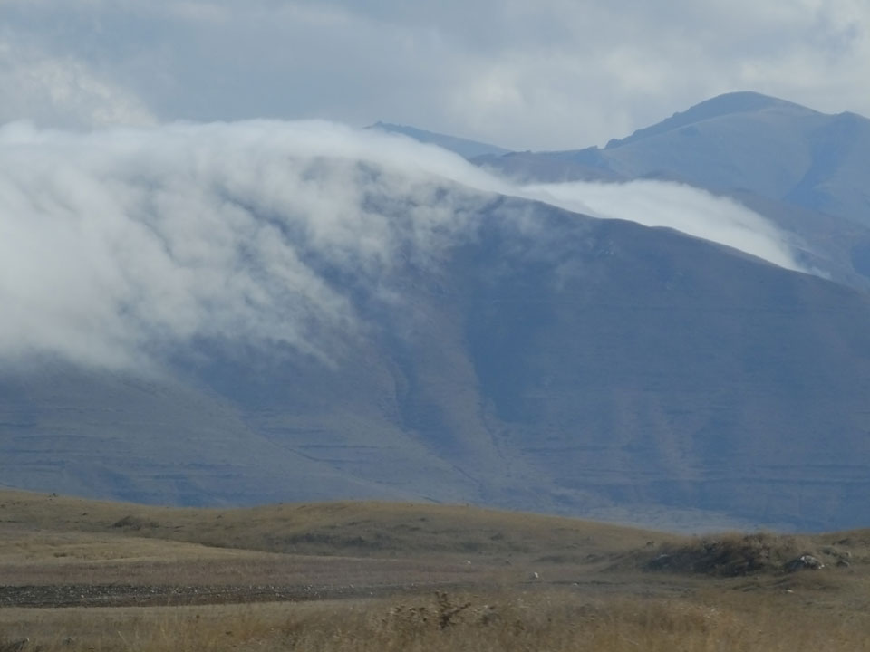 Mit dem Nachmittag kamen wir in die Nähe von Goris. Die Wolken zogen über die Bergkette und ich war super happy über diese Fahrt. So toll hatte ich mir die Landschaft hier im Süden Armeniens gar nicht vorgestellt! Im Auto bekam ich mit, dass Montags die Schwebebahn Ruhetag hat. Das passt mir gar nicht, da ich nur zwei Nächte hier geplant hatte.