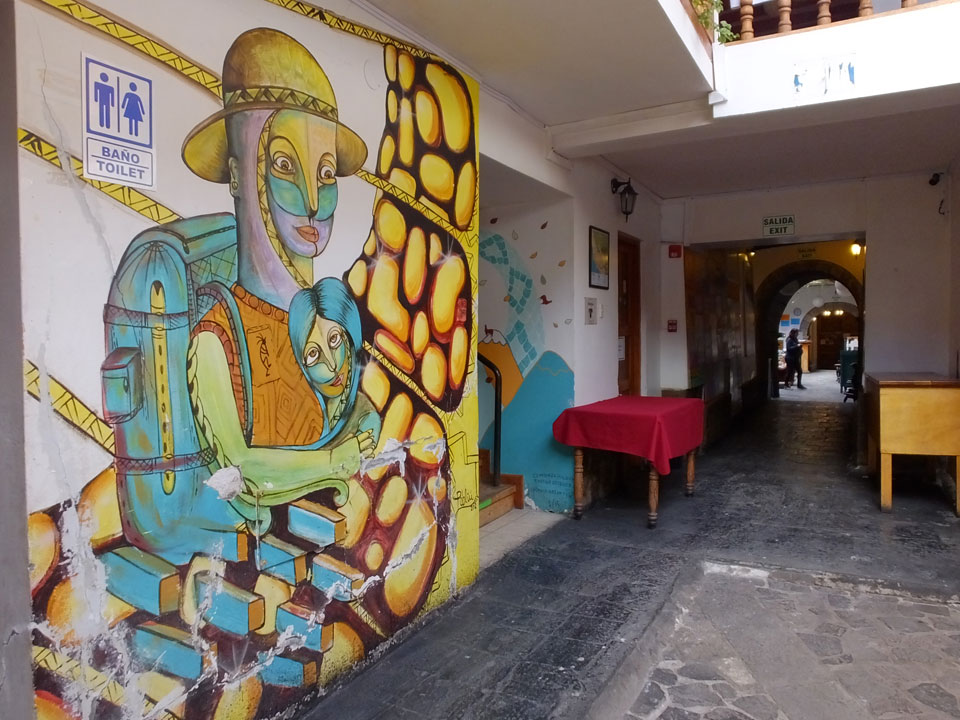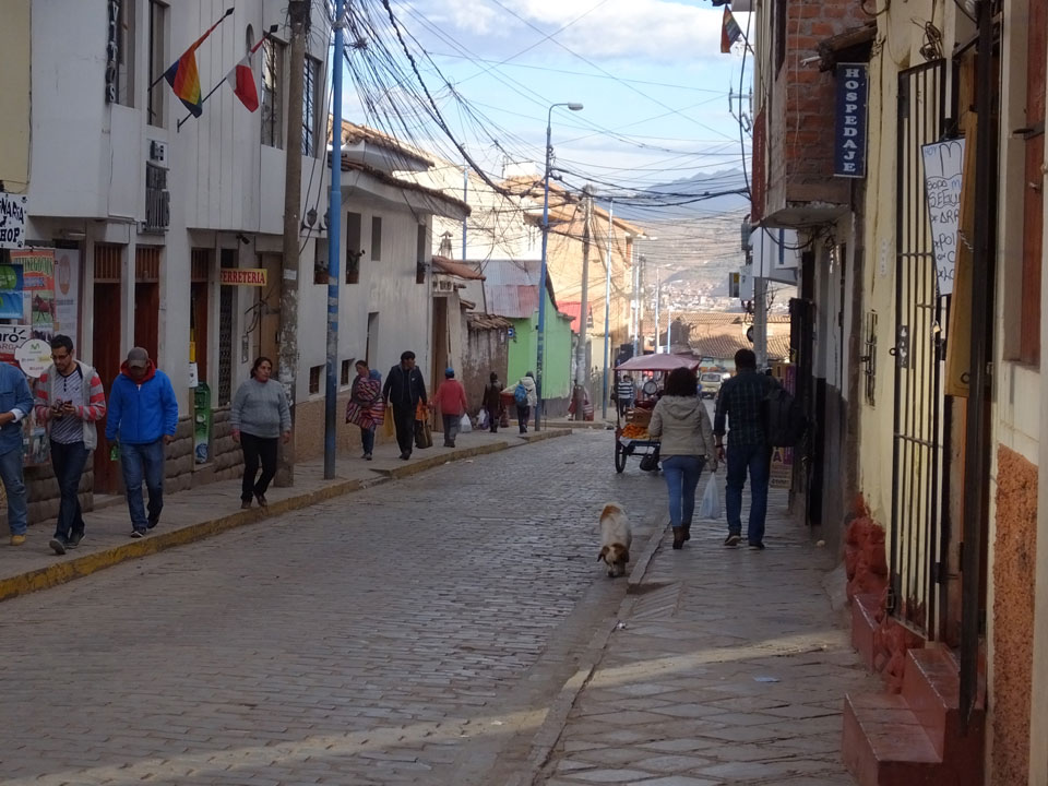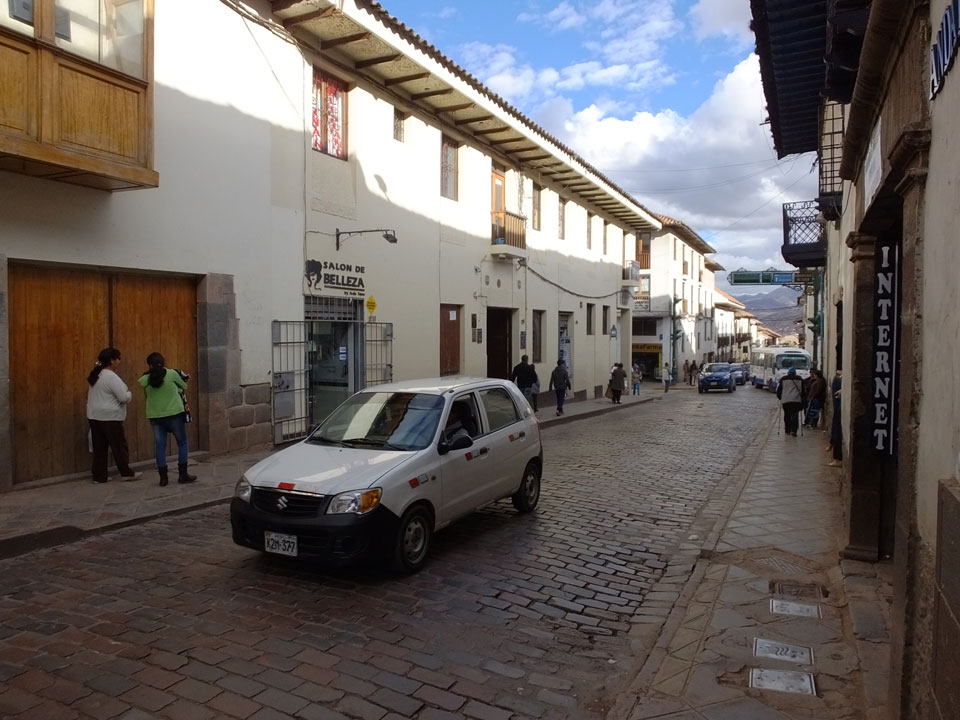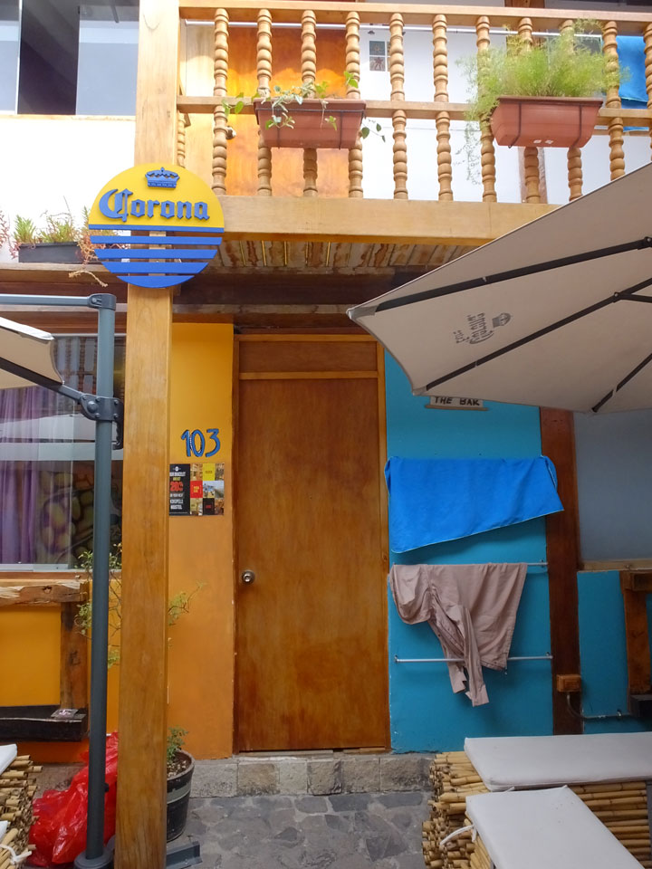 Ich nahm groggi ein Taxi zum Hostel, den ersten Fahrer, der zu 5 statt 6 Soles zusagte. Ich gab dann trotzdem 6, was ich etwas bereute, denn er setzte mich am Eco Backpackers statt Kokopelli Backpackers ab. Ich bekam eine Karte und lief die paar Blöcke runter.