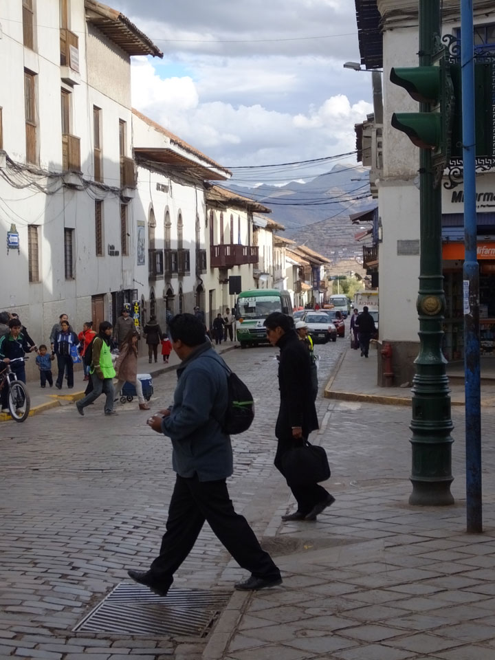 Auf der kurvigen Straße war Schlafen schwer. Ich dachte, ich wäre nur kurz weggenickt, doch dann sah ich durch die angelaufenen Scheiben das Morgengrauen. Der Busbegleiter ging durch und sagte, dass man die Stühle hochstellen solle. Wir waren gleich in Cusco. Total irre! Mein Zeitgefühl komplett durcheinander.