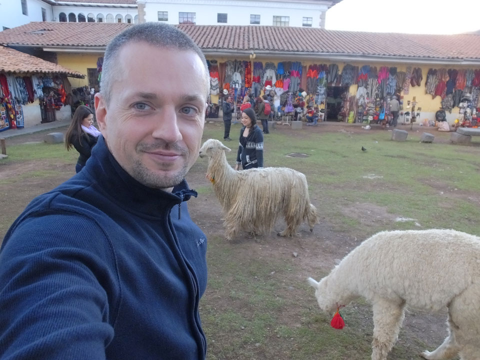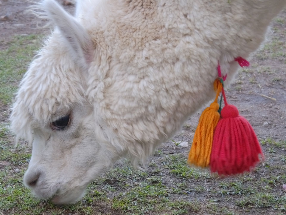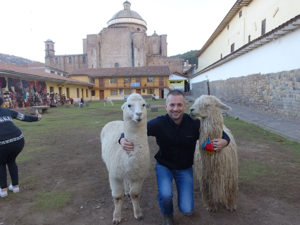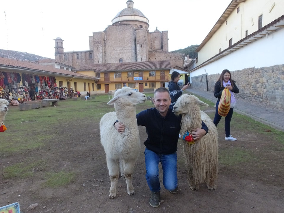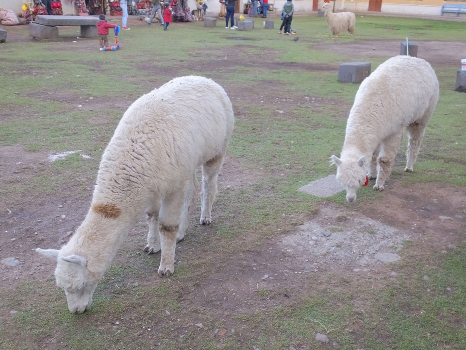 Schließlich einen Abstecher vorbei an Menschenmassen, wo ich ein paar Llamas und Alpacas fand. Bei Souvenirläden hinter der Kathedrale grasten die Tiere. Für 1 Sol ließ ich mir auch mal ein Bild machen. Lustig.