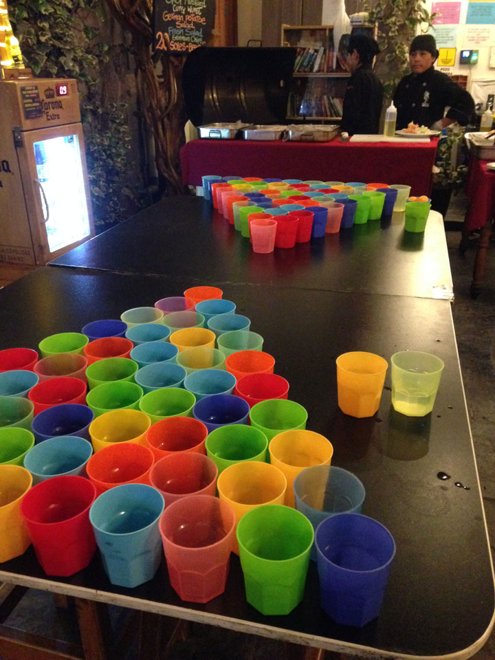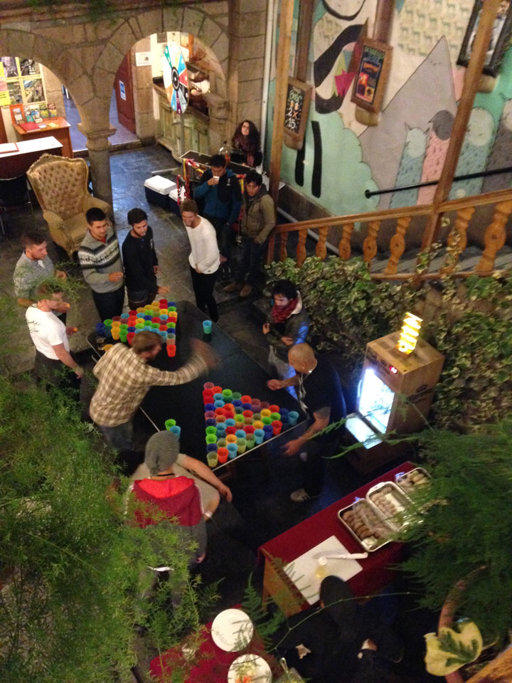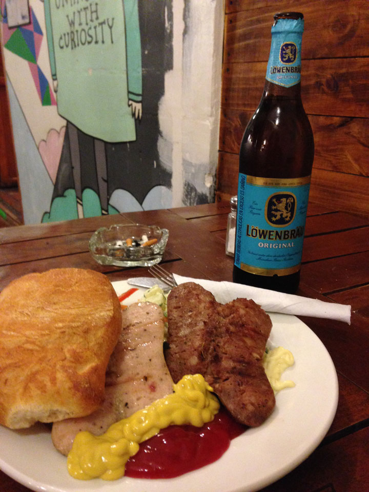 Das Hostel machte eine Art Oktoberfest. Aus drei Würsten, konnte man sich zwei aussuchen. Kartoffelsalat und Brötchen – alles OK für 20 Soles. So hatte ich mal wieder ein deutsches Essen. Die Würste wurden jedoch halbiert gegrillt, was in Deutschland ja kaum jemand macht.