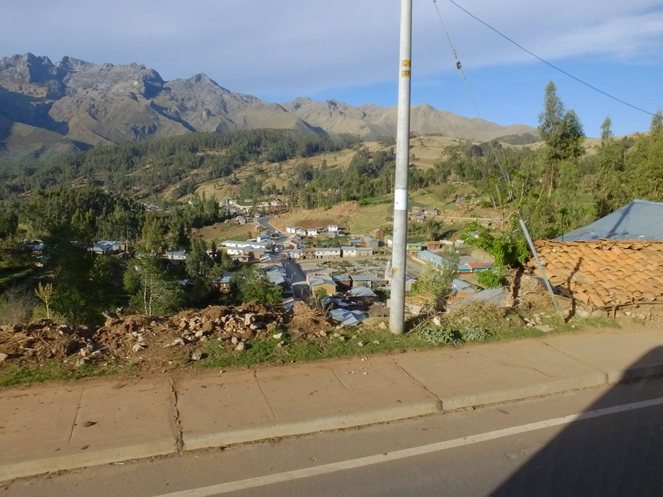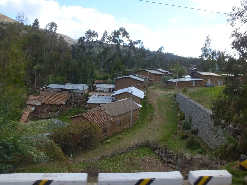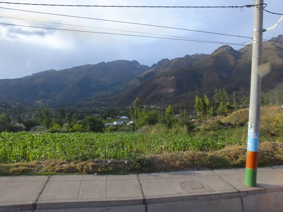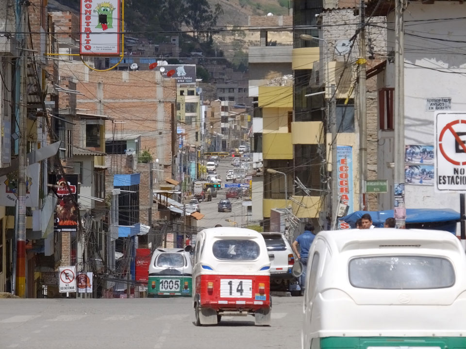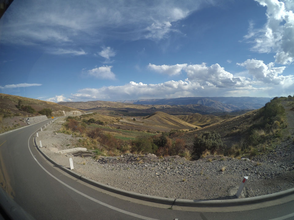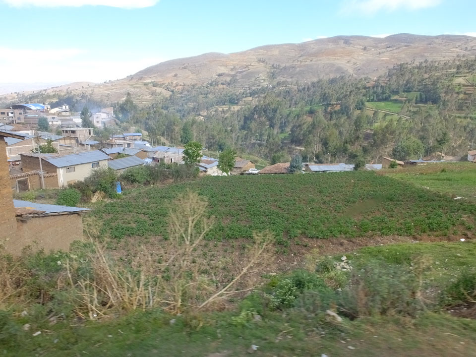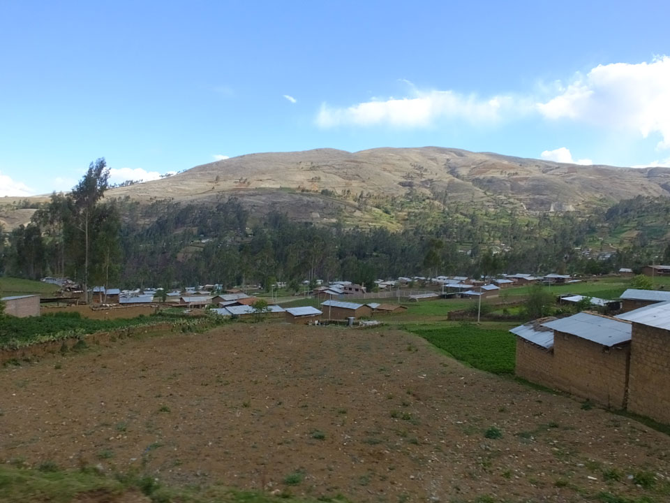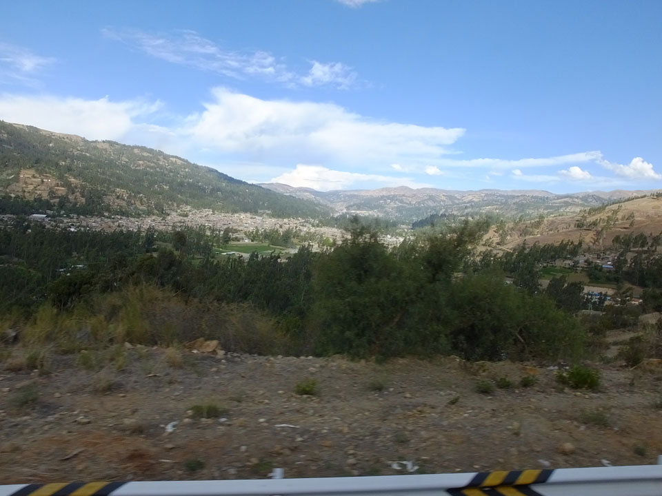 Dann ging’s mit einem taxi (5 Soles) zu Molinas und mit dem Bus durch die endlosen Berge Richtung Norden. Ein paar Halte gab’s auch, sodass sich der Bus füllte. Die Landschaft Perus ist wunderschön, die Orte sind es nicht. Überall sind die Häuser entweder stümperhaft angestrichen, mit Presidenten-Wahlaufforderungen oder Werbung. Allerhand Tiere laufen auch herum und die Leute sind eben vom Dorf.