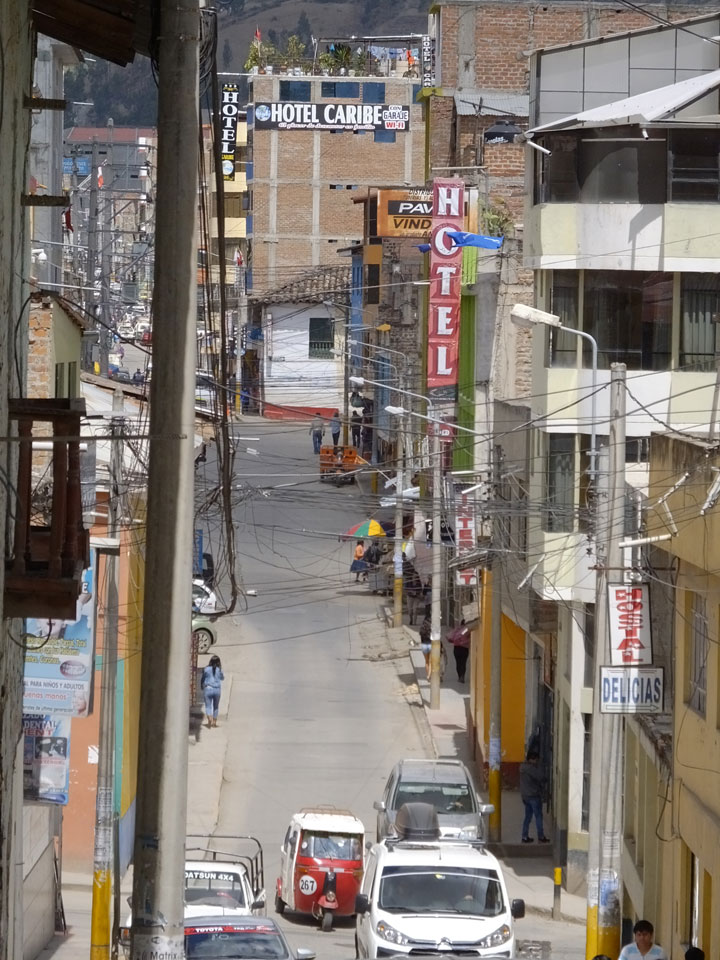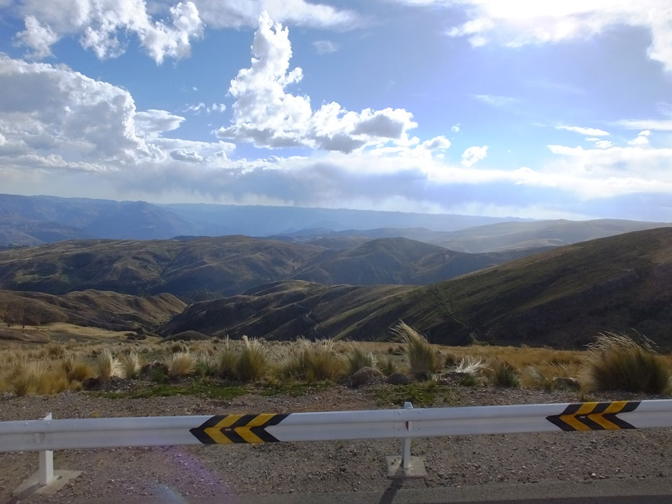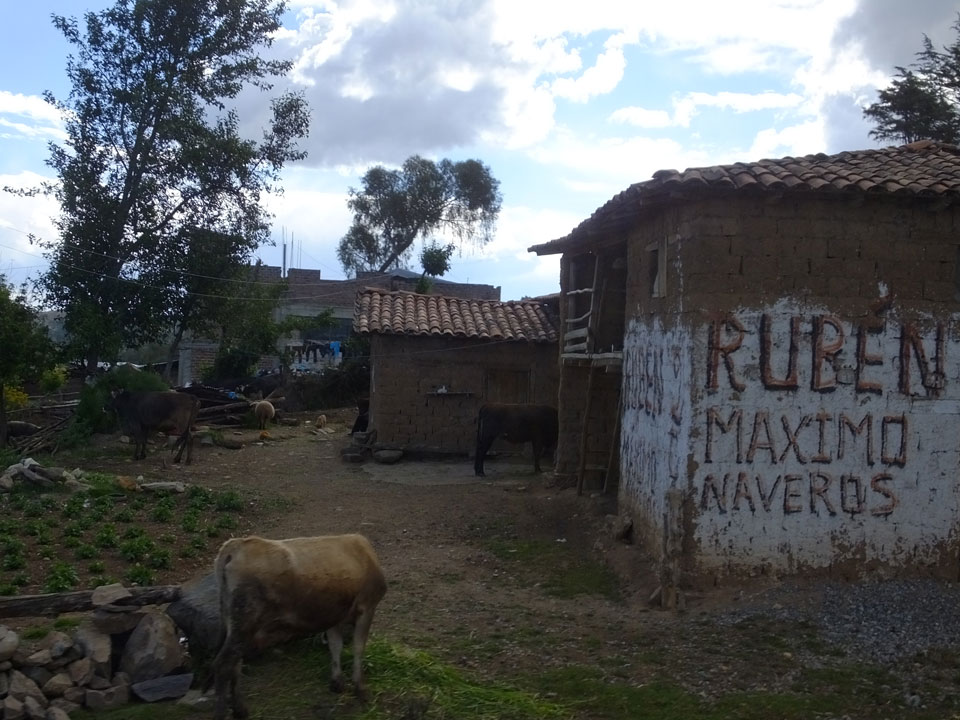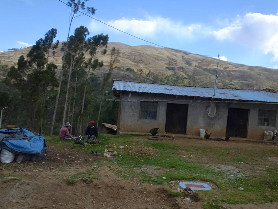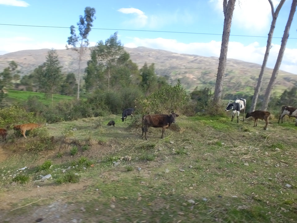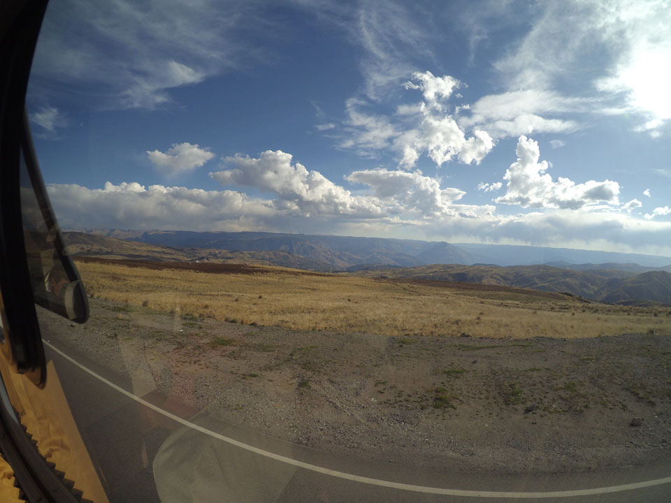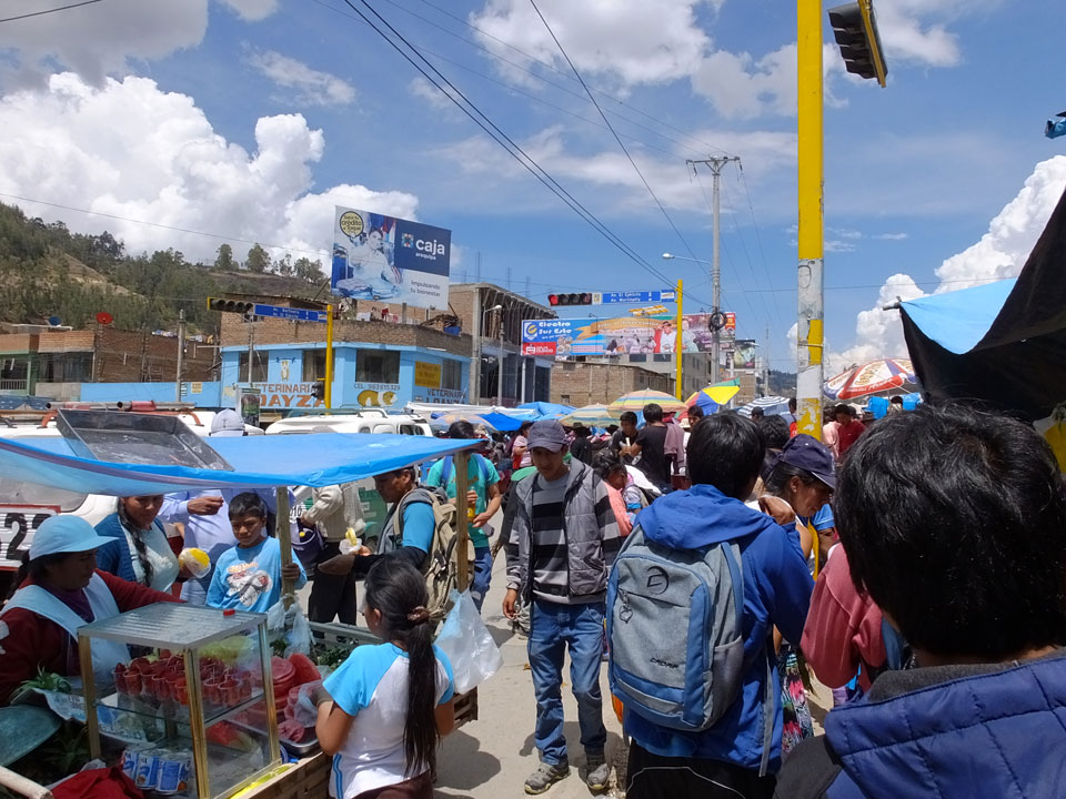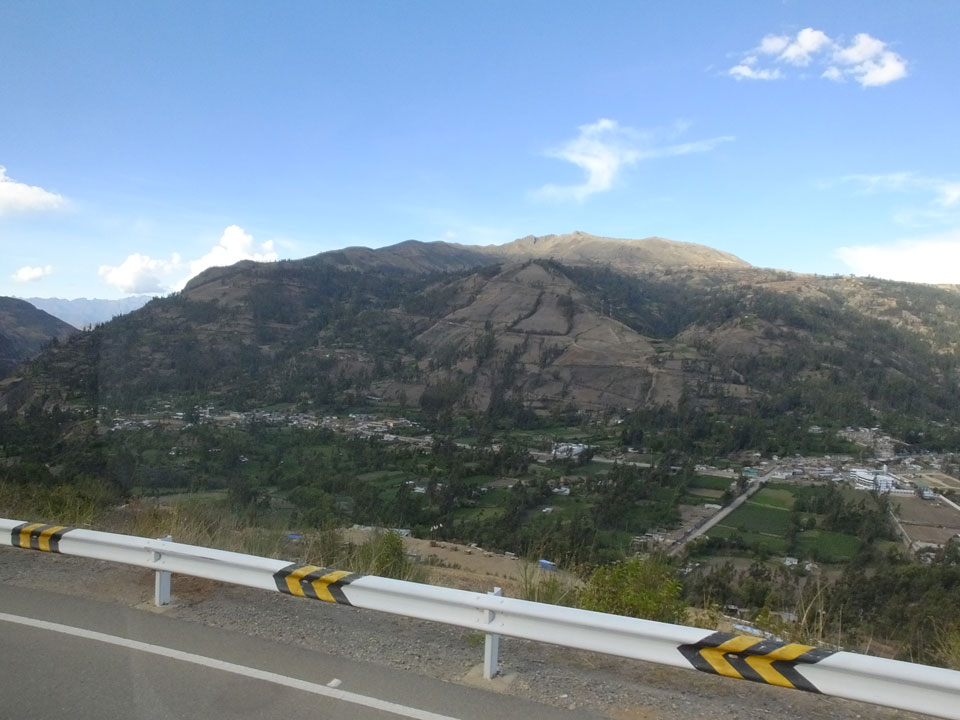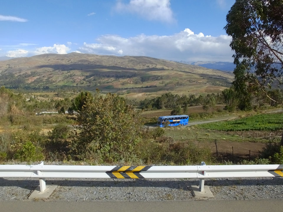 Dann ging’s mit einem taxi (5 Soles) zu Molinas und mit dem Bus durch die endlosen Berge Richtung Norden. Ein paar Halte gab’s auch, sodass sich der Bus füllte. Die Landschaft Perus ist wunderschön, die Orte sind es nicht. Überall sind die Häuser entweder stümperhaft angestrichen, mit Presidenten-Wahlaufforderungen oder Werbung. Allerhand Tiere laufen auch herum und die Leute sind eben vom Dorf.