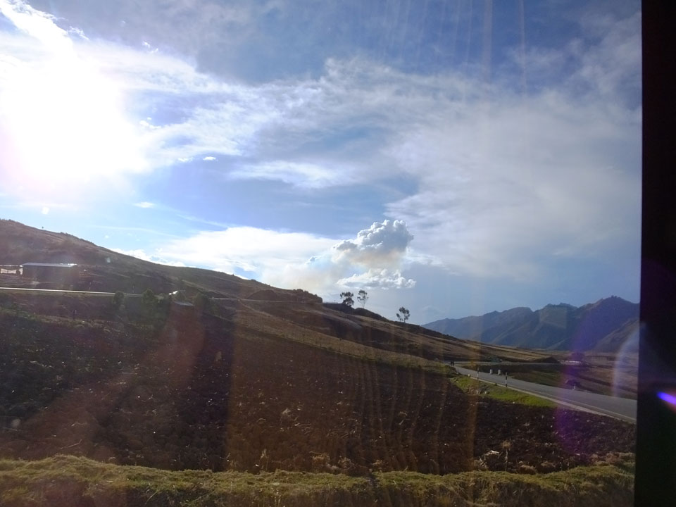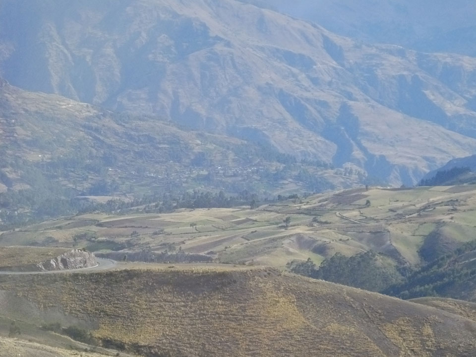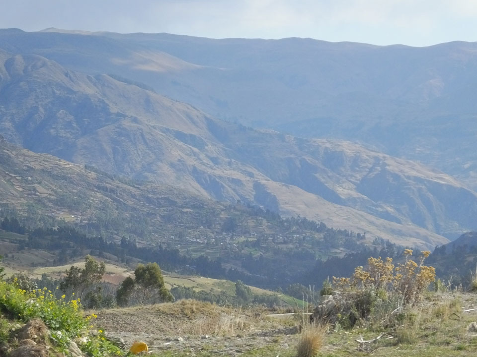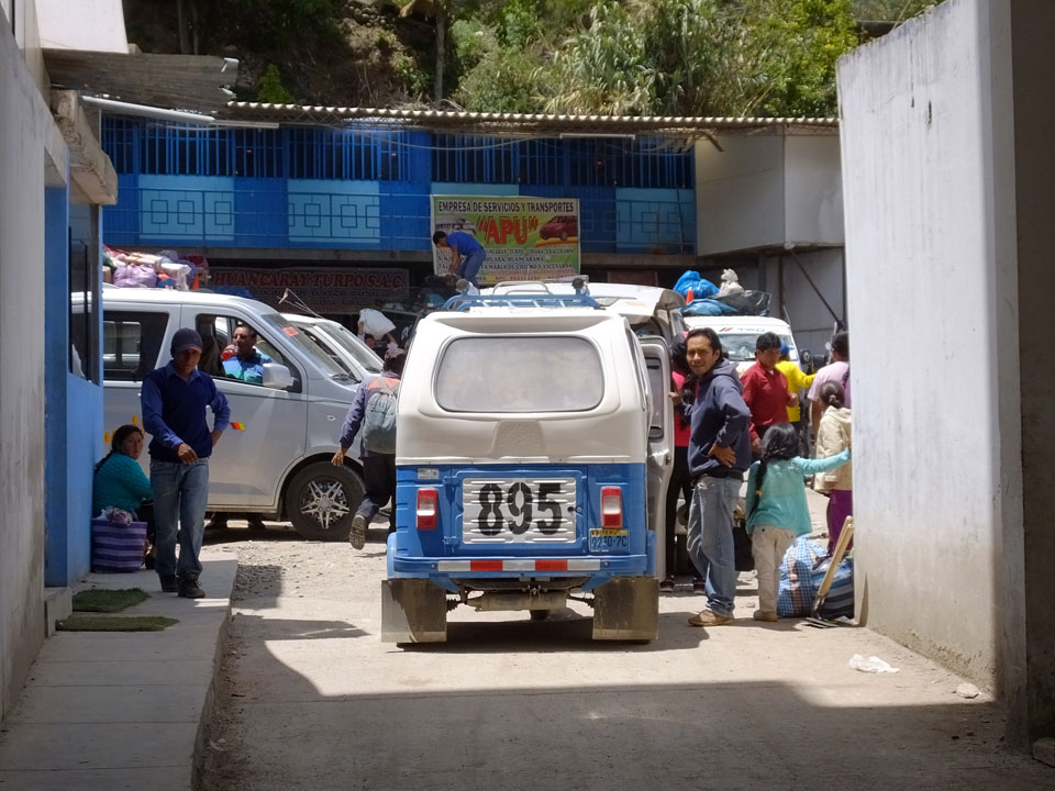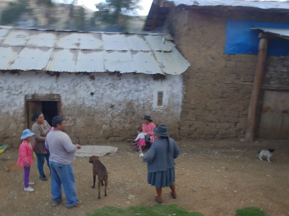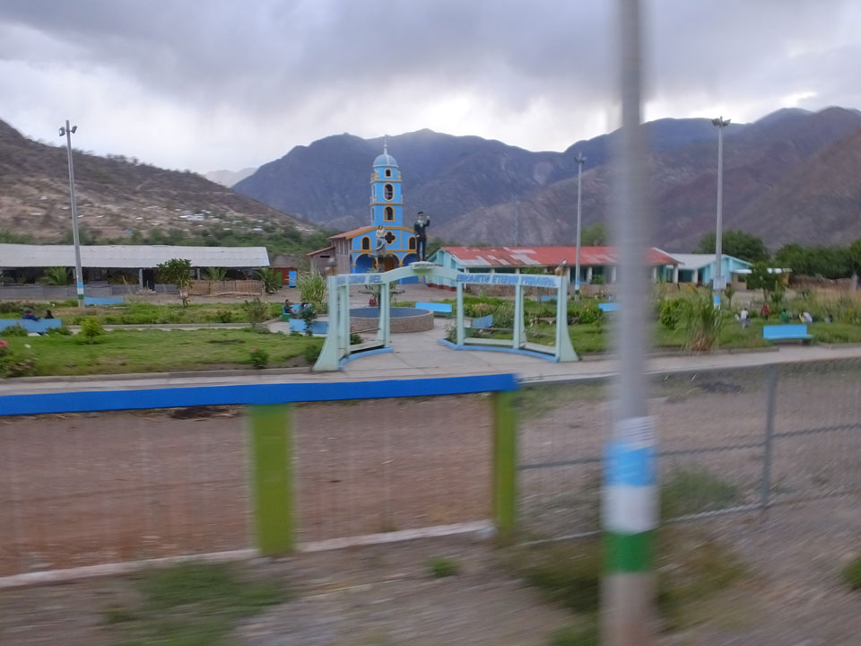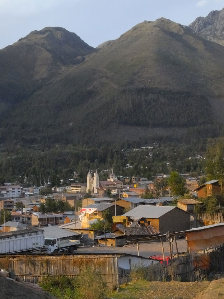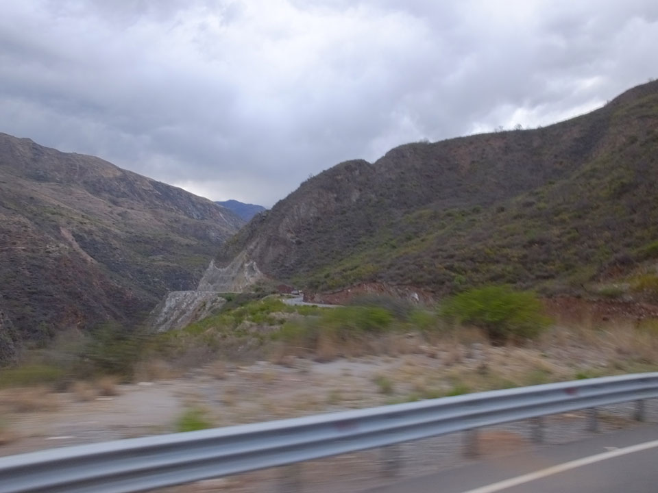 Dann ging’s mit einem taxi (5 Soles) zu Molinas und mit dem Bus durch die endlosen Berge Richtung Norden. Ein paar Halte gab’s auch, sodass sich der Bus füllte. Die Landschaft Perus ist wunderschön, die Orte sind es nicht. Überall sind die Häuser entweder stümperhaft angestrichen, mit Presidenten-Wahlaufforderungen oder Werbung. Allerhand Tiere laufen auch herum und die Leute sind eben vom Dorf.