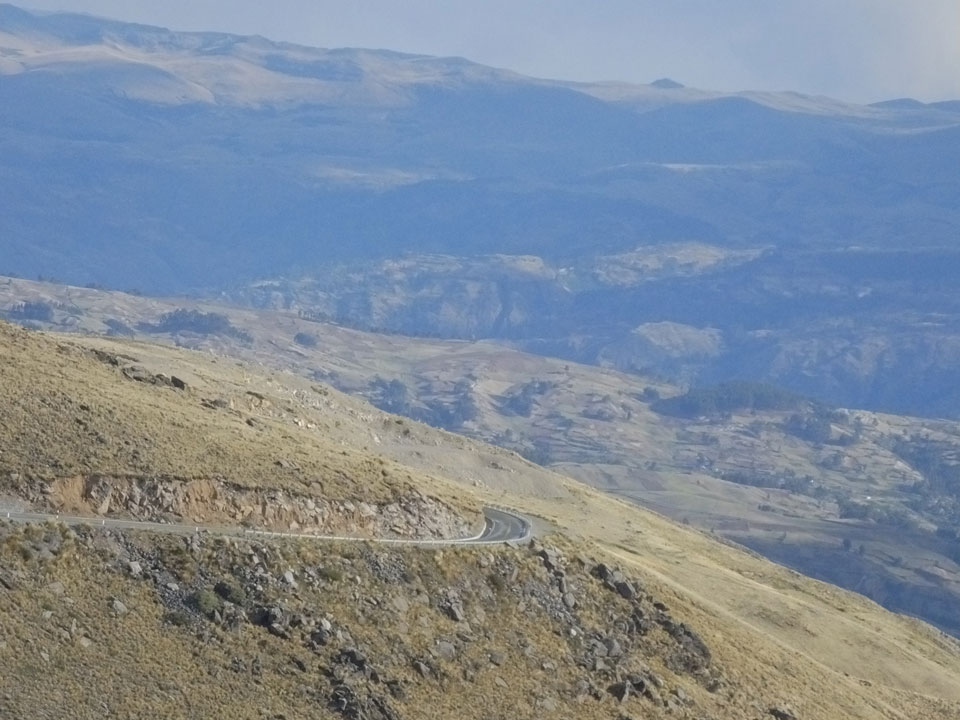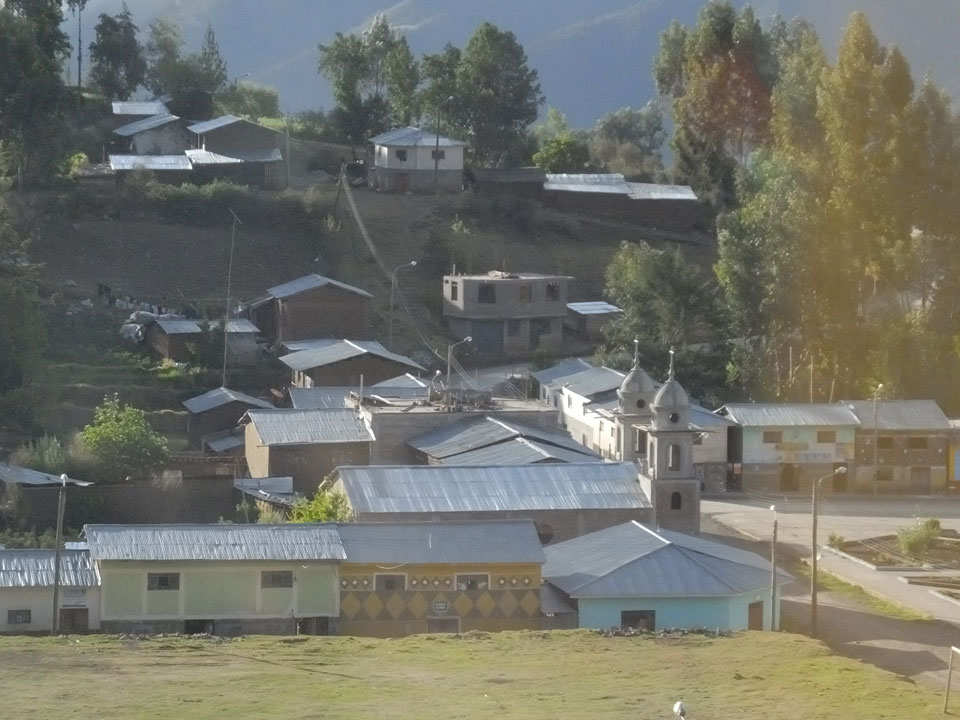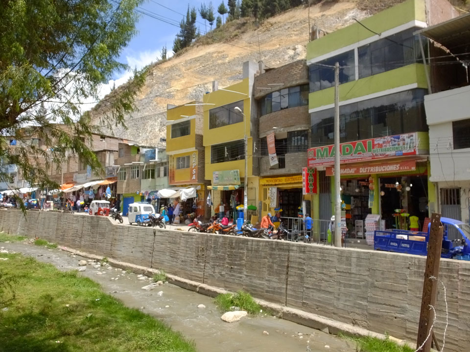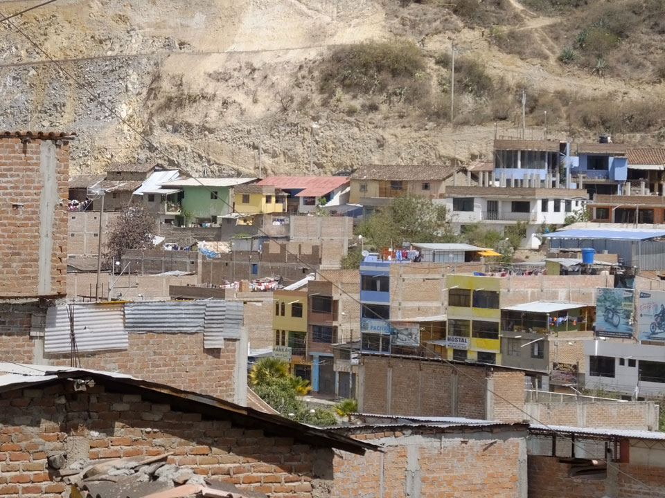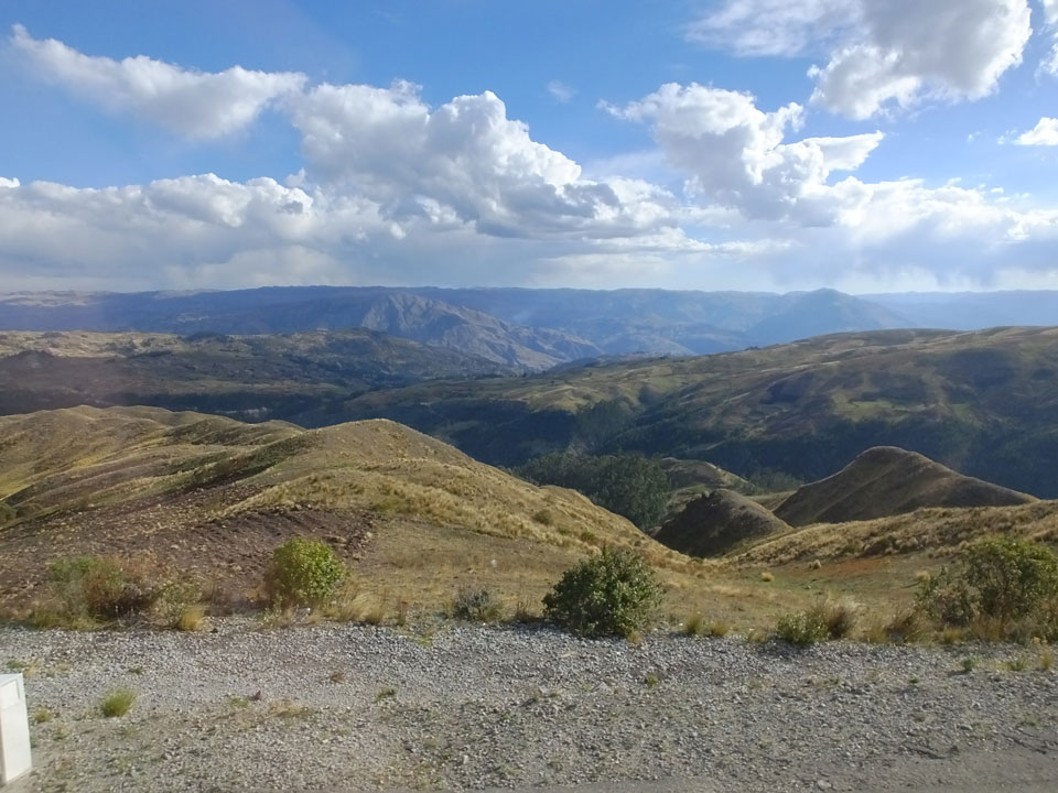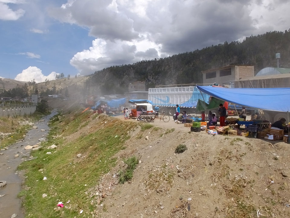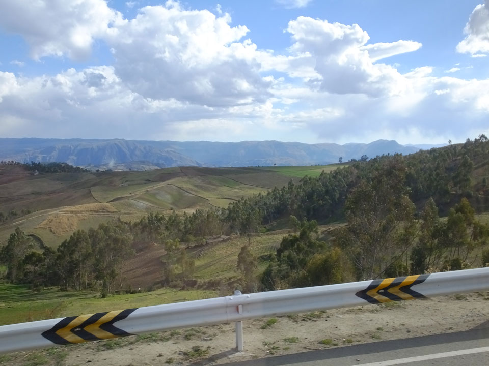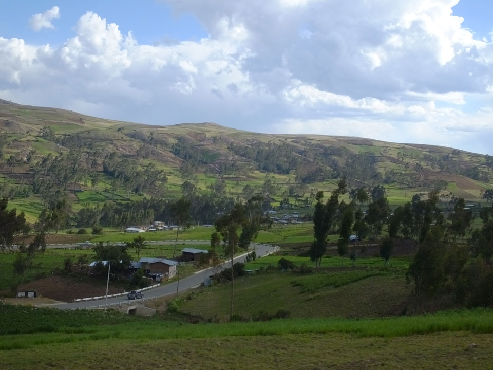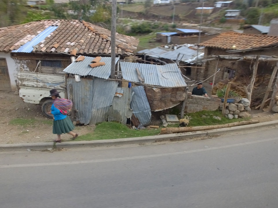 Dann ging’s mit einem taxi (5 Soles) zu Molinas und mit dem Bus durch die endlosen Berge Richtung Norden. Ein paar Halte gab’s auch, sodass sich der Bus füllte. Die Landschaft Perus ist wunderschön, die Orte sind es nicht. Überall sind die Häuser entweder stümperhaft angestrichen, mit Presidenten-Wahlaufforderungen oder Werbung. Allerhand Tiere laufen auch herum und die Leute sind eben vom Dorf.