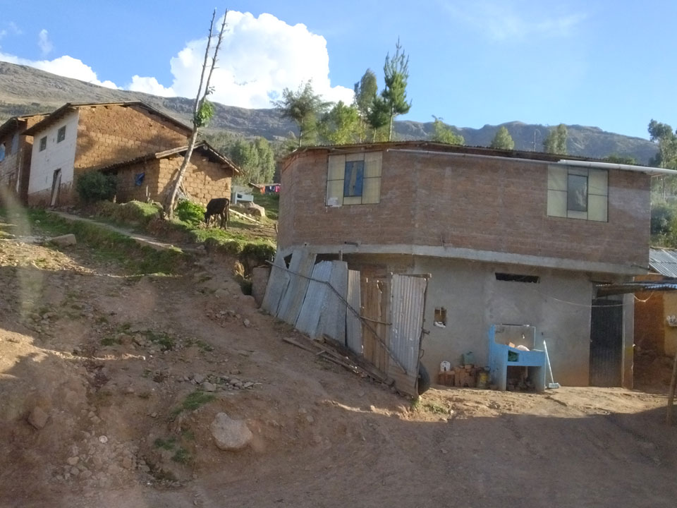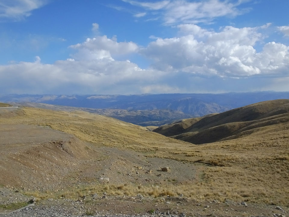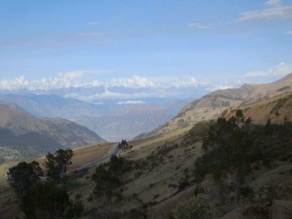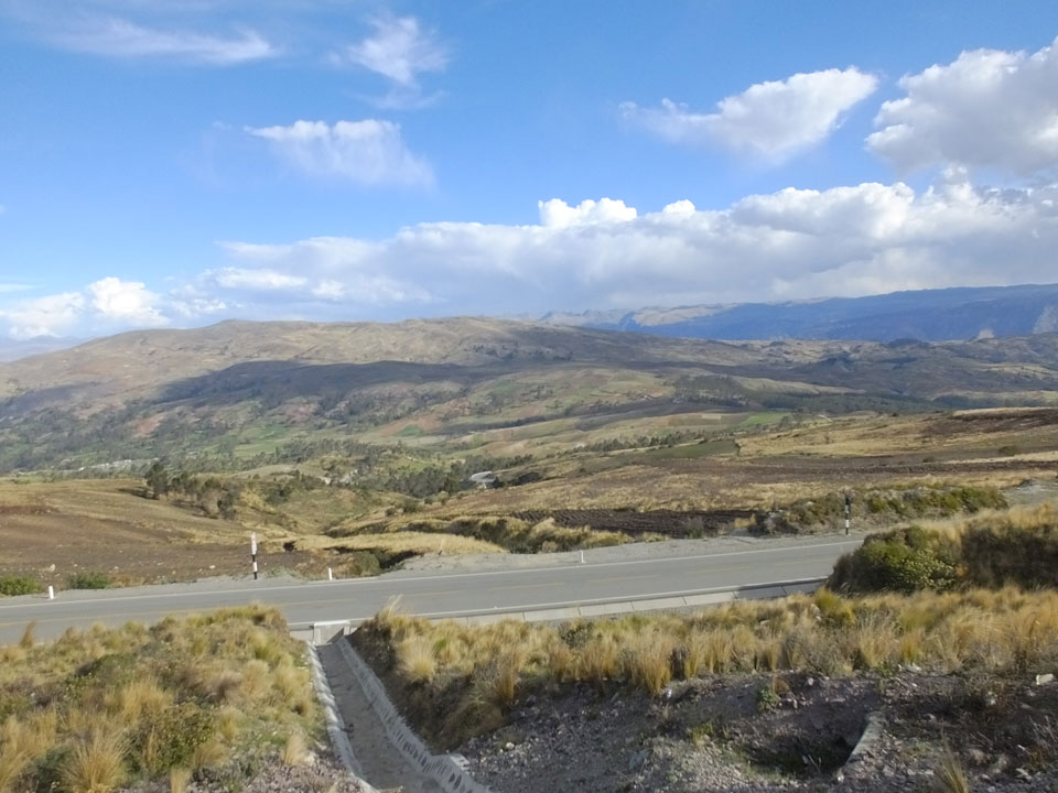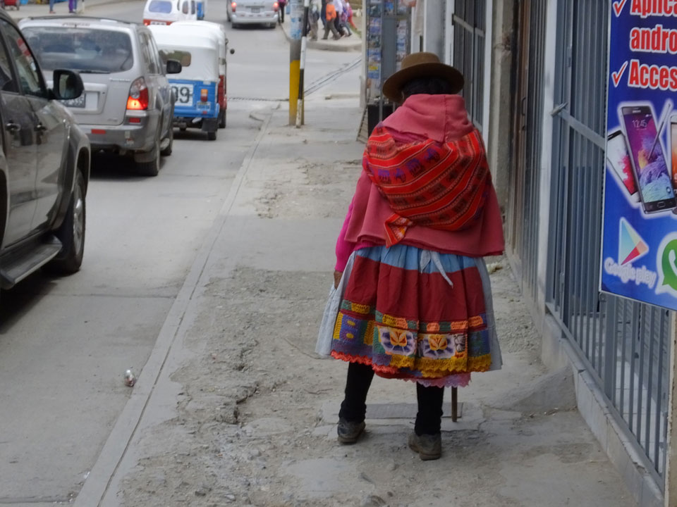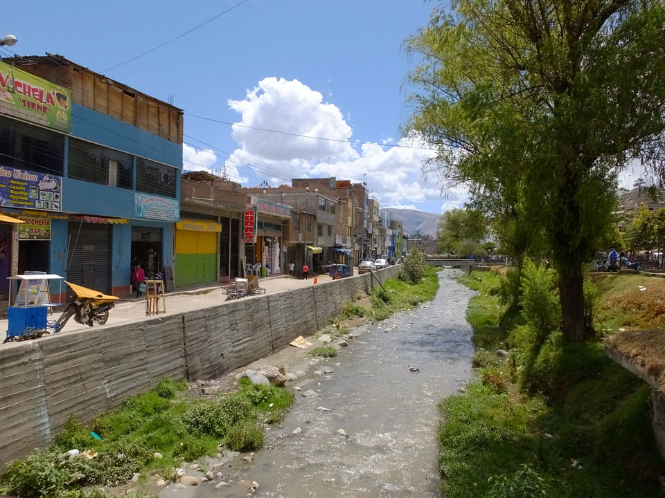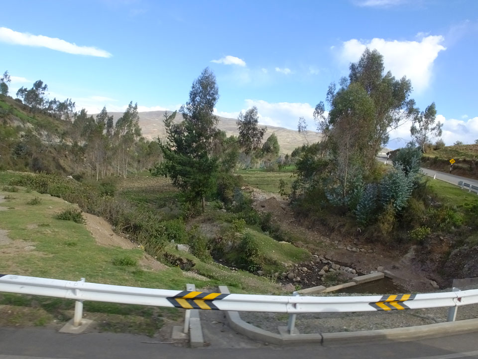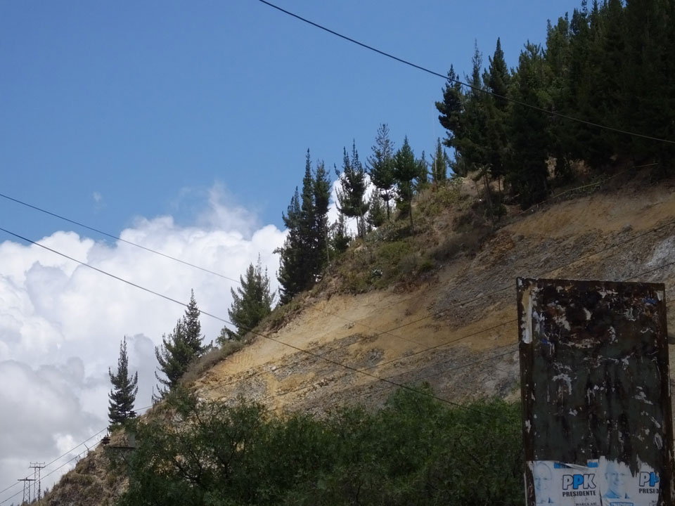 Dann ging’s mit einem taxi (5 Soles) zu Molinas und mit dem Bus durch die endlosen Berge Richtung Norden. Ein paar Halte gab’s auch, sodass sich der Bus füllte. Die Landschaft Perus ist wunderschön, die Orte sind es nicht. Überall sind die Häuser entweder stümperhaft angestrichen, mit Presidenten-Wahlaufforderungen oder Werbung. Allerhand Tiere laufen auch herum und die Leute sind eben vom Dorf.