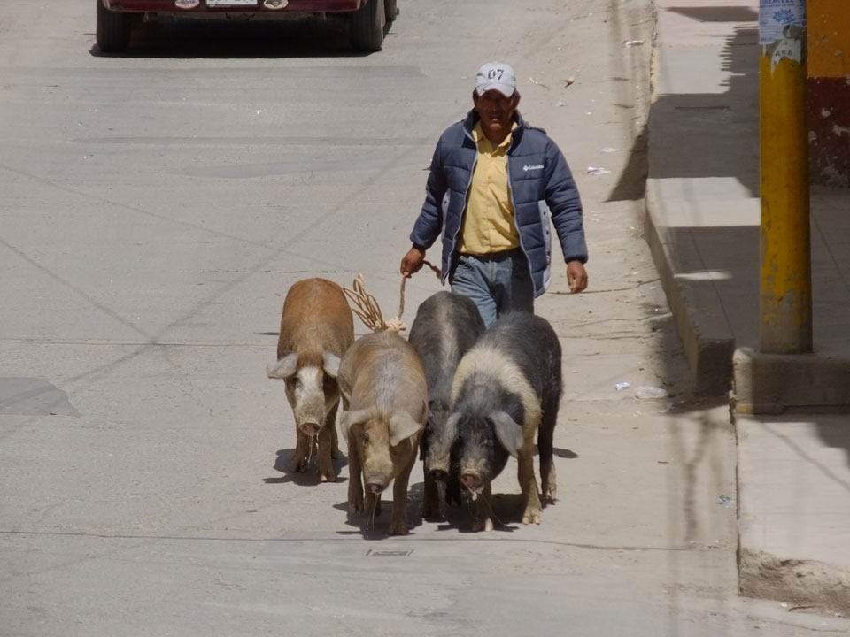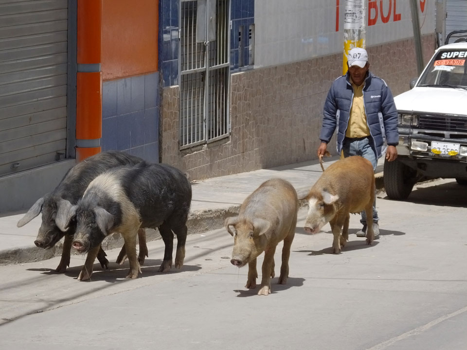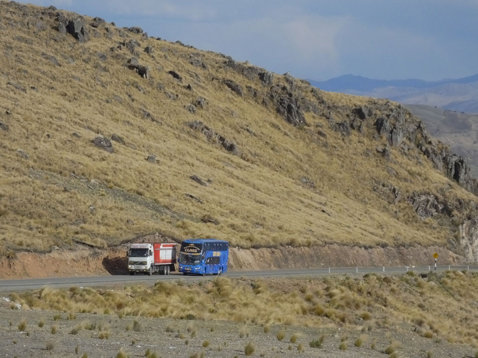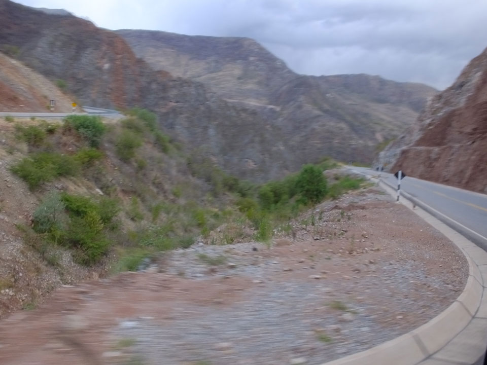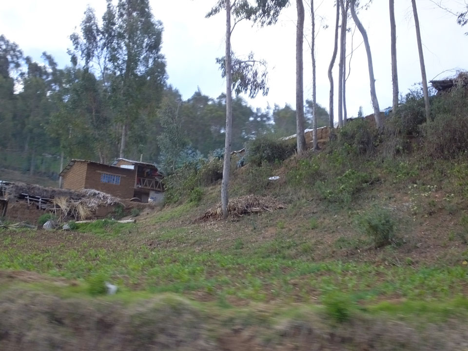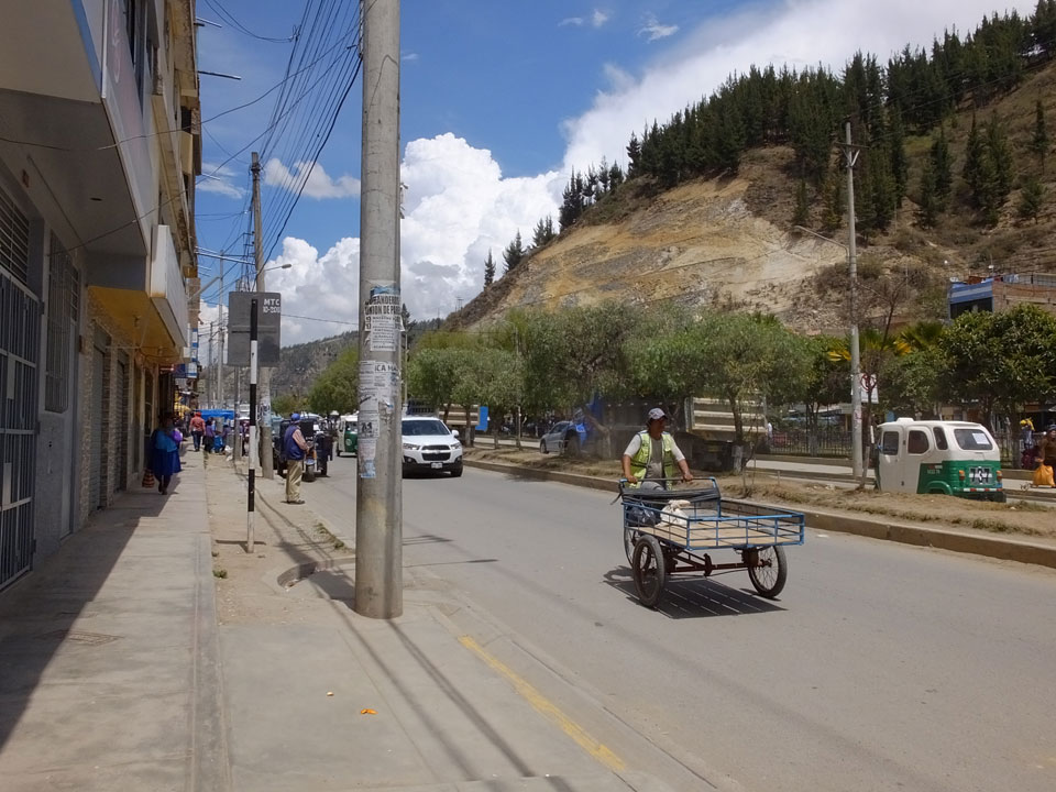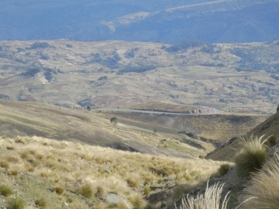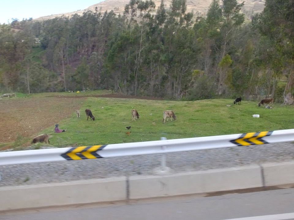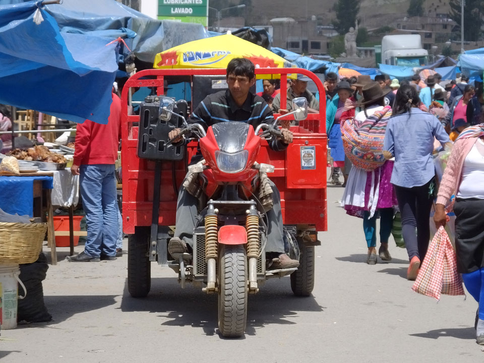 Dann ging’s mit einem taxi (5 Soles) zu Molinas und mit dem Bus durch die endlosen Berge Richtung Norden. Ein paar Halte gab’s auch, sodass sich der Bus füllte. Die Landschaft Perus ist wunderschön, die Orte sind es nicht. Überall sind die Häuser entweder stümperhaft angestrichen, mit Presidenten-Wahlaufforderungen oder Werbung. Allerhand Tiere laufen auch herum und die Leute sind eben vom Dorf.