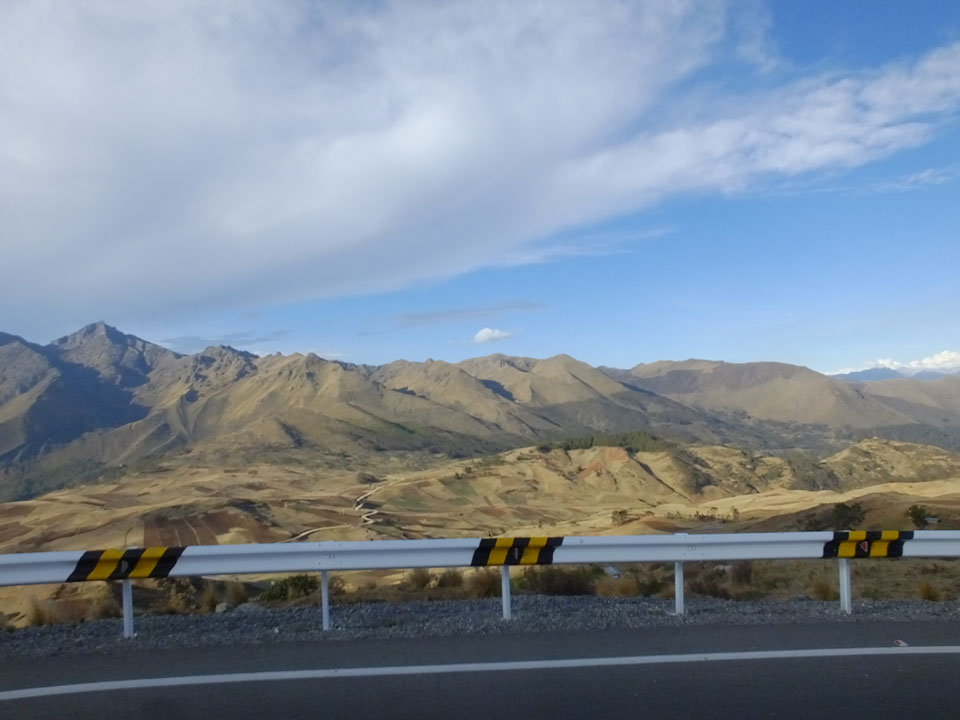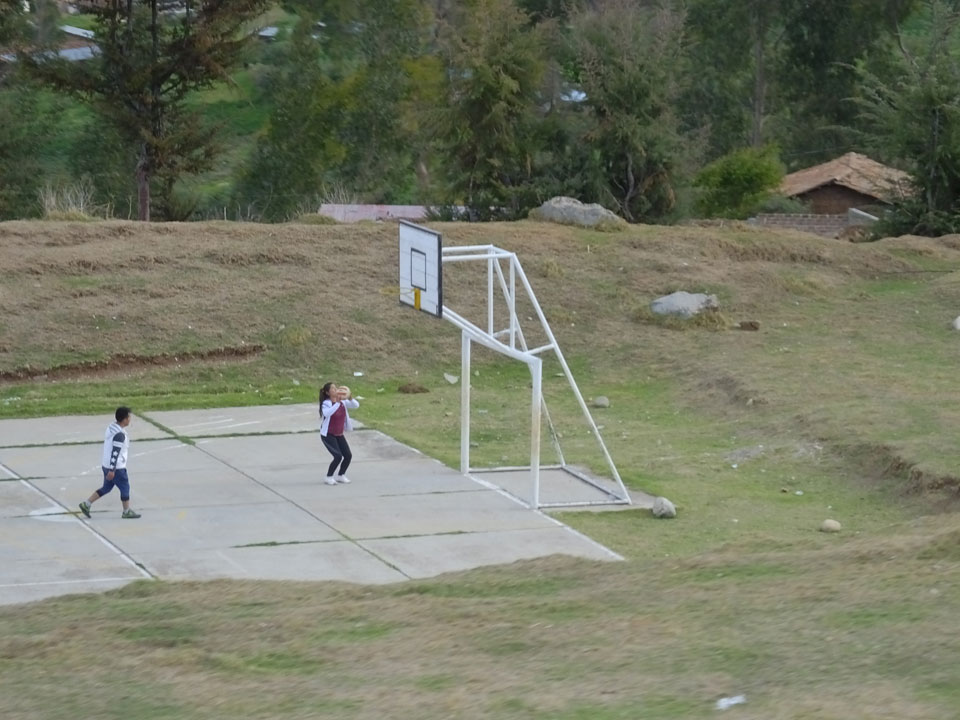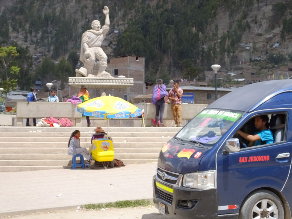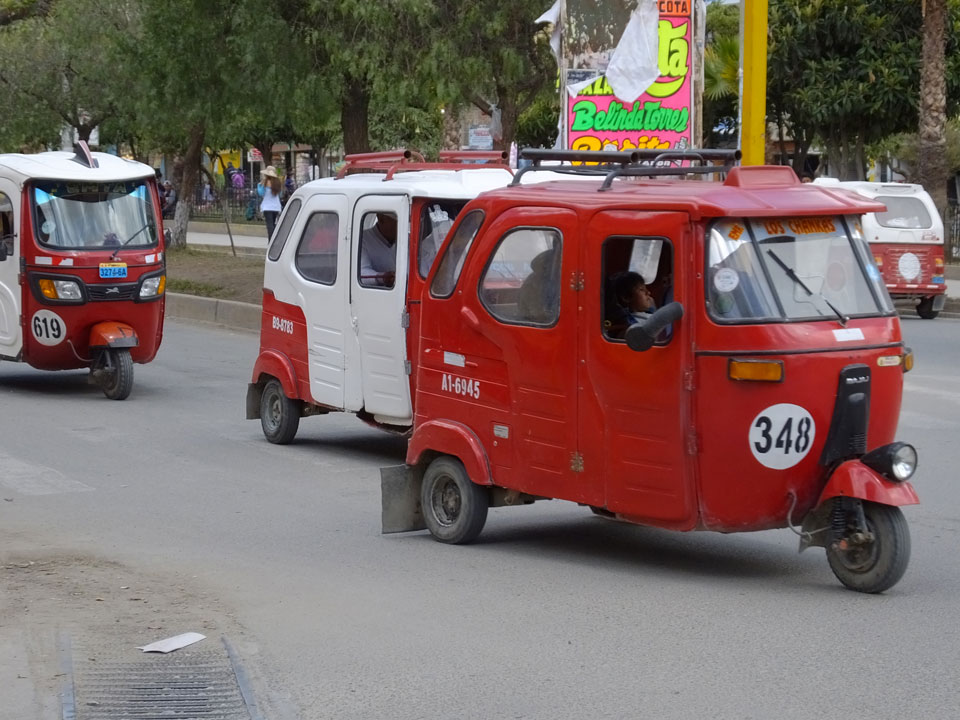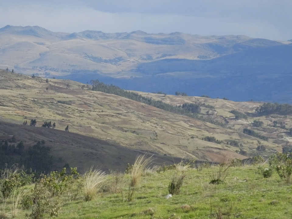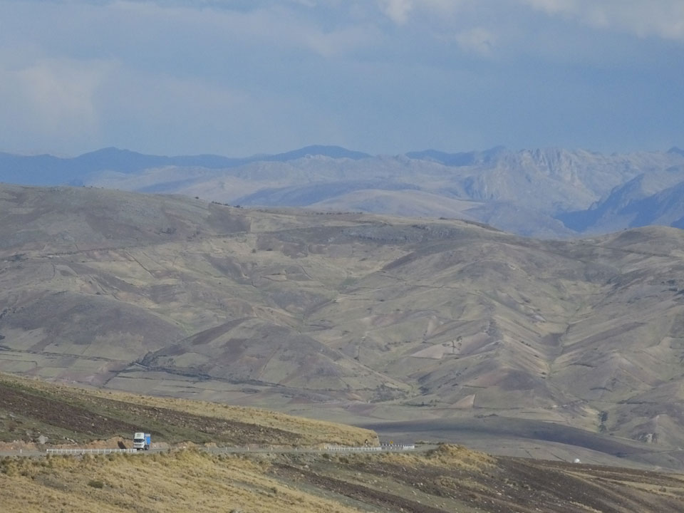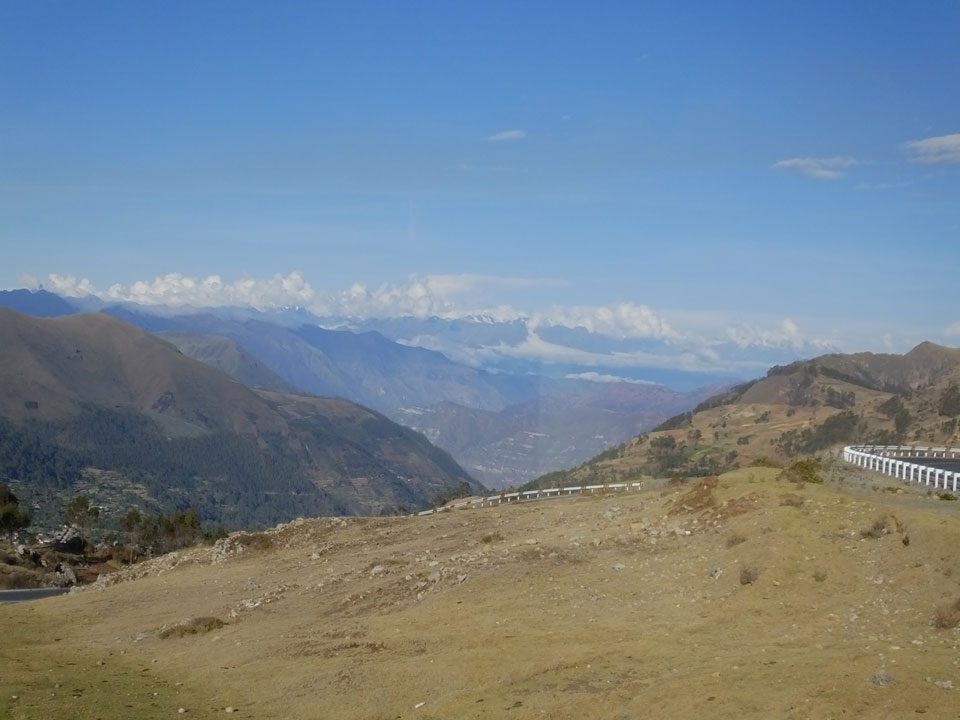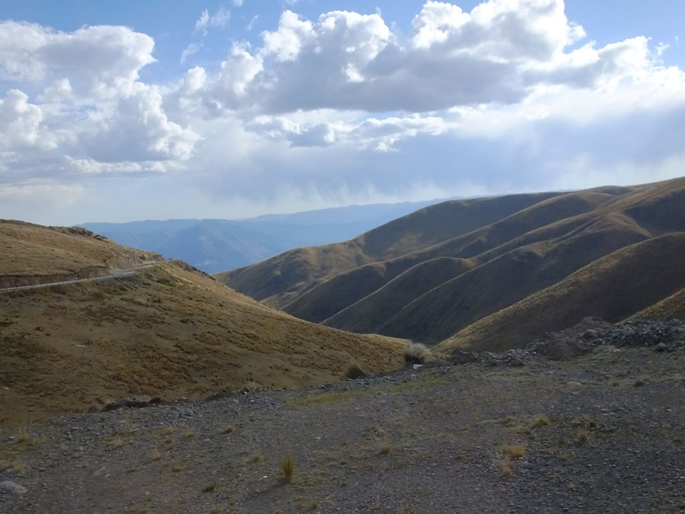 Dann ging’s mit einem taxi (5 Soles) zu Molinas und mit dem Bus durch die endlosen Berge Richtung Norden. Ein paar Halte gab’s auch, sodass sich der Bus füllte. Die Landschaft Perus ist wunderschön, die Orte sind es nicht. Überall sind die Häuser entweder stümperhaft angestrichen, mit Presidenten-Wahlaufforderungen oder Werbung. Allerhand Tiere laufen auch herum und die Leute sind eben vom Dorf.