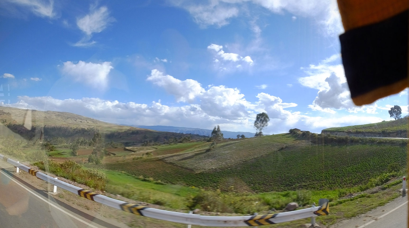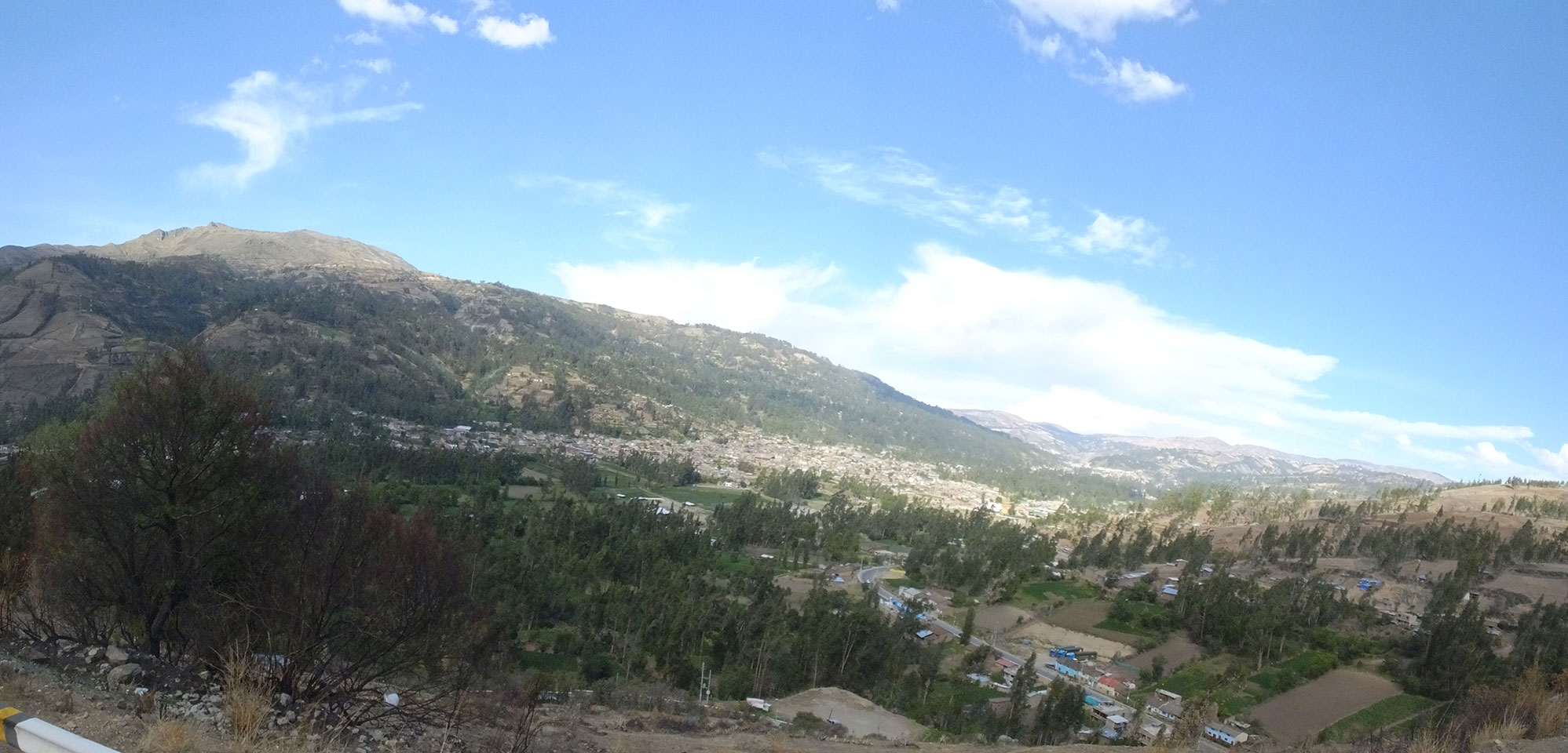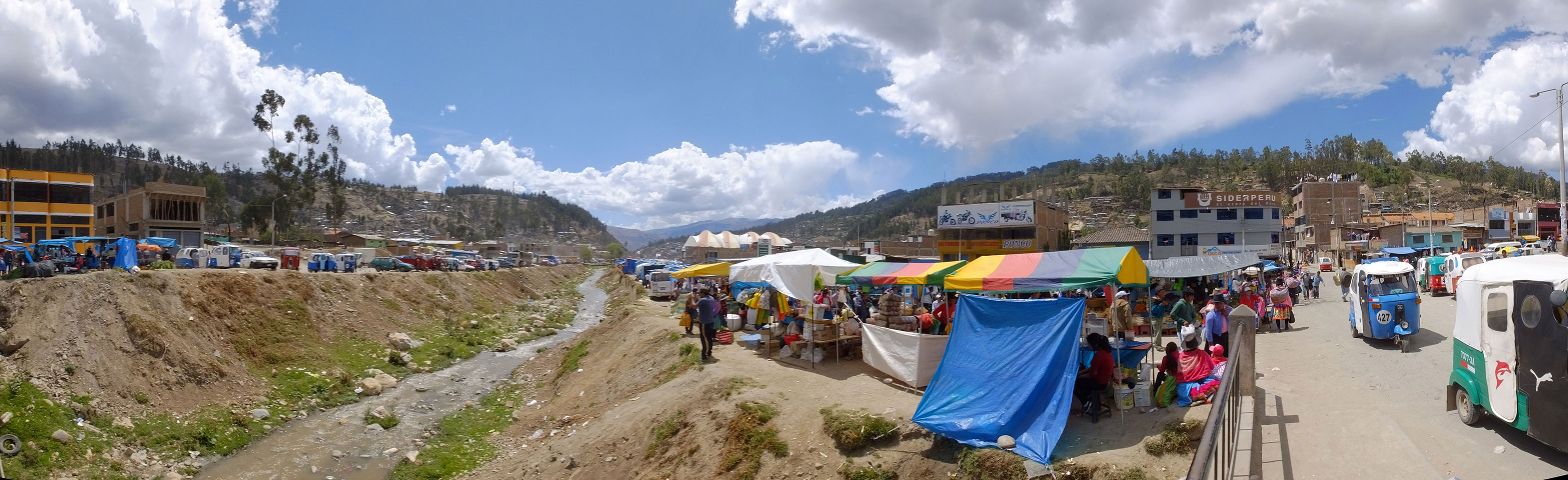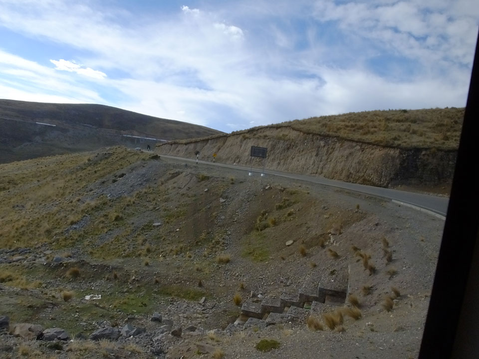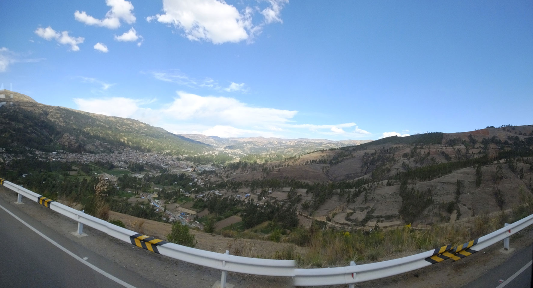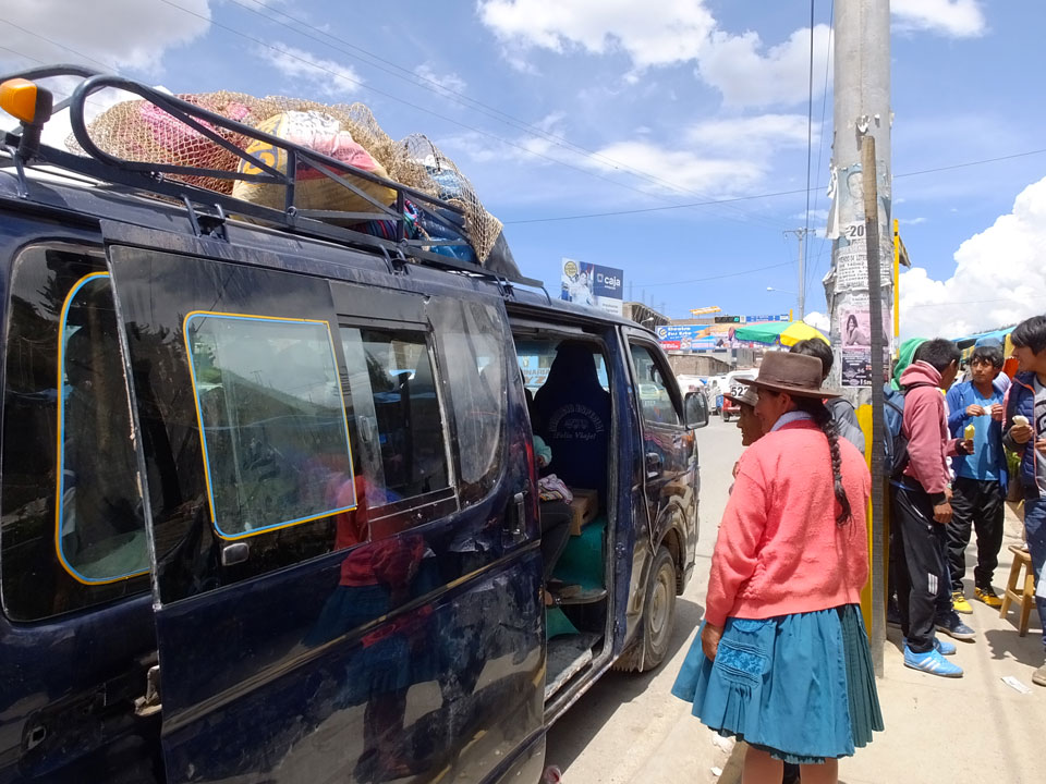 Dann ging’s mit einem taxi (5 Soles) zu Molinas und mit dem Bus durch die endlosen Berge Richtung Norden. Ein paar Halte gab’s auch, sodass sich der Bus füllte. Die Landschaft Perus ist wunderschön, die Orte sind es nicht. Überall sind die Häuser entweder stümperhaft angestrichen, mit Presidenten-Wahlaufforderungen oder Werbung. Allerhand Tiere laufen auch herum und die Leute sind eben vom Dorf.