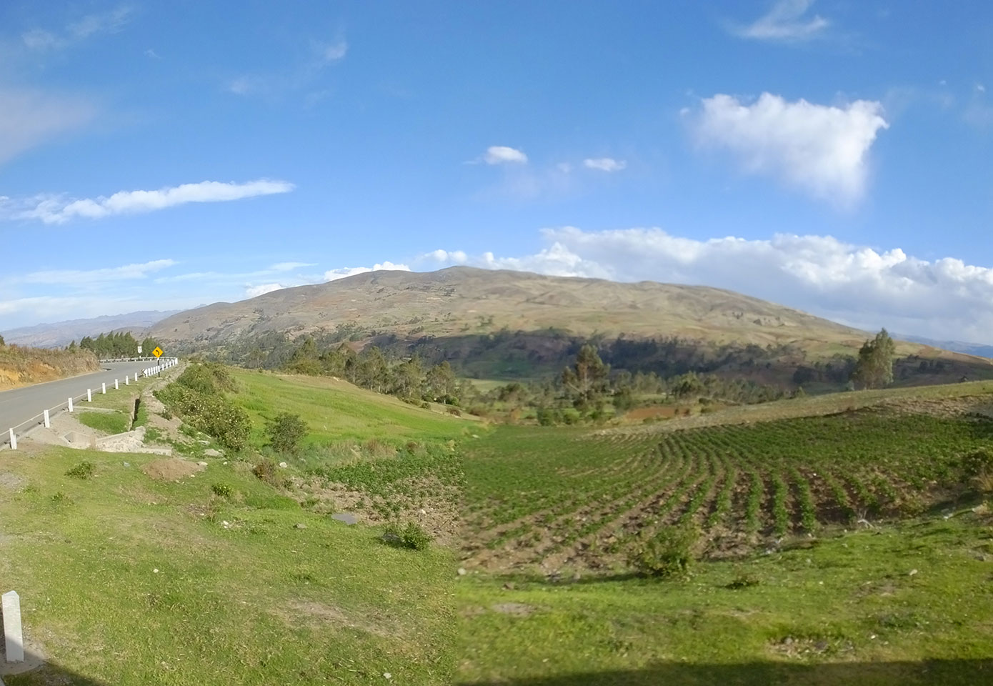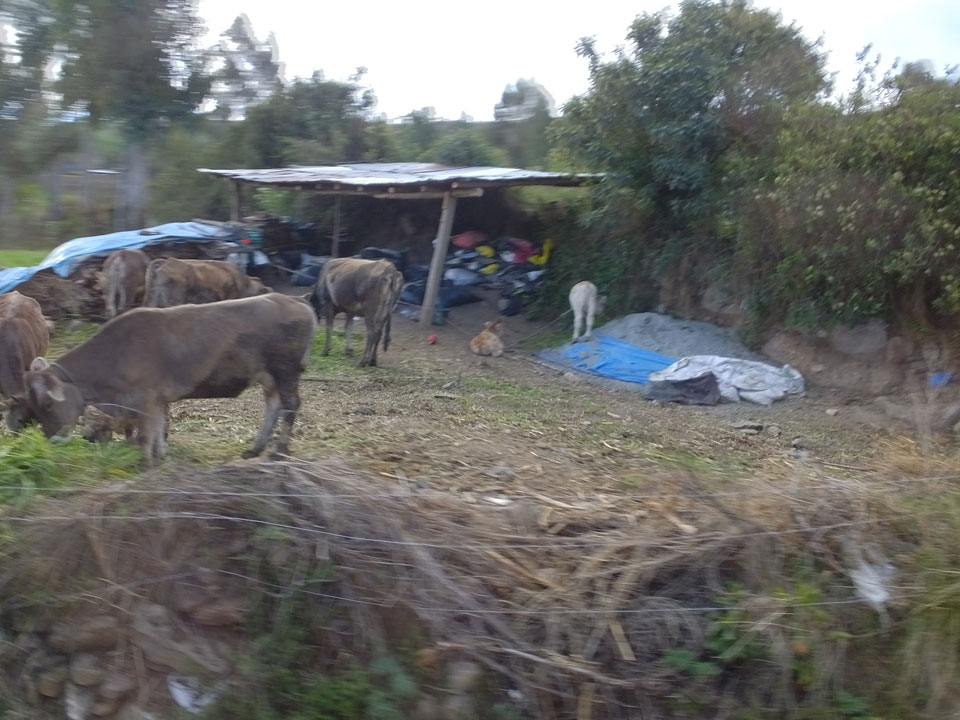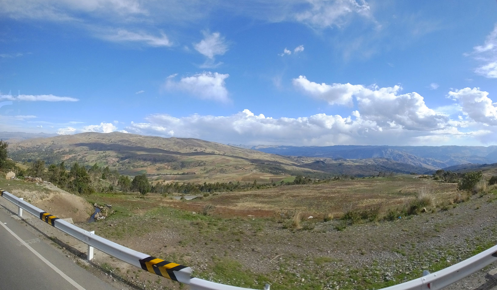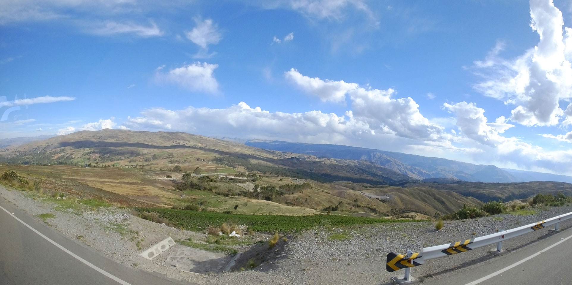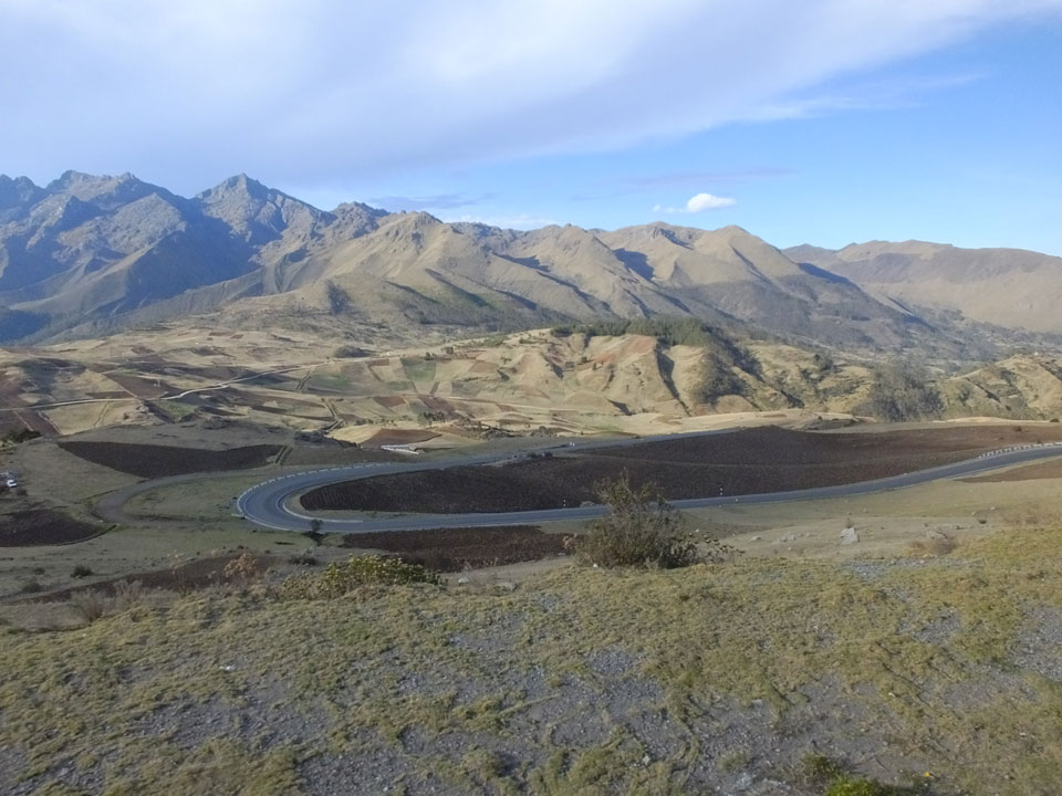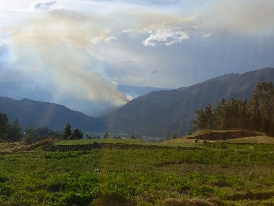 Dann ging’s mit einem taxi (5 Soles) zu Molinas und mit dem Bus durch die endlosen Berge Richtung Norden. Ein paar Halte gab’s auch, sodass sich der Bus füllte. Die Landschaft Perus ist wunderschön, die Orte sind es nicht. Überall sind die Häuser entweder stümperhaft angestrichen, mit Presidenten-Wahlaufforderungen oder Werbung. Allerhand Tiere laufen auch herum und die Leute sind eben vom Dorf.