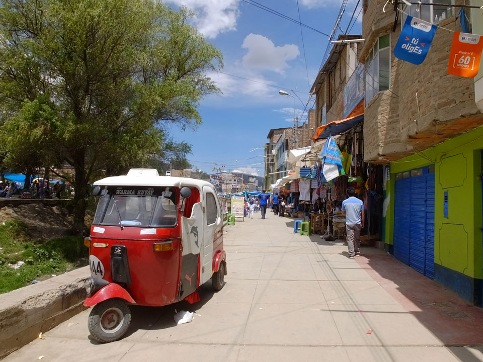 Ich schnappte mir eine Tuktuk und fuhr für gerade mal 1,50 Soles zum Plaza. Der junge Fahrer wollte irgendwas mit „schreiben“. Am Ende dachte ich wohl, dass er meien email haben wollte oder so. Es kommen einfach kaum Touristen in den Ort. Ich verneinte aber, wie auch schon bei anderen Leuten. Mein Spanisch ist so schlecht und irgendwie ist Südamerika sicher bald gegessen – jedenfalls wenn ich jetzt schon hier in der Provinz gelandet bin.