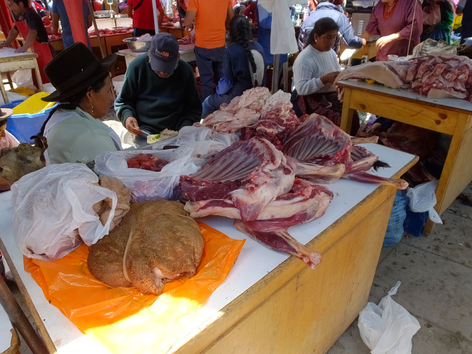 Am Markt schaute ich kurz herum. Stille, und gar kein Wuseln im Vergleich zum Sonntags-Markt unten am Fluss. Ich fand meine Straße und das Hotel, holte mir ein paar Eis und setzte mich in’s Netz, wo ich die Unterkunft für Ayacucho klar machte.