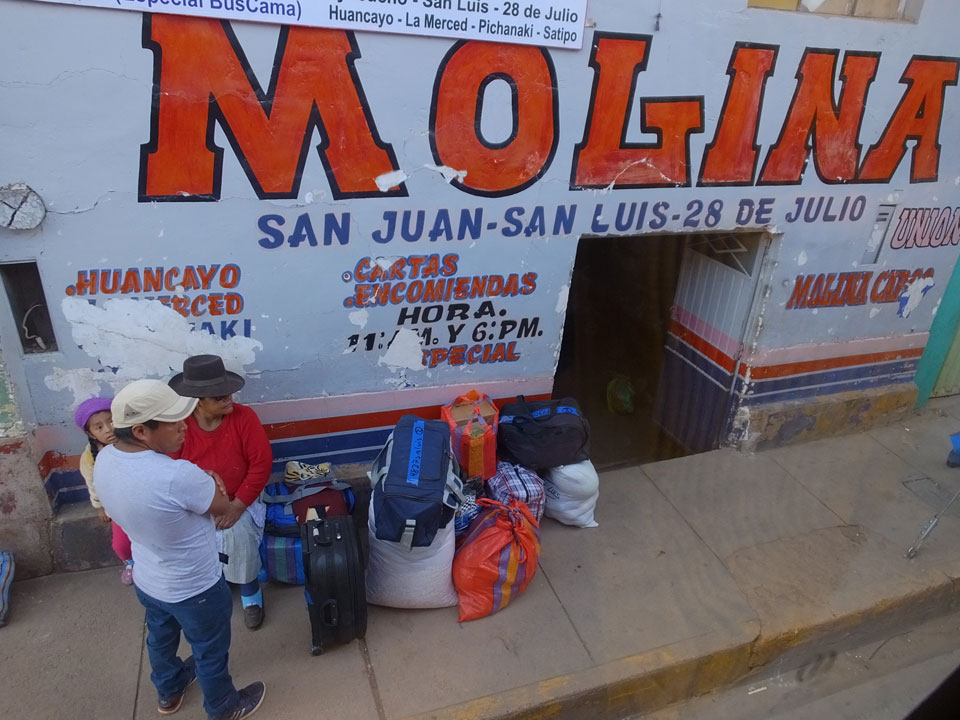 Einfach zu fertig heute, als dass ich es zum Frühstück geschafft hätte. Stattdessen checkte ich normal gegen 12 aus und ließ meine Sachen im Hotel. Erst mal musst eich mich um die Weiterfahrt kümmern. Ich fand die Bus-Firmen. Bei Molina sollte es um 15:00 nach Lima gehen – auch über Ayacucho.