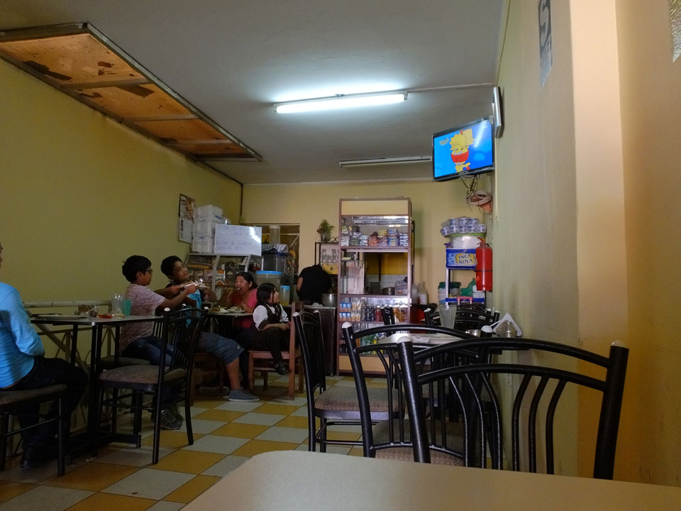 Ich kaufte ein paar Getränke ein, chillte im Zimmre und machte dann Abends nochmal los, in die lokale Disco „Maxx’oh“. Ein Burger vorher (3,50 PEN) und dann drinnen war Halloween. Die Leute waren nicht verkleidet, die Party schient dennoch cool. Hier in Peru ist das wohl auch eher was für Kinder und die Angestellten, die angemalt waren.