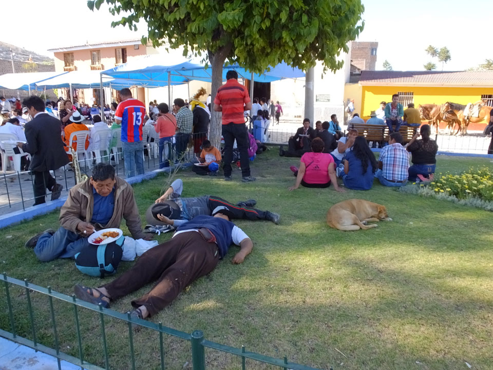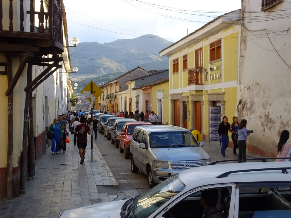 In Abancay waren die Leute aufgeschlossener Ausländern und Touristen gegenüber. Hier schienen sich die Leute mich im besten Fall, zu ignorieren. Etwas komisch schon aber so ist das, wenn man etwas aggressive Blicke bekommt, selbst wenn man komplett passiv herumsteht. Als Ausländer in Deutschland hat man’s ja sicher auch mit kritischen Blicken zu tun. Ich hatte nur ein Bier und recht schnell genug. Die Leute hier sehen etwas indigener aus, als in Lima. Abancay und Andahuaylas waren da gemischter. Irgendwas redete der MC auch was von Pizzaro, der ja das Kasten-System in Peru einführte. Naja, die machen sich wohl da hier mehr Gedanken. Ansonsten ist die Stadt schon schön.