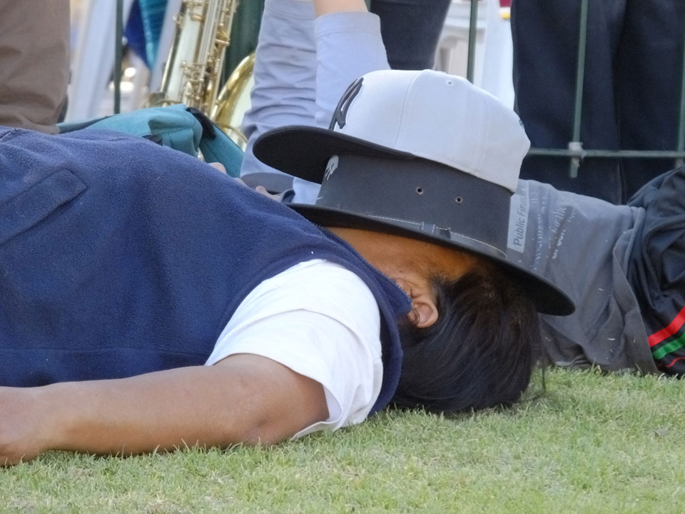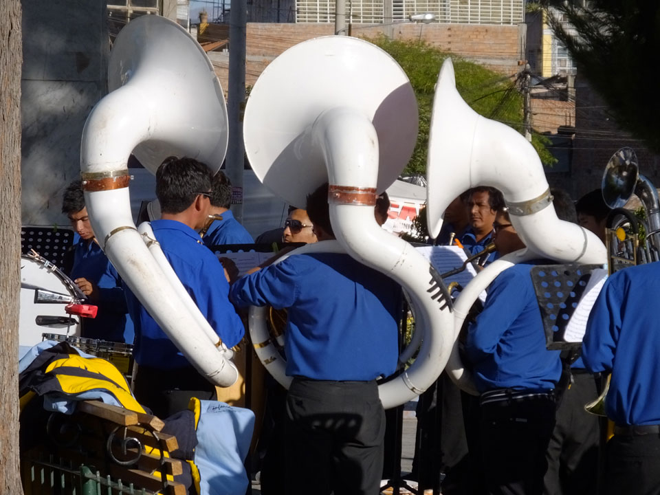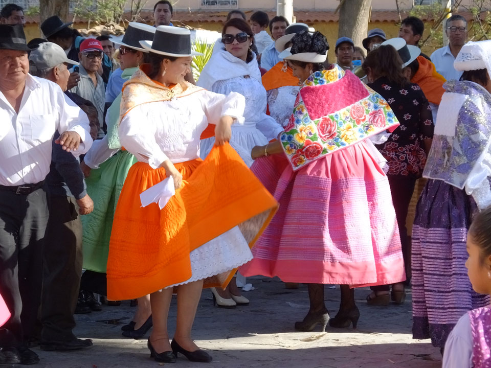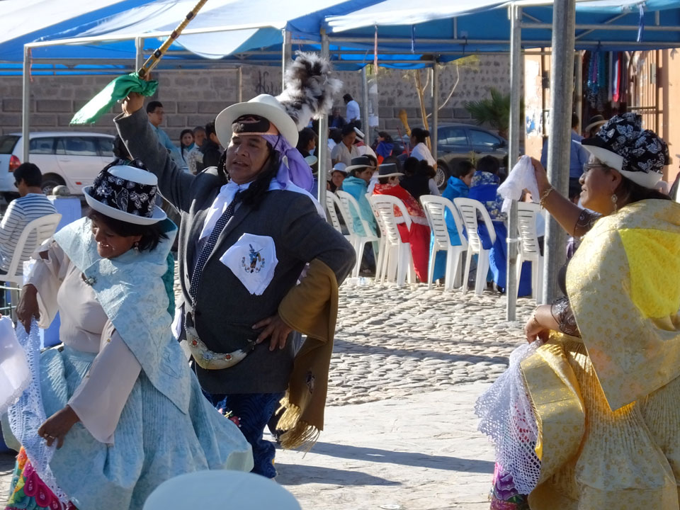 Ich spazierte nachmittags durch die Straßen. An einer Kirche sah ich Leute in Trachten ausruhen. Ein paar Pferde standen auch herum. Nach einer Weile begann schließlich Musik und Tanz. Nett anzuschauen, wie mit Bier und bunten Kleidern gefeiert wurde. Herum-Jauchzen, Blasmusik – mal was kulturelles hier, das nicht extra für Touristen veranstaltet wird.