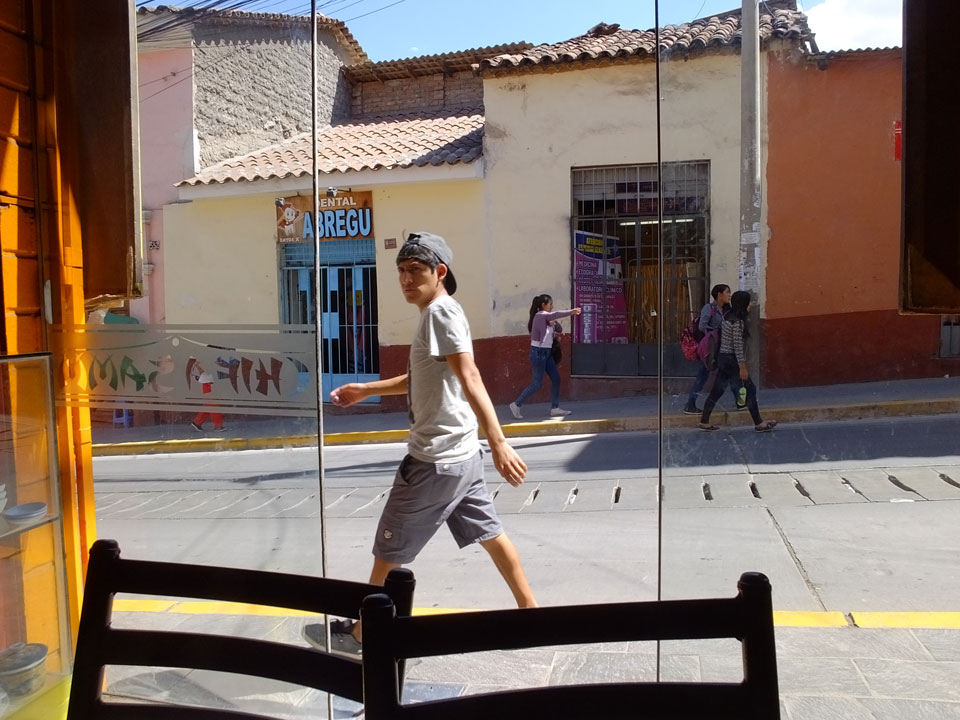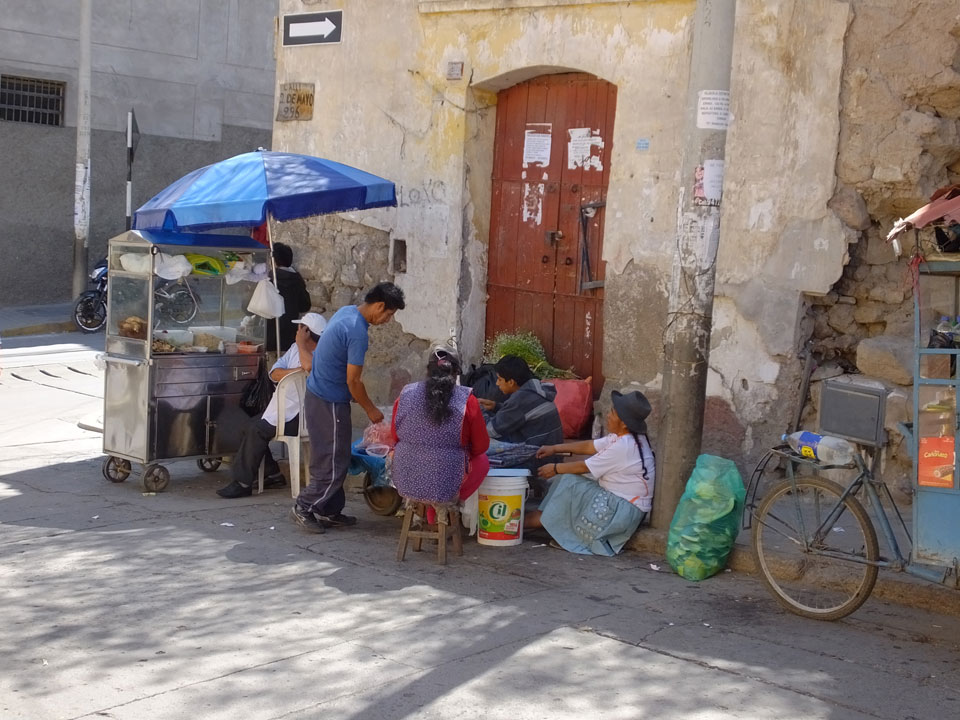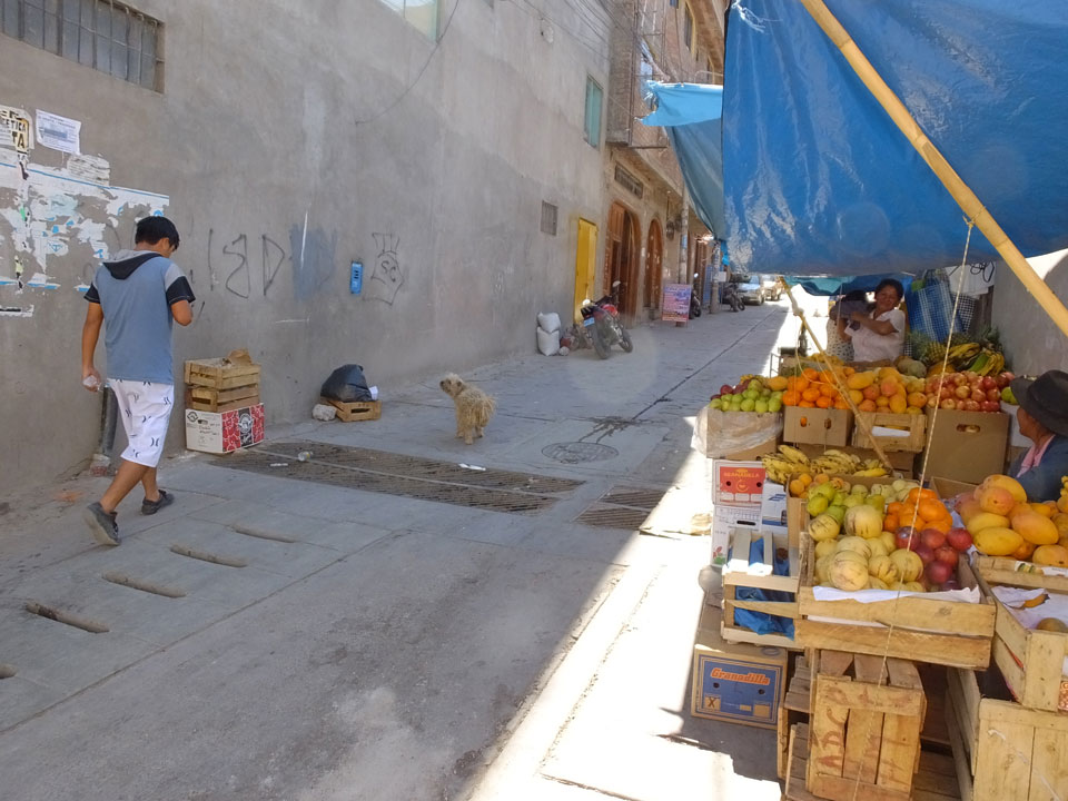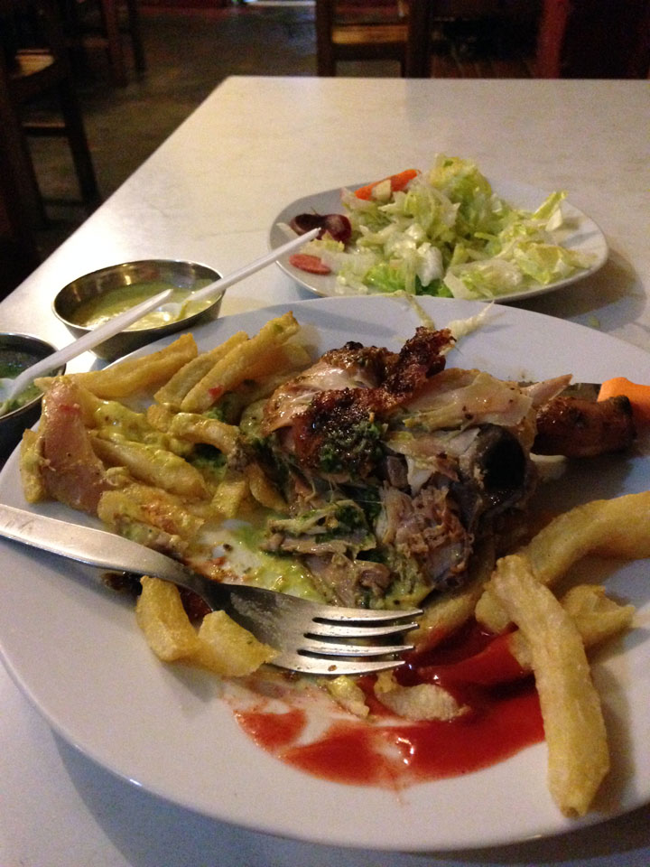 Ich ging gegenüber erst mal was essen. Wieder mal Broiler – 1/4 Huhn für 16 Soles. Mein Guthaben konnte ich nirgendwo aufladen. Da erinnerte ich mich an Google Hangoouts und mein Guthaben da. Es klapte über 3G – ich rief für 9 ct/min wieder an und er sagte mir, wo die Wäsche sei – in der Nähe der Disco Goa.