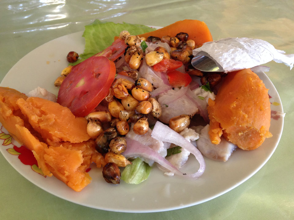 Komplett voll und damit eng ging’s los gen Süden. Gleich außerhalb Mancoras wurde ein Mittagsstopp eingelegt. Ich hatte somit doch noch ein Ceviche, aber was für eines.